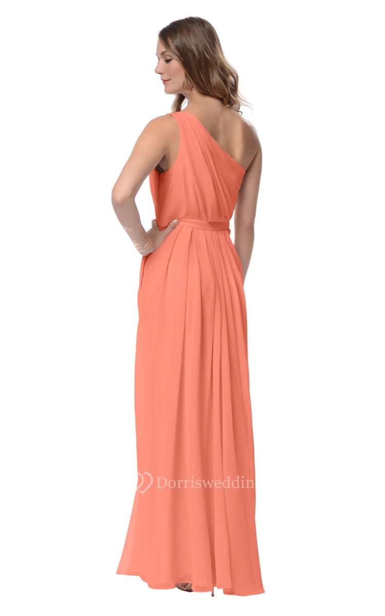 Chiffon Long A-Line Glamorous One-Shoulder Dress