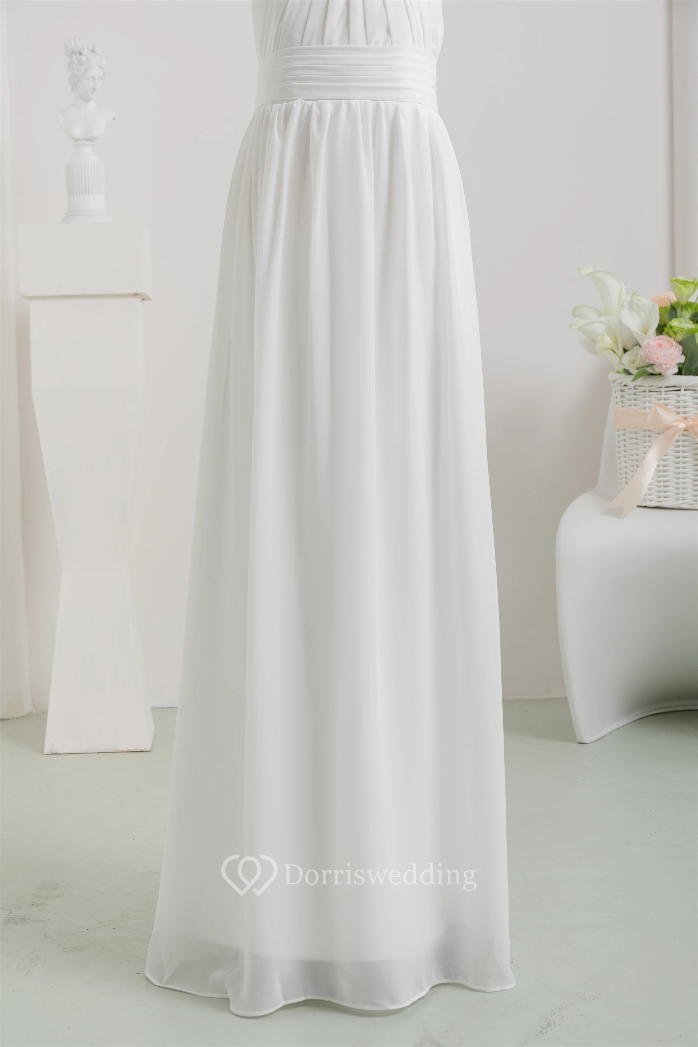• Hemline/Train: Floor-length