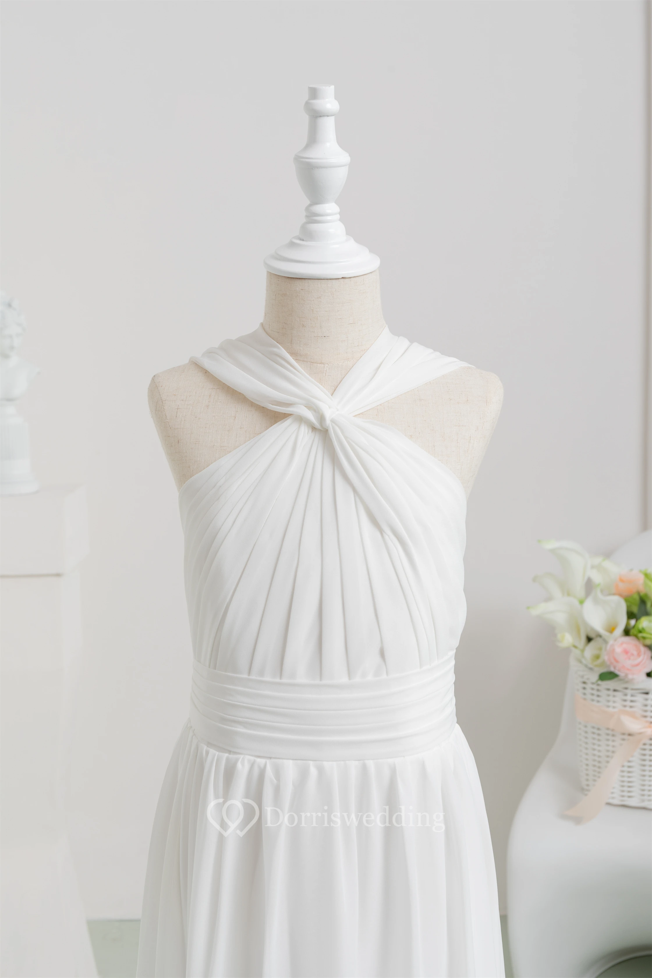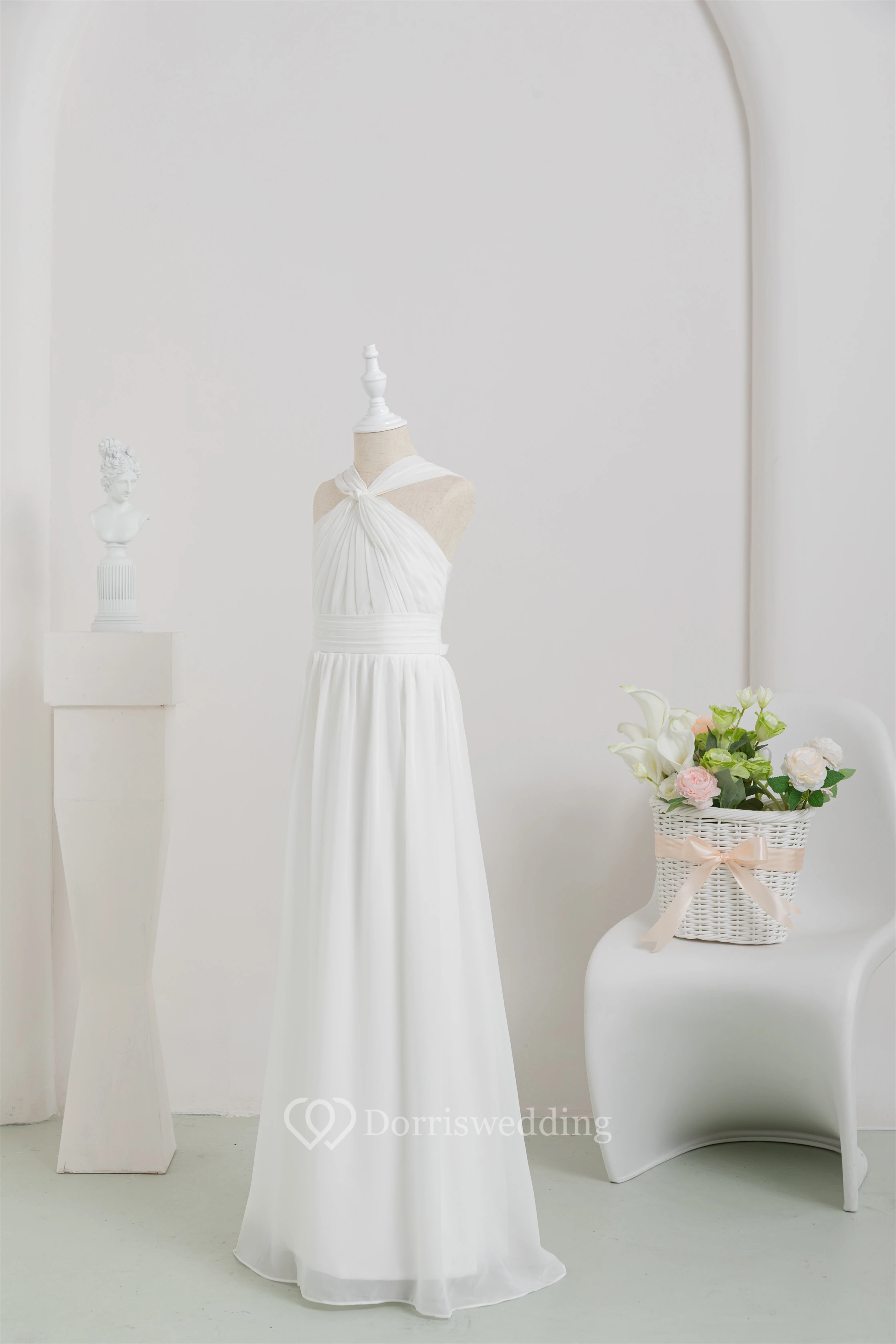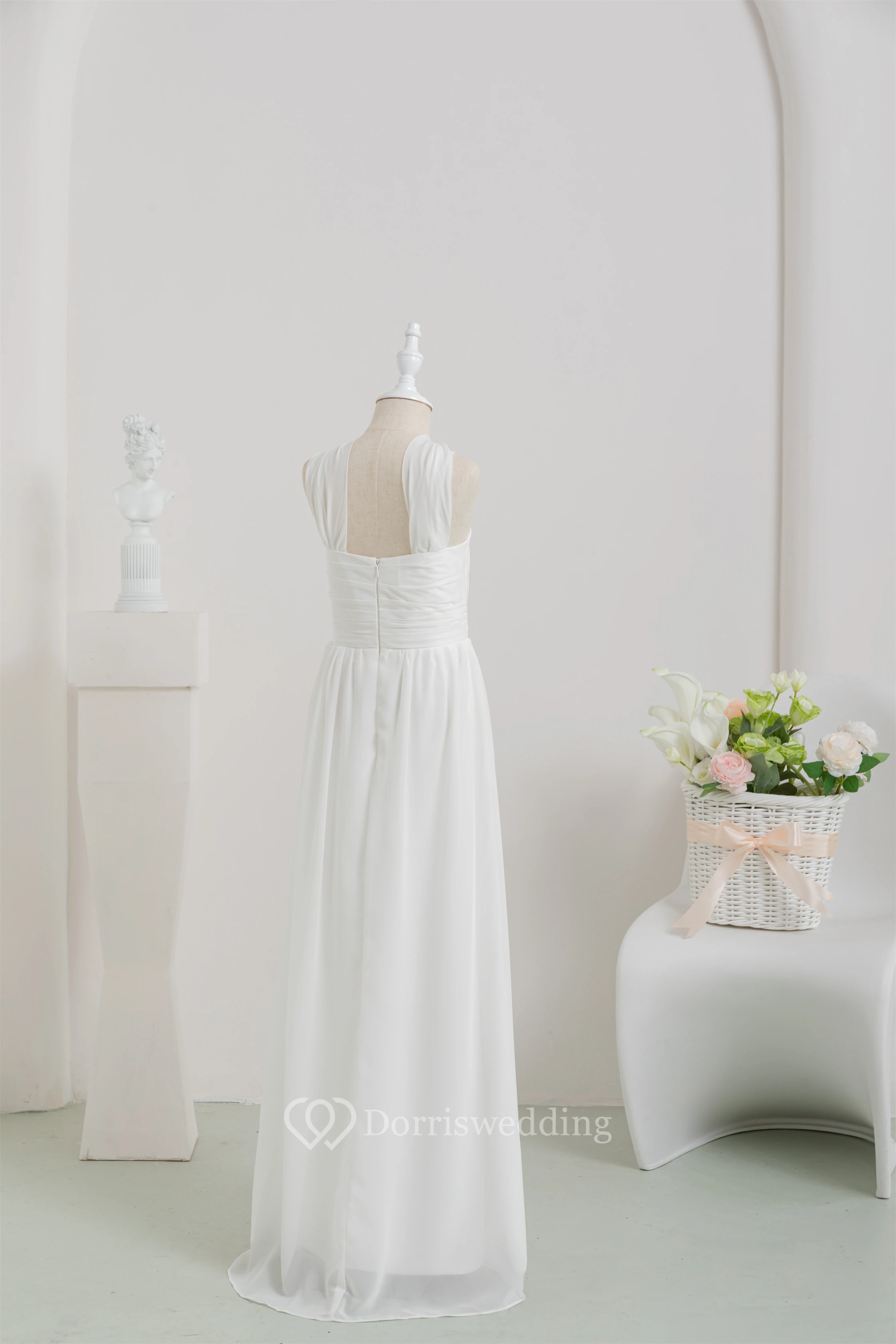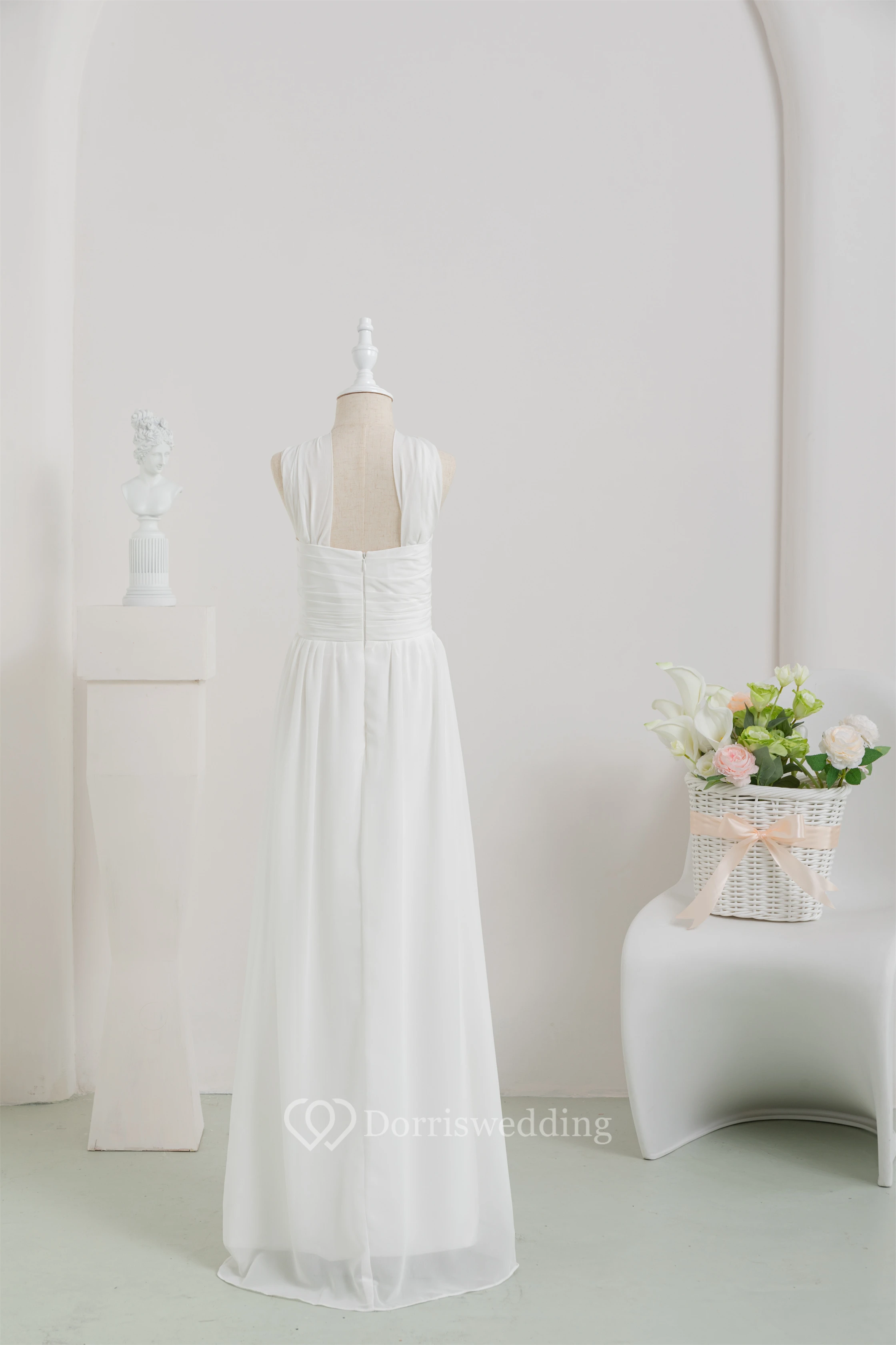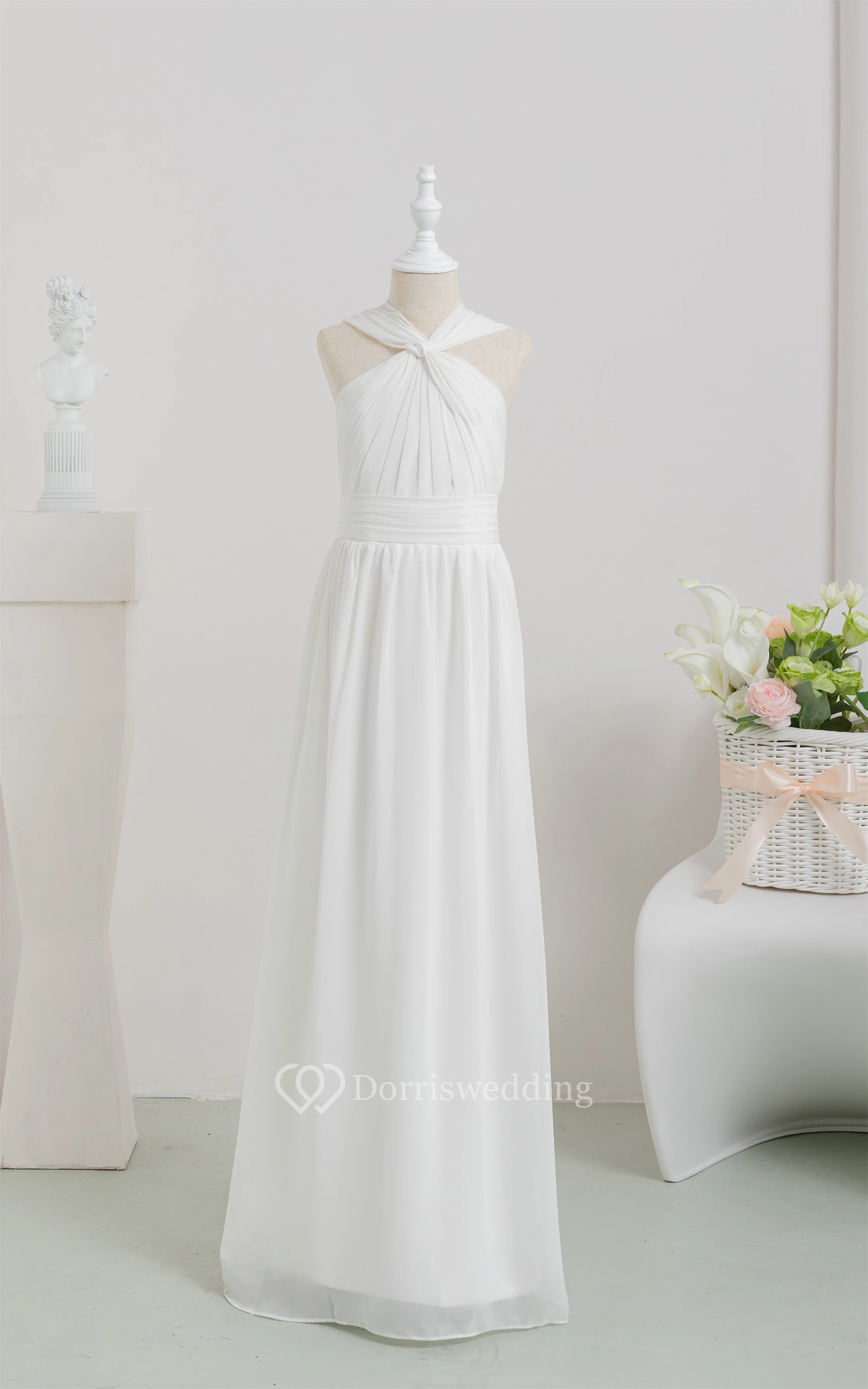 Chiffon Long White Empire Communion Casual Flowergirl Dress