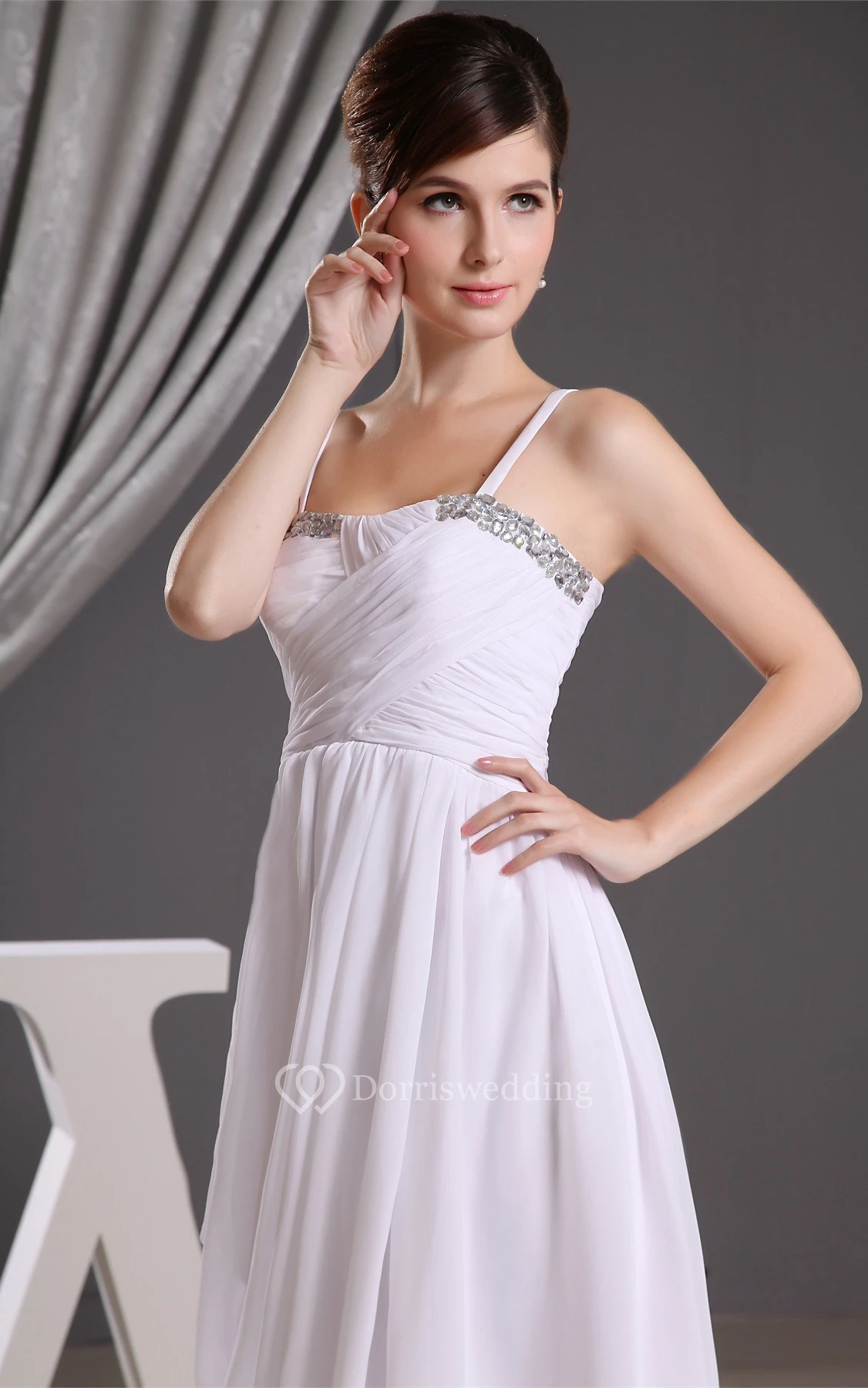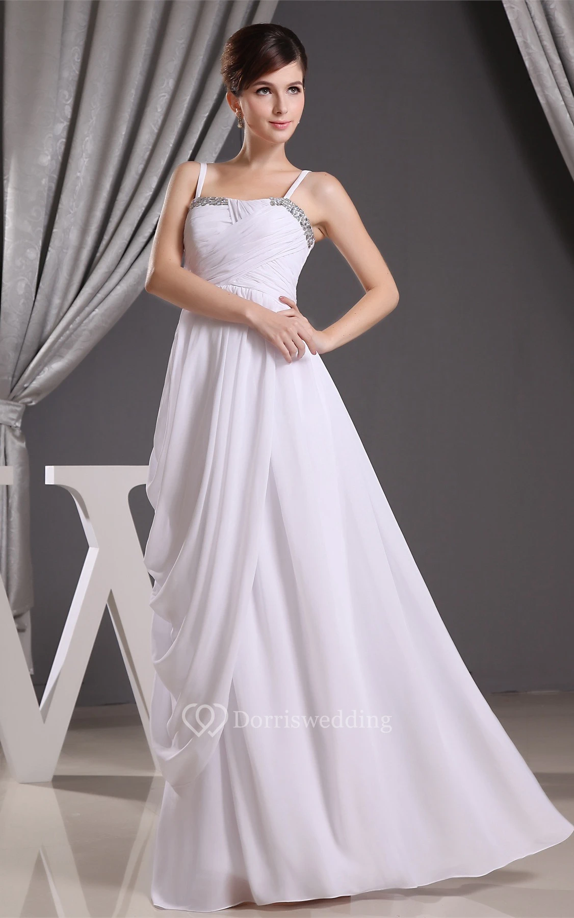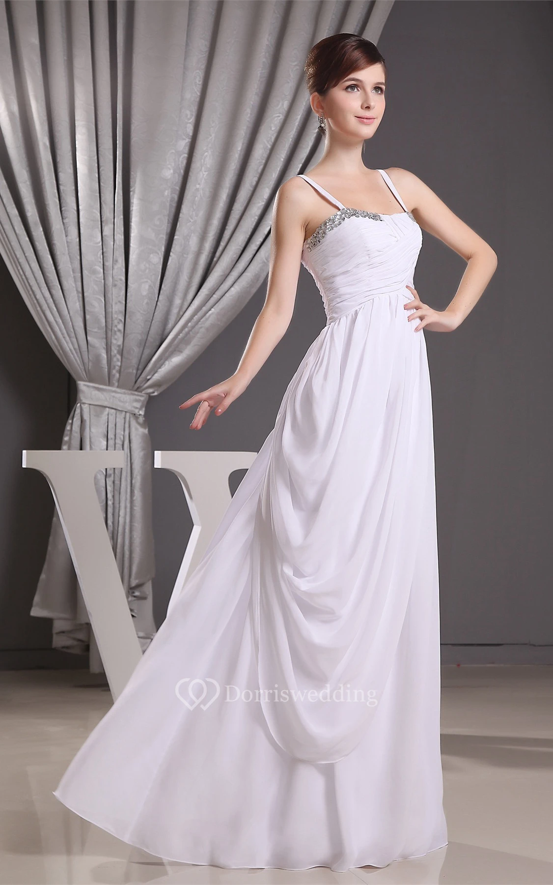 Chiffon Maxi Ruched Side Draping and Dress With Spaghetti Straps