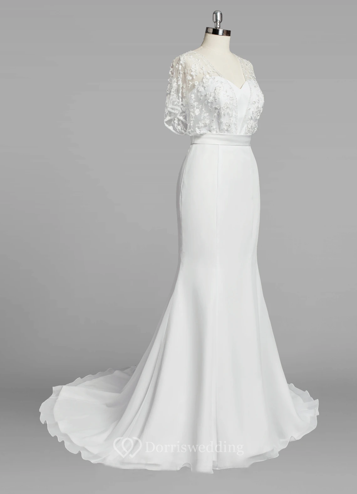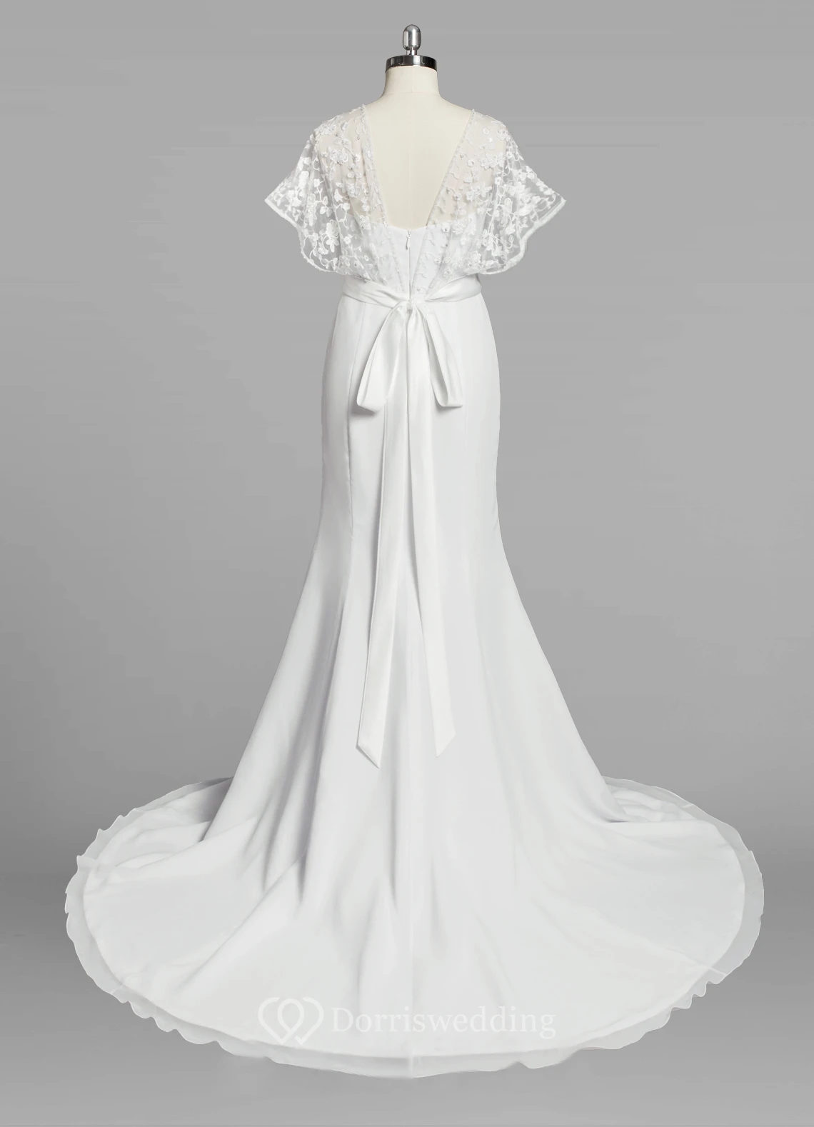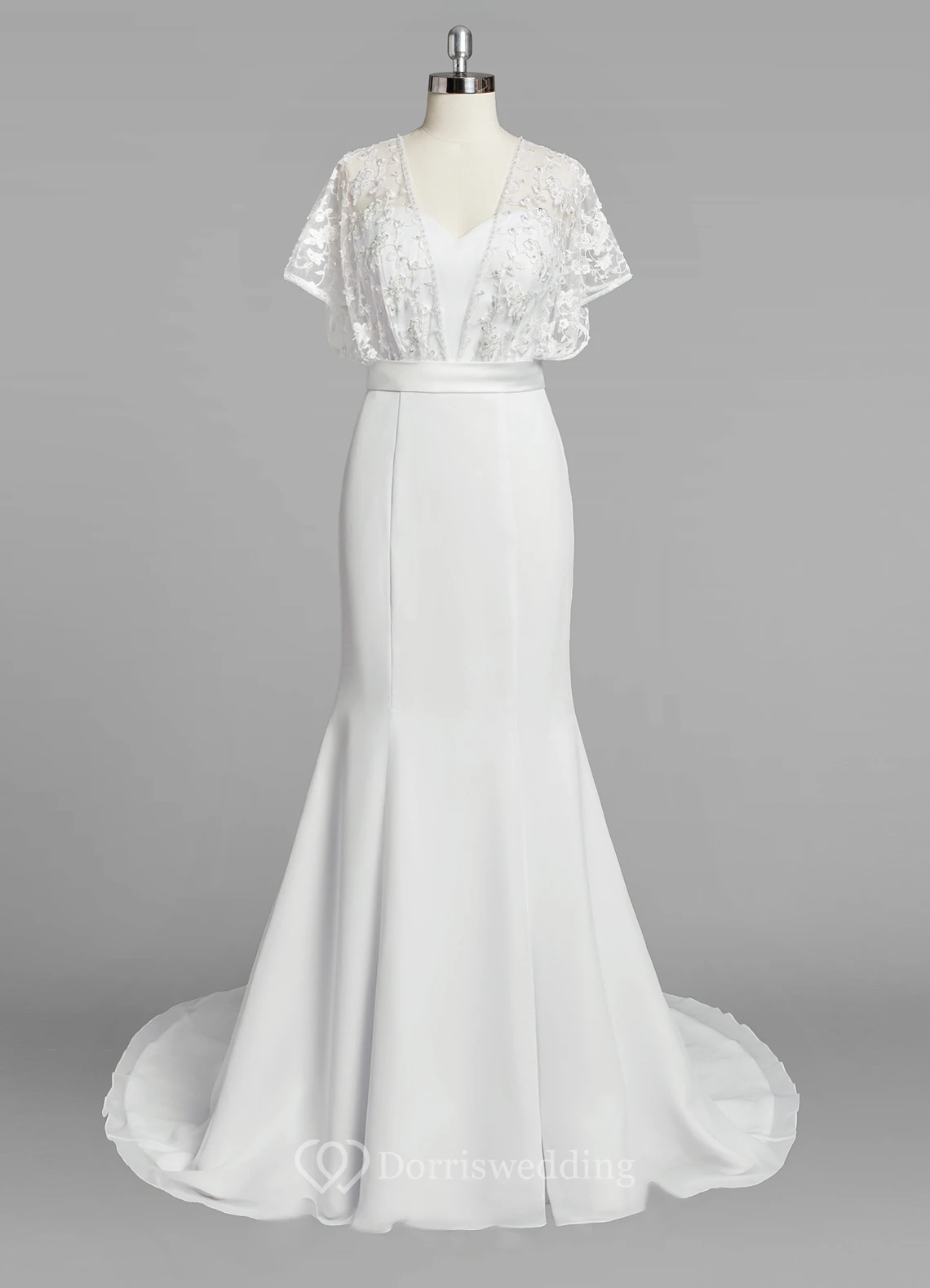 Chiffon Mermaid Wedding Dress With Lace Cape and Satin Sash
