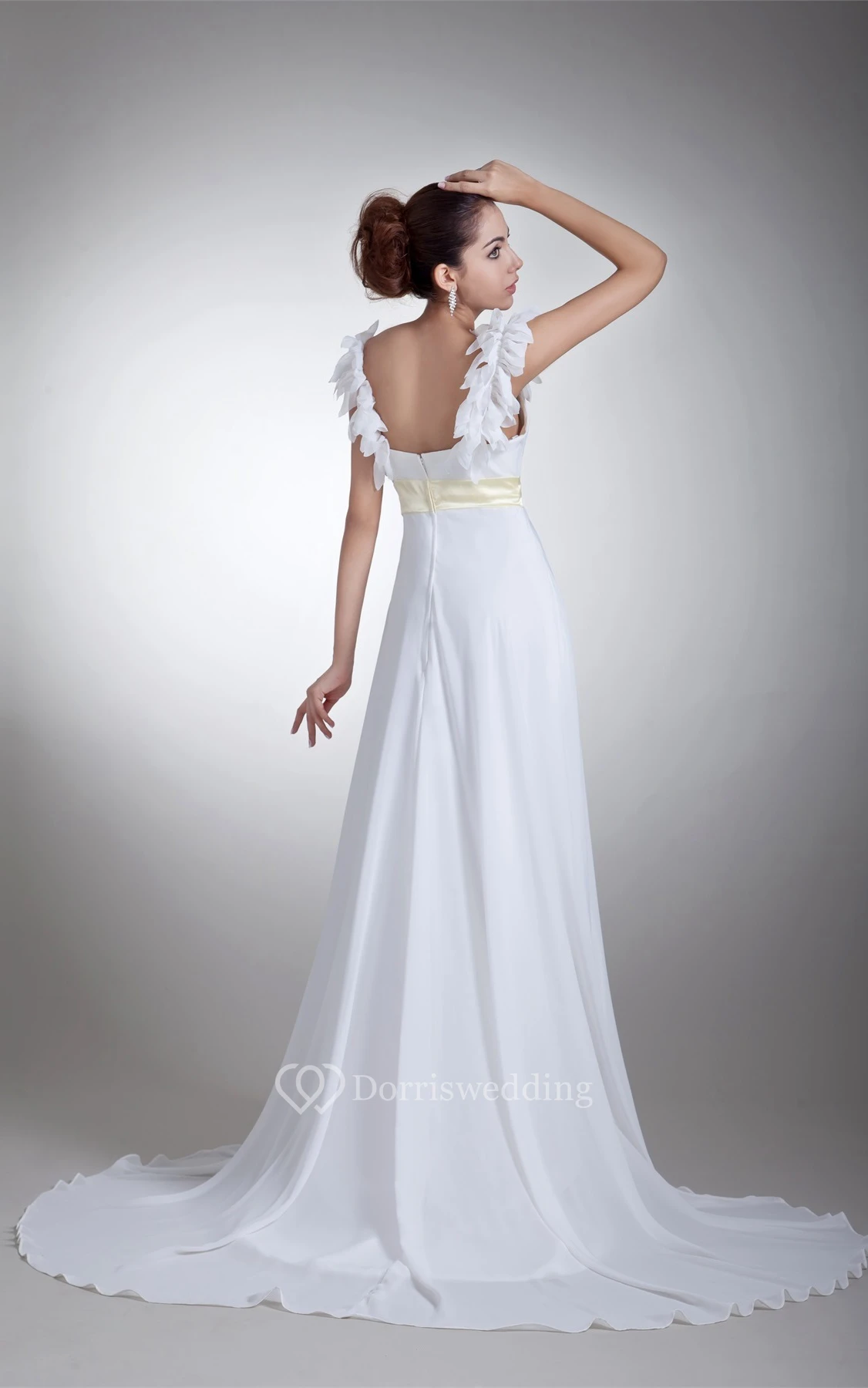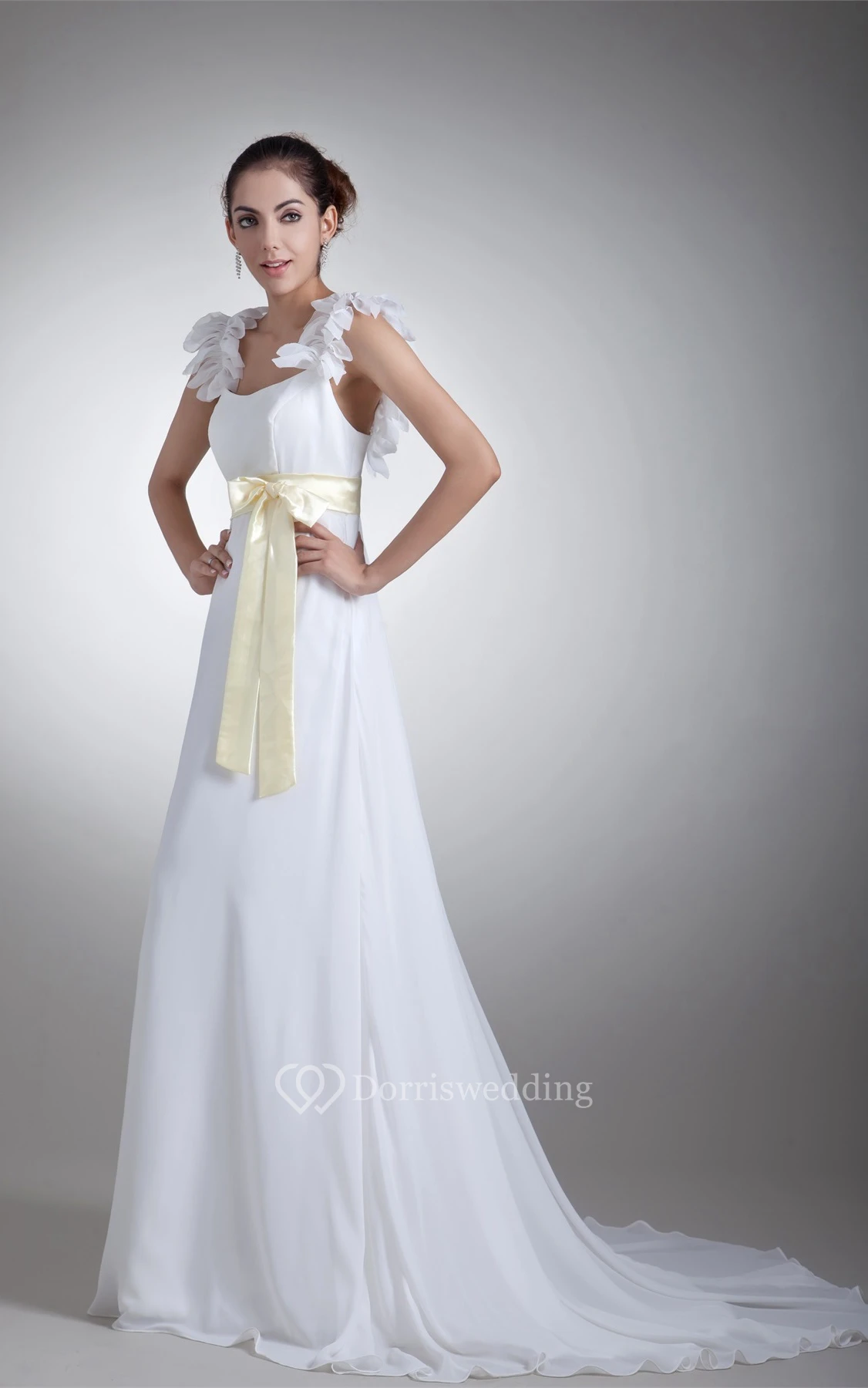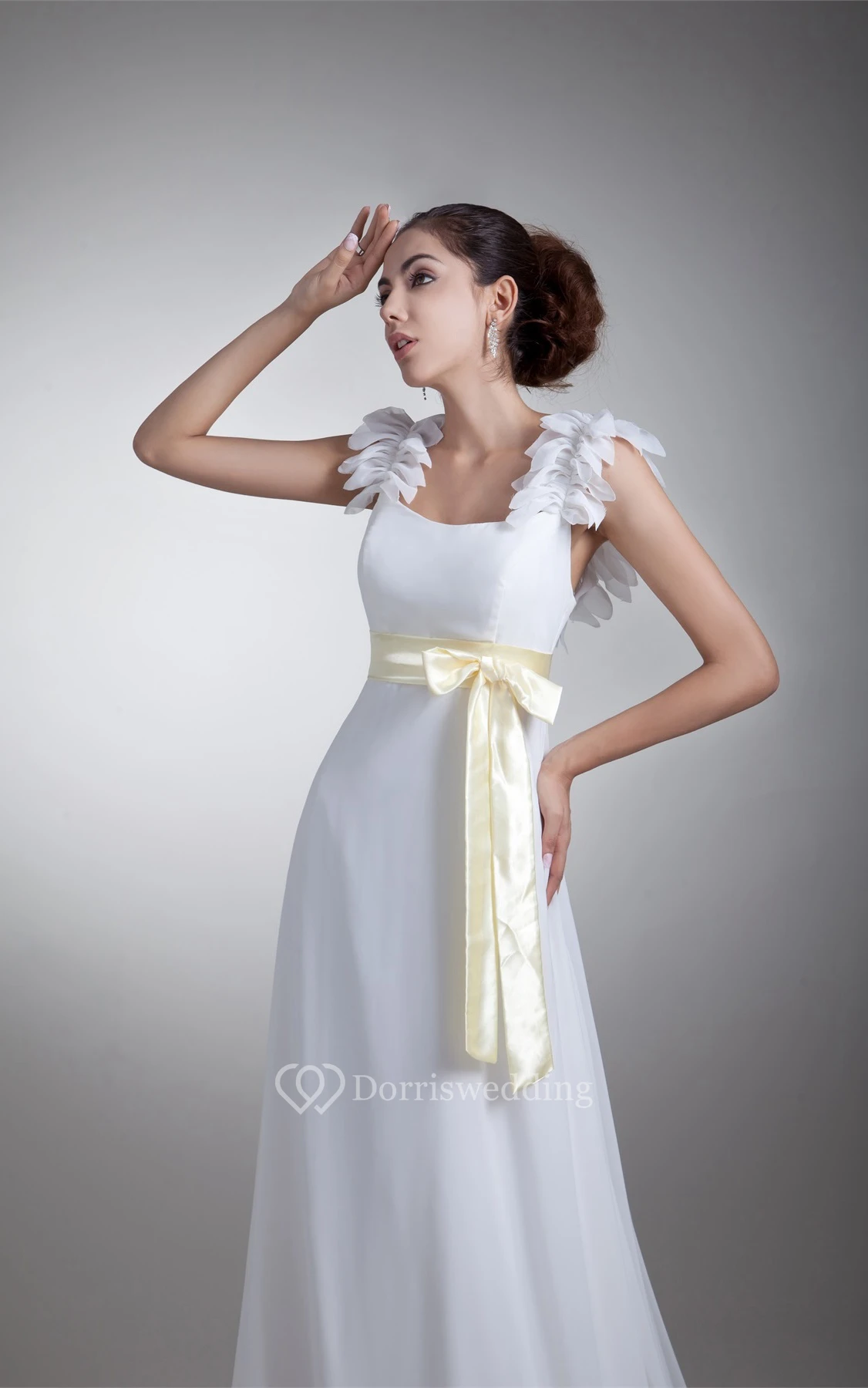Chiffon Sheath Floor-Length Floral Straps and Dress With Ribbon