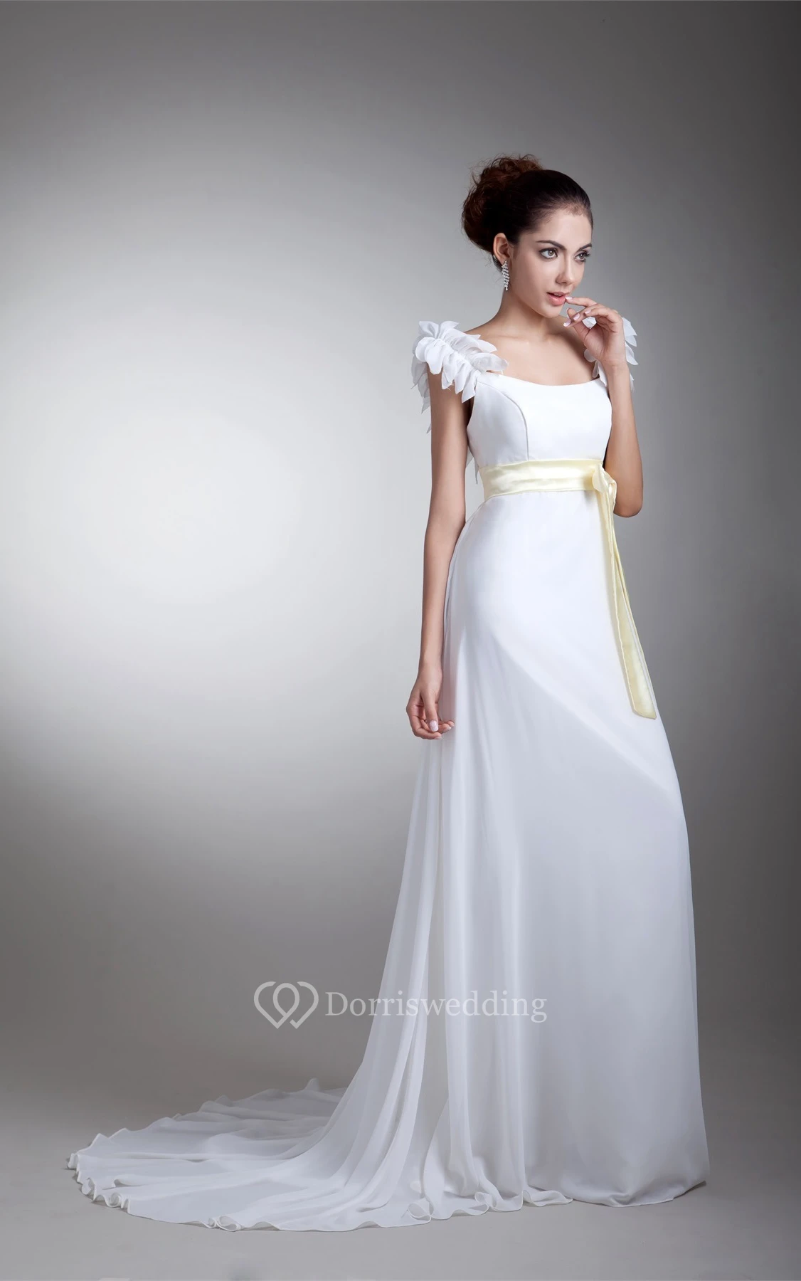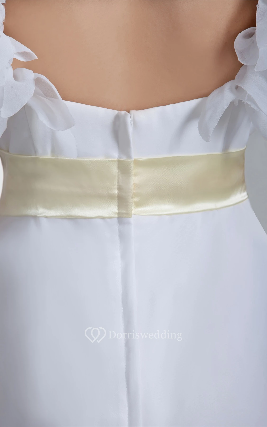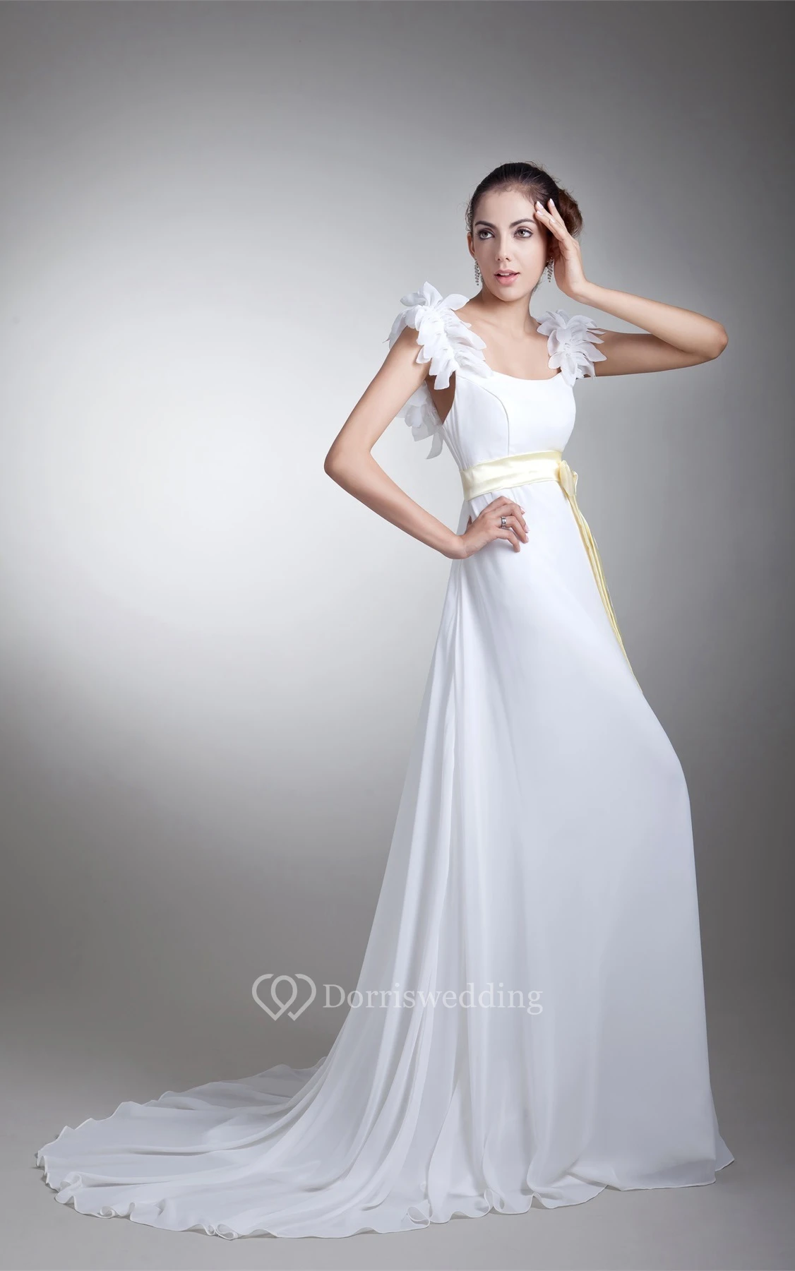 Chiffon Sheath Floor-Length Floral Straps and Dress With Ribbon