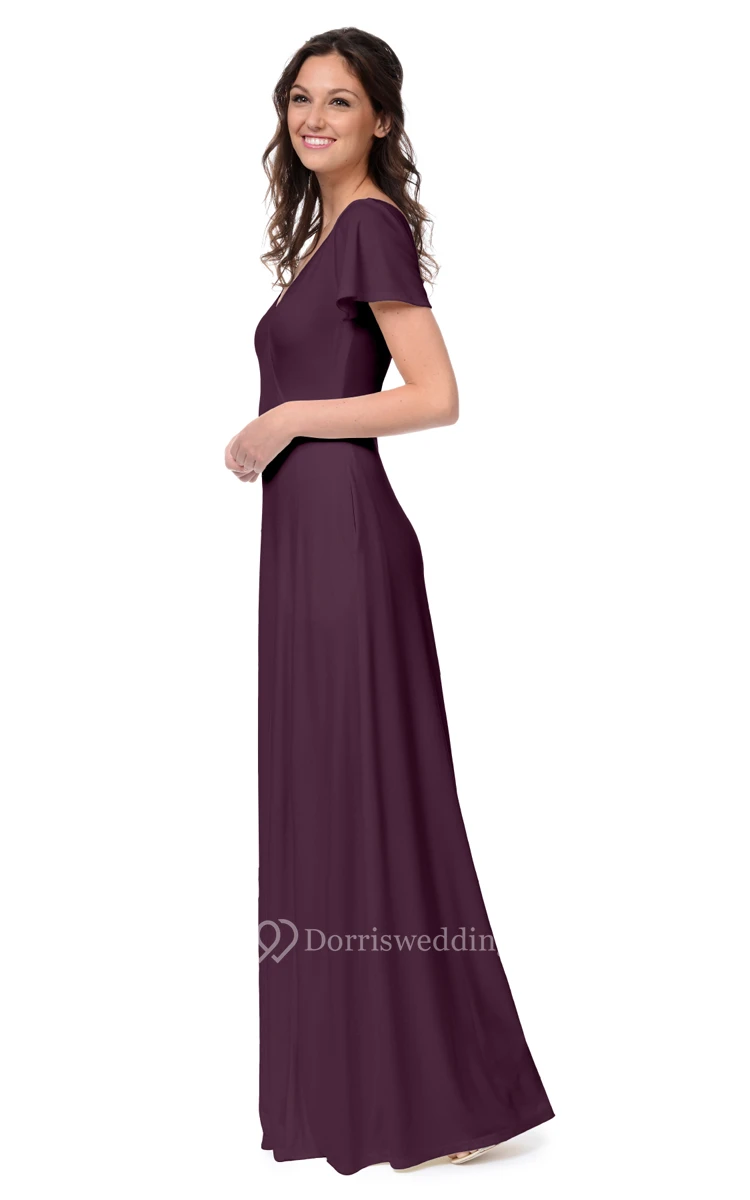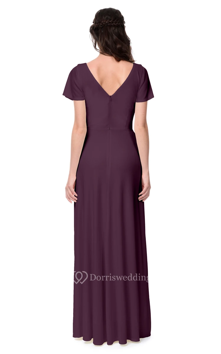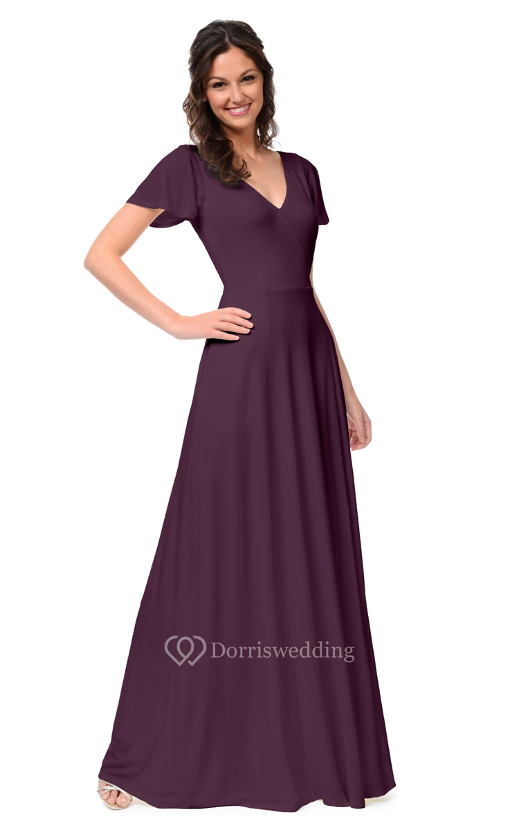 Chiffon Short-Sleeved A-Line Delicate V-Neck Gown