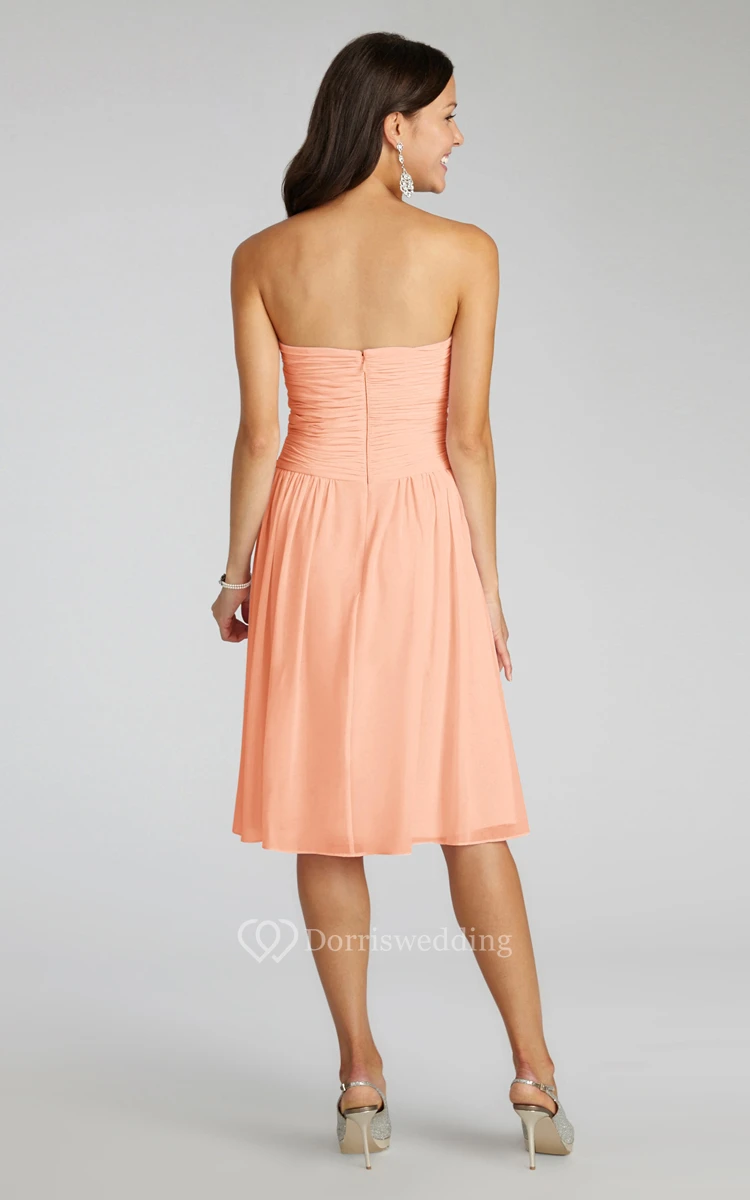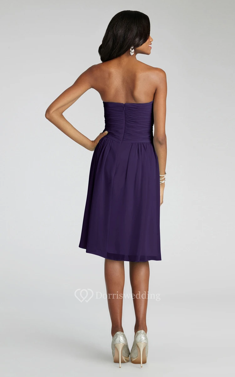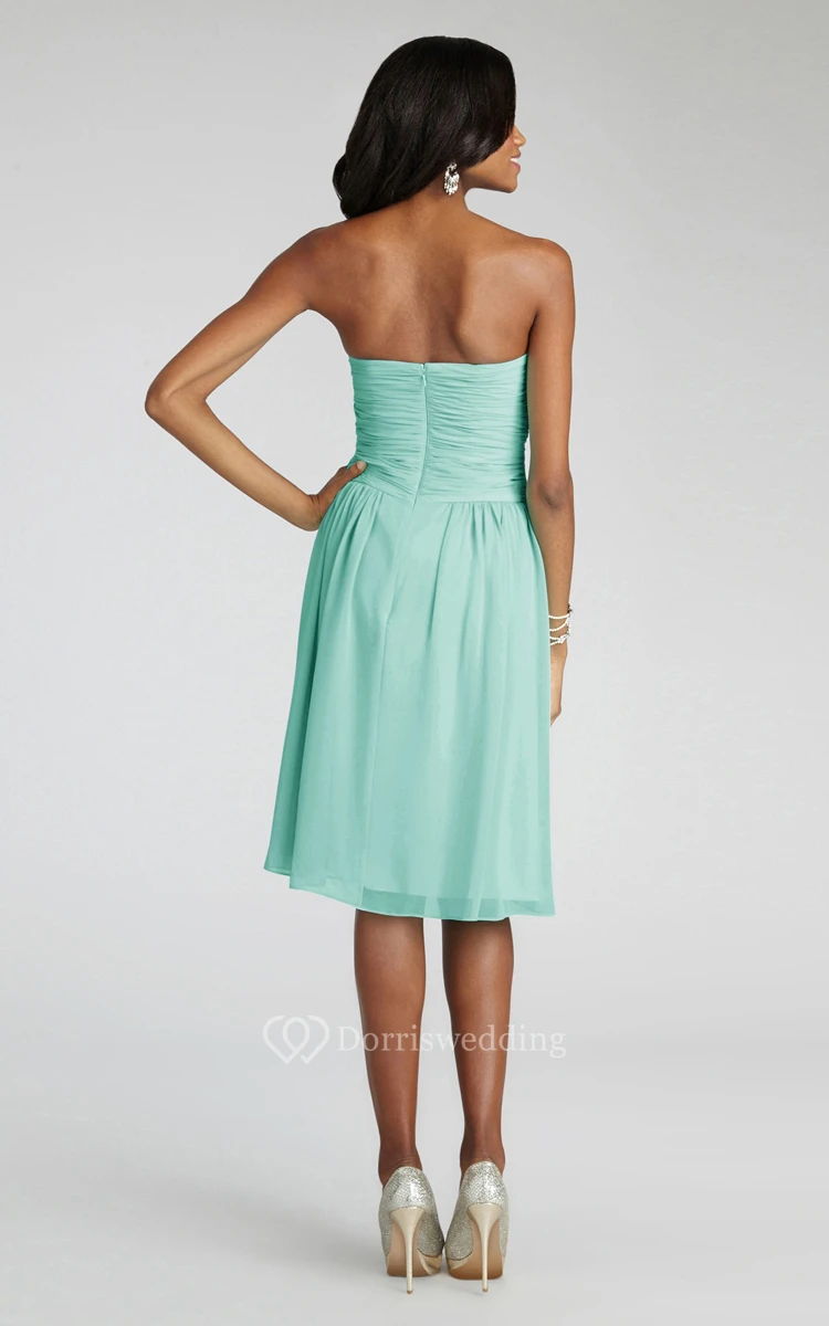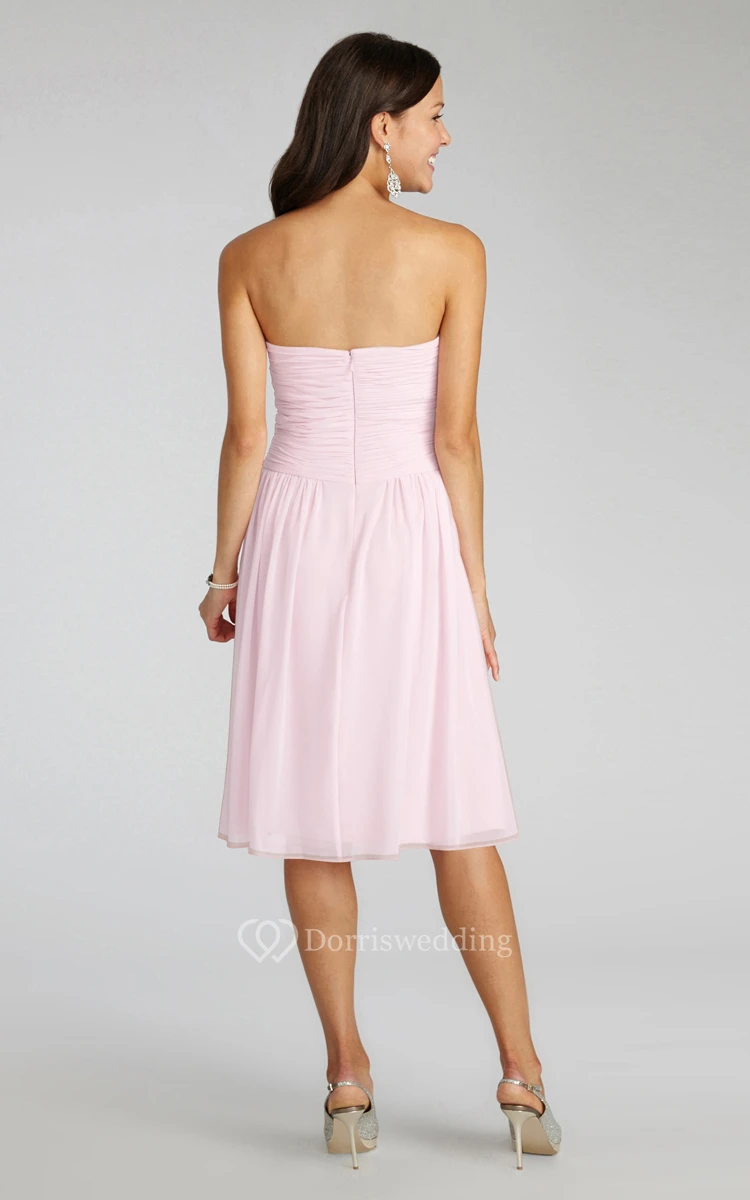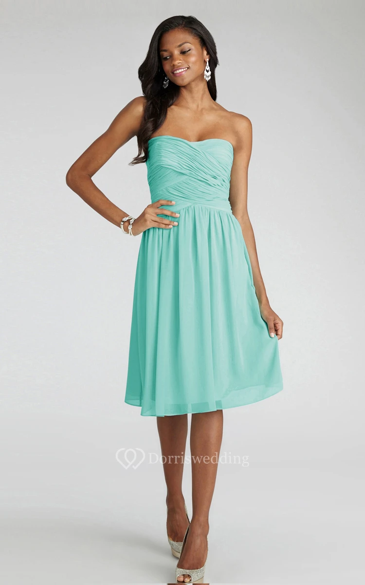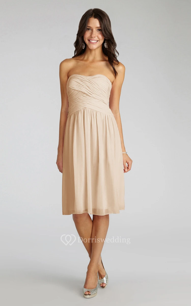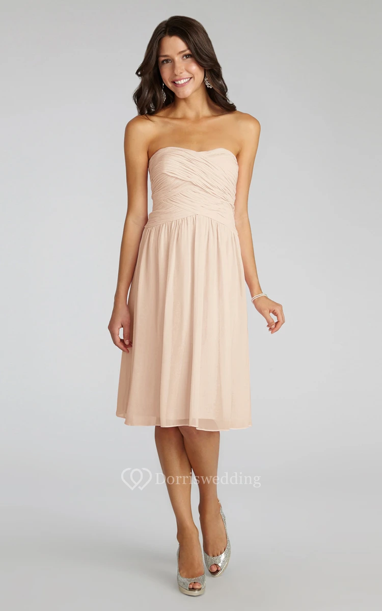 Chiffon Short Strapless Dress With Crisscross Ruching