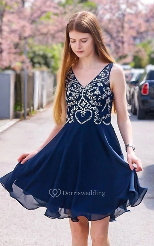 Chiffon Short V-neck A Line Sleeveless Adorable Homecoming Dress