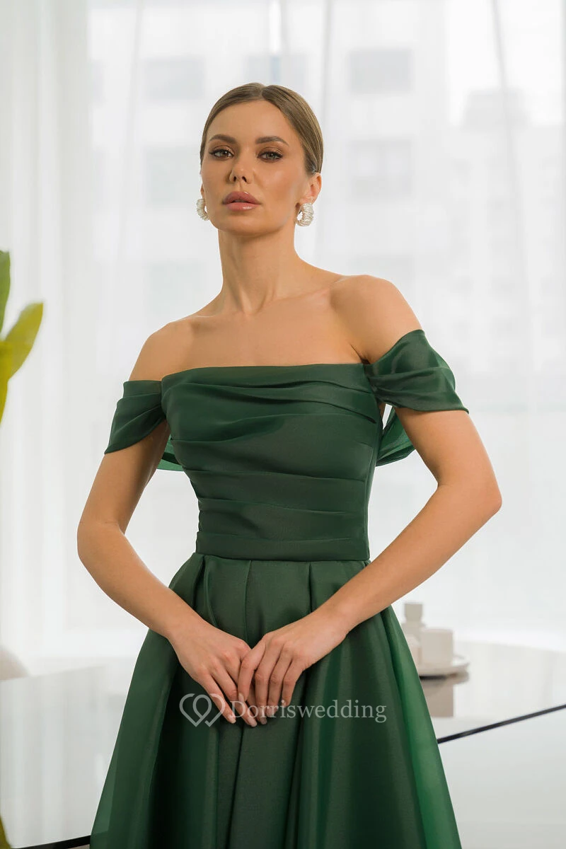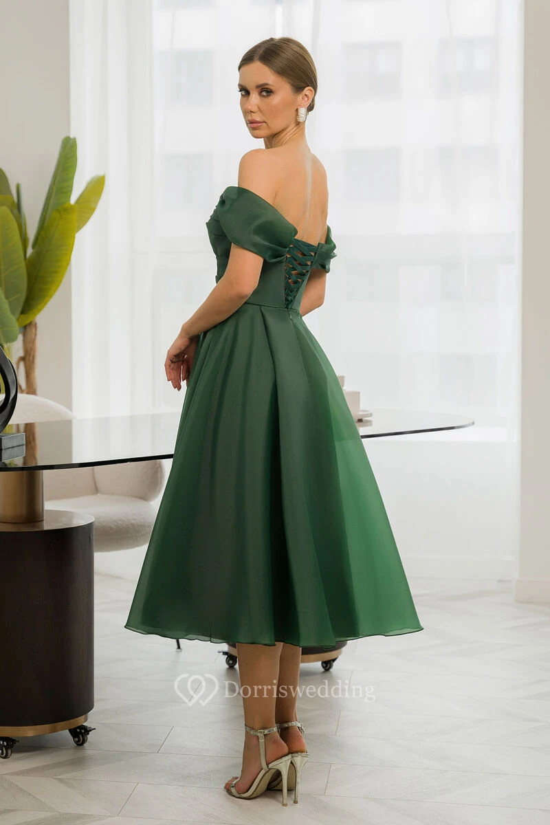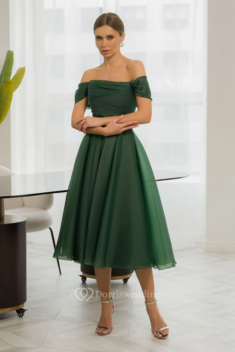 Chiffon Simple Empire Off-the-shoulder A-line Tea-length Dress