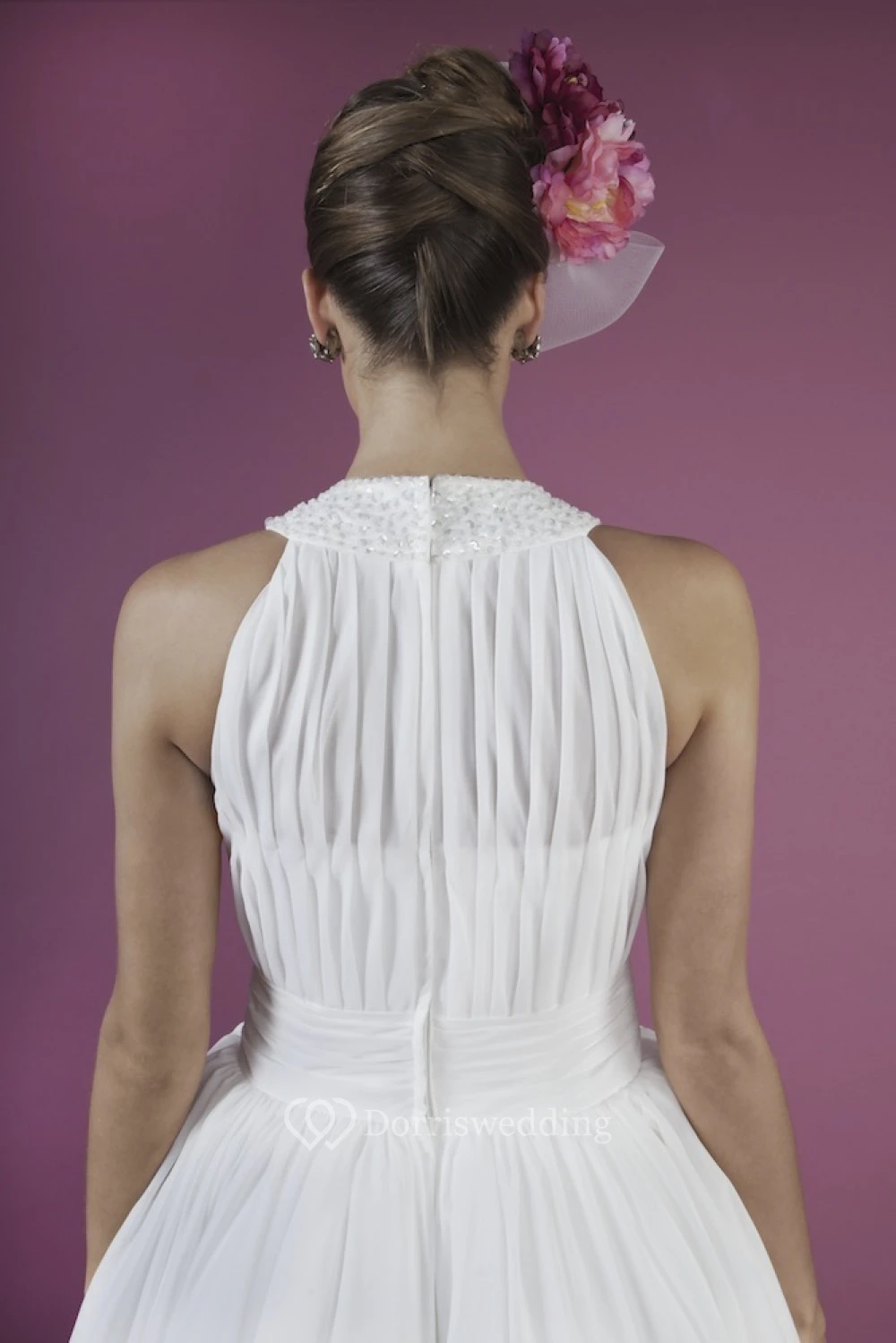 Chiffon Sleeveless A-line Vintage Jewelry Neckline Dress With Sash And Pleats
