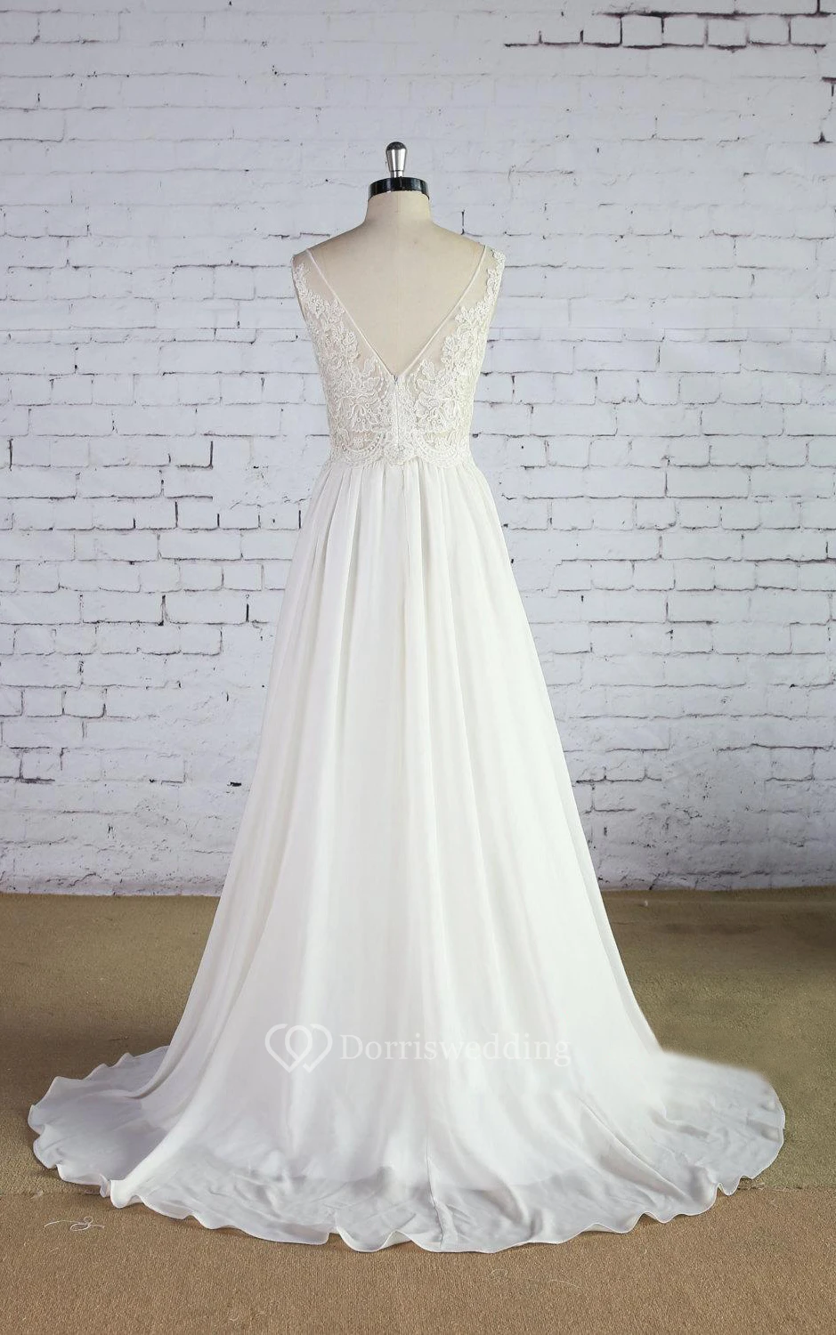 • Hemline/Train: Floor-length, Sweep/Brush Train