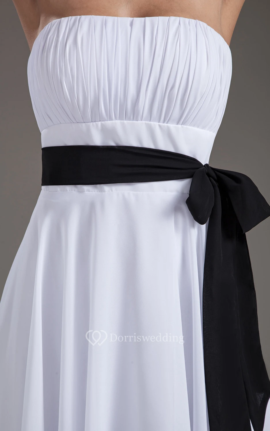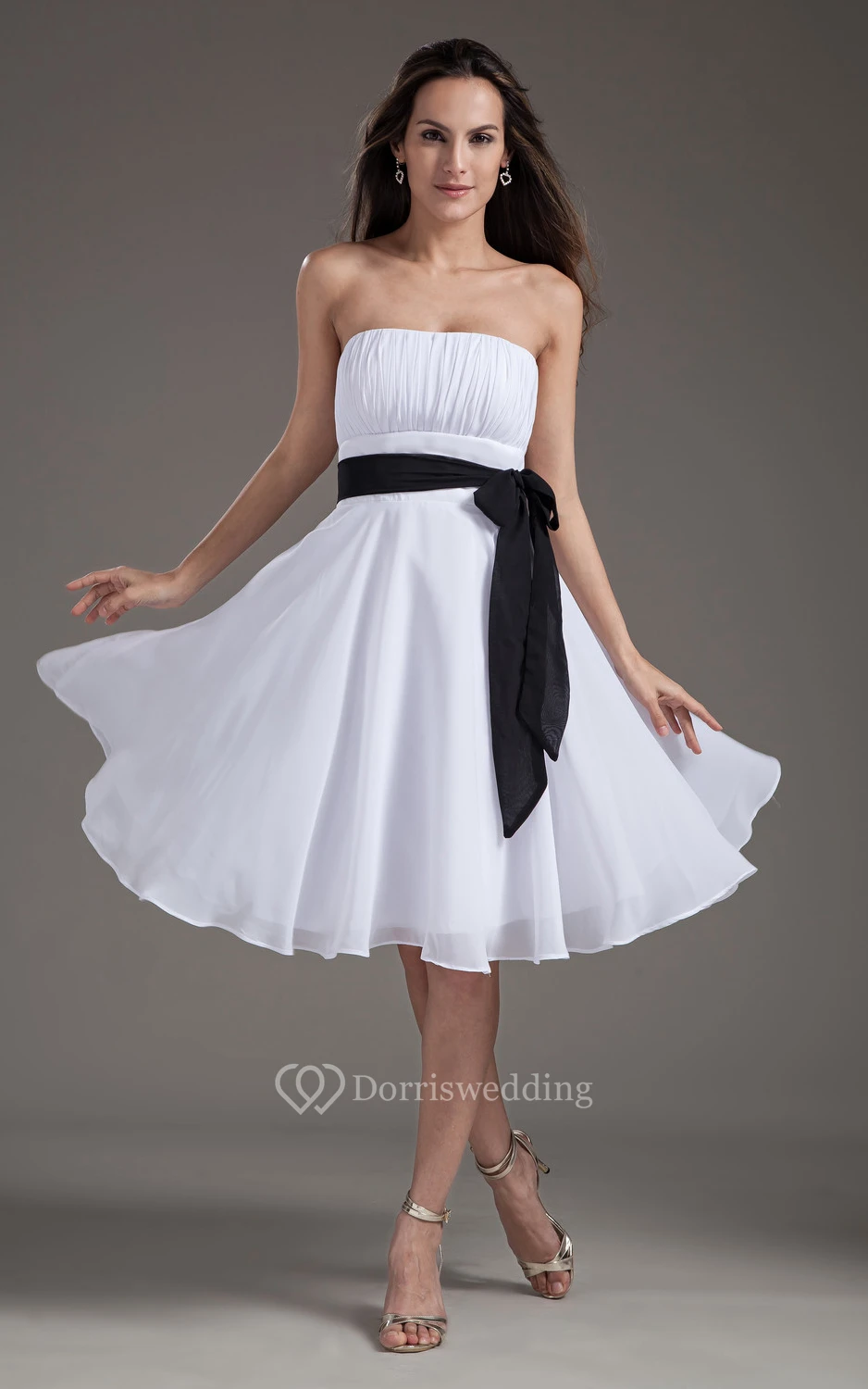 Chiffon Strapless Knee-Length Dress With Sash and Bow
