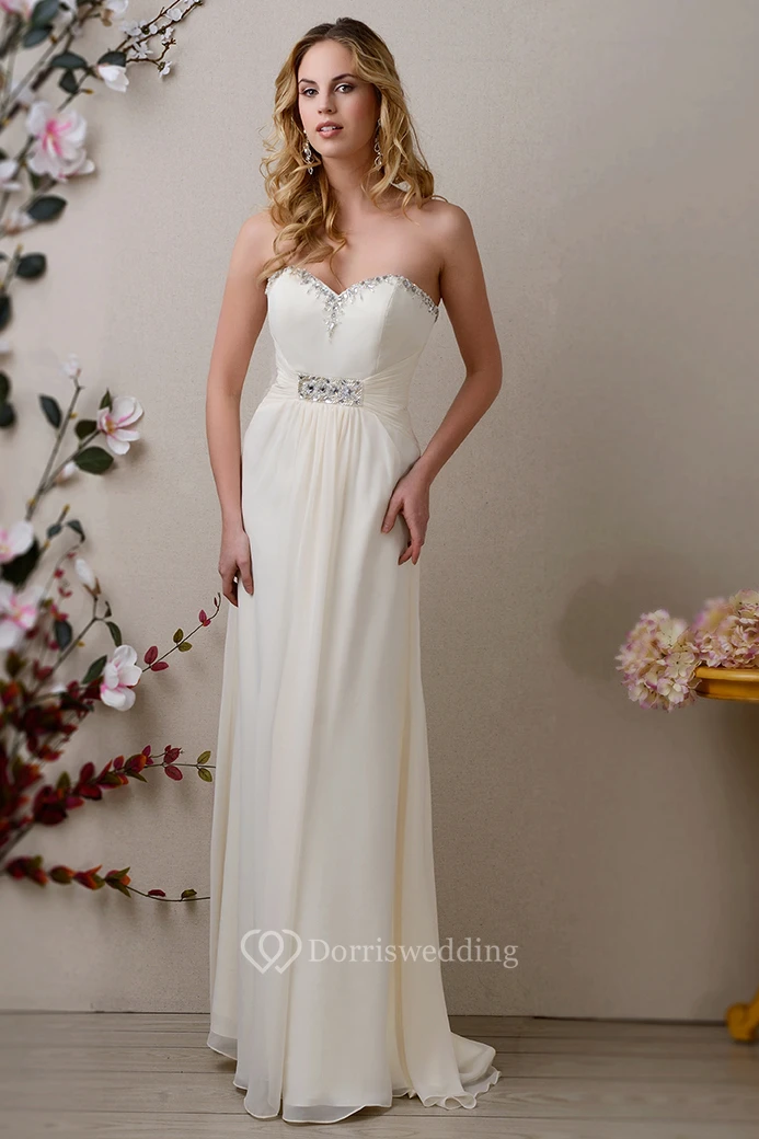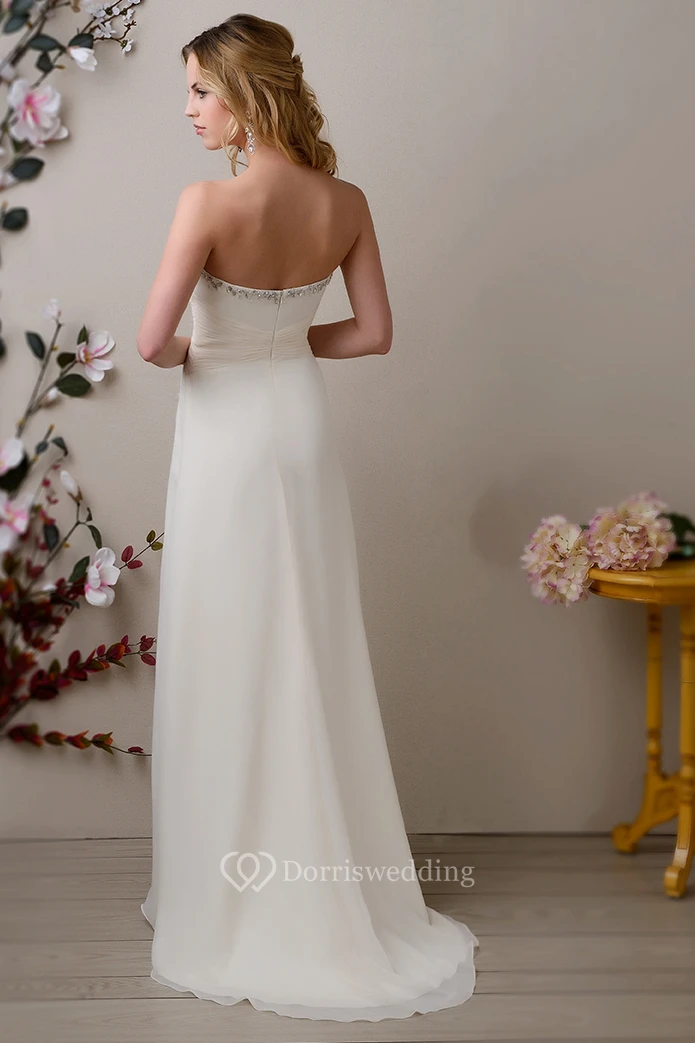 Chiffon Sweetheart A-Line Gown With Ruched Waist And Beadwork