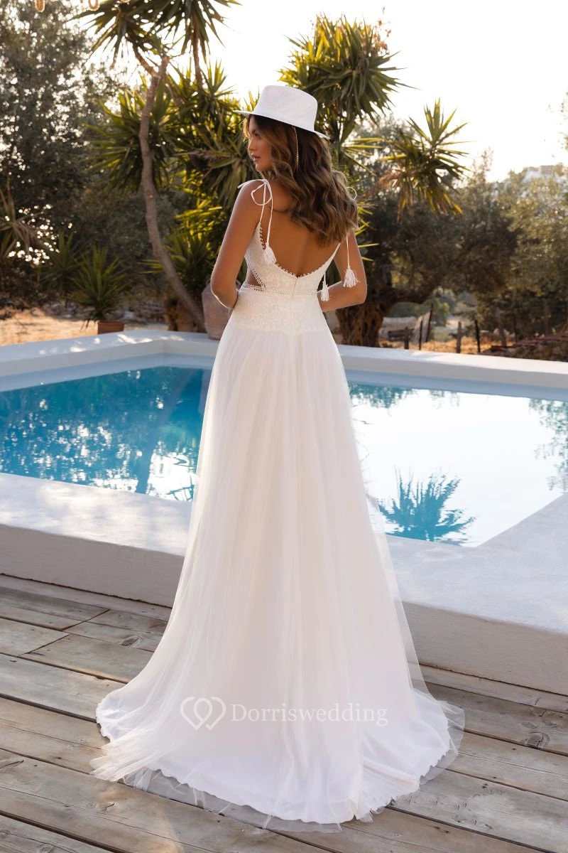 Chiffon V-neck Spaghetti Front Split Summer Wedding Dress