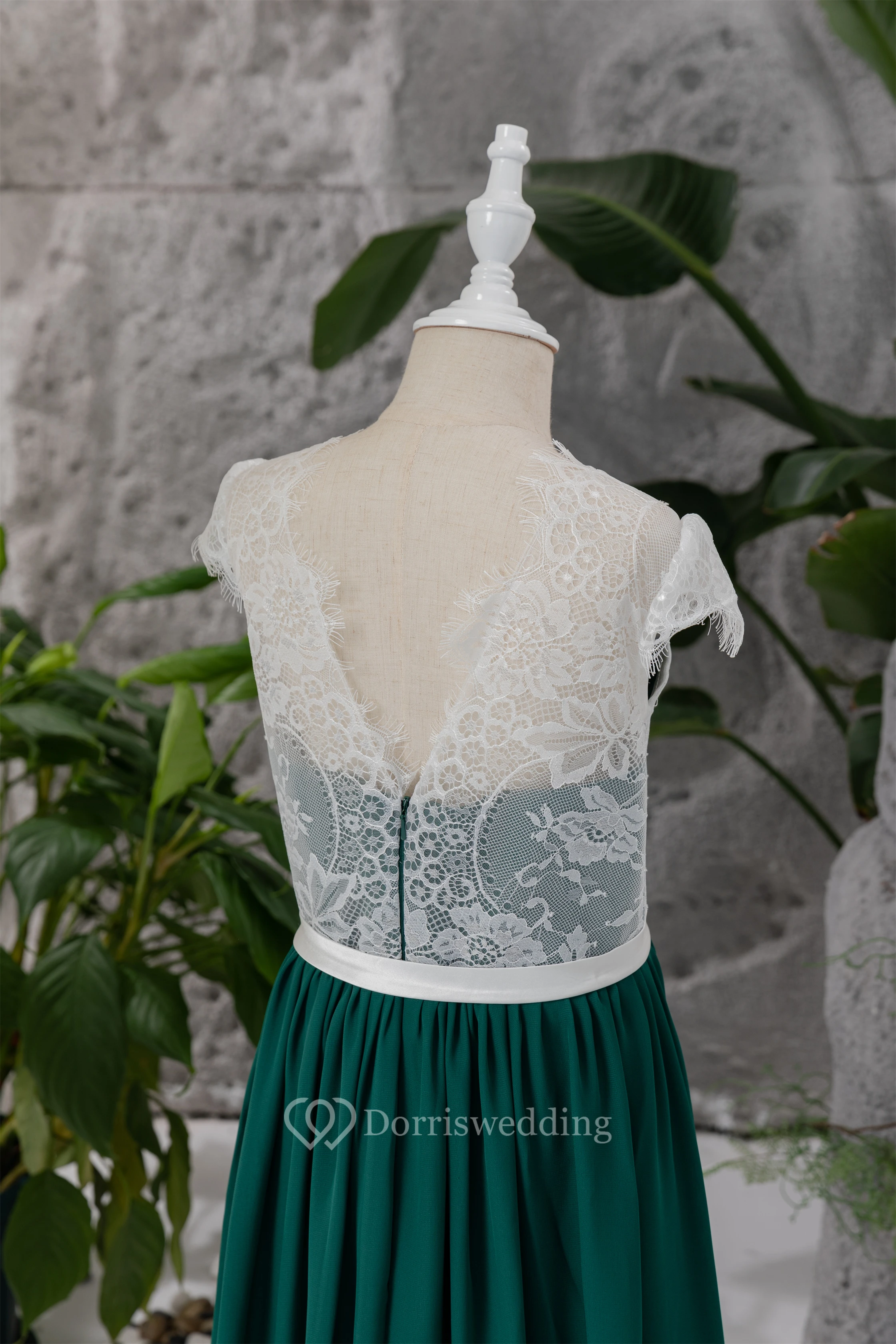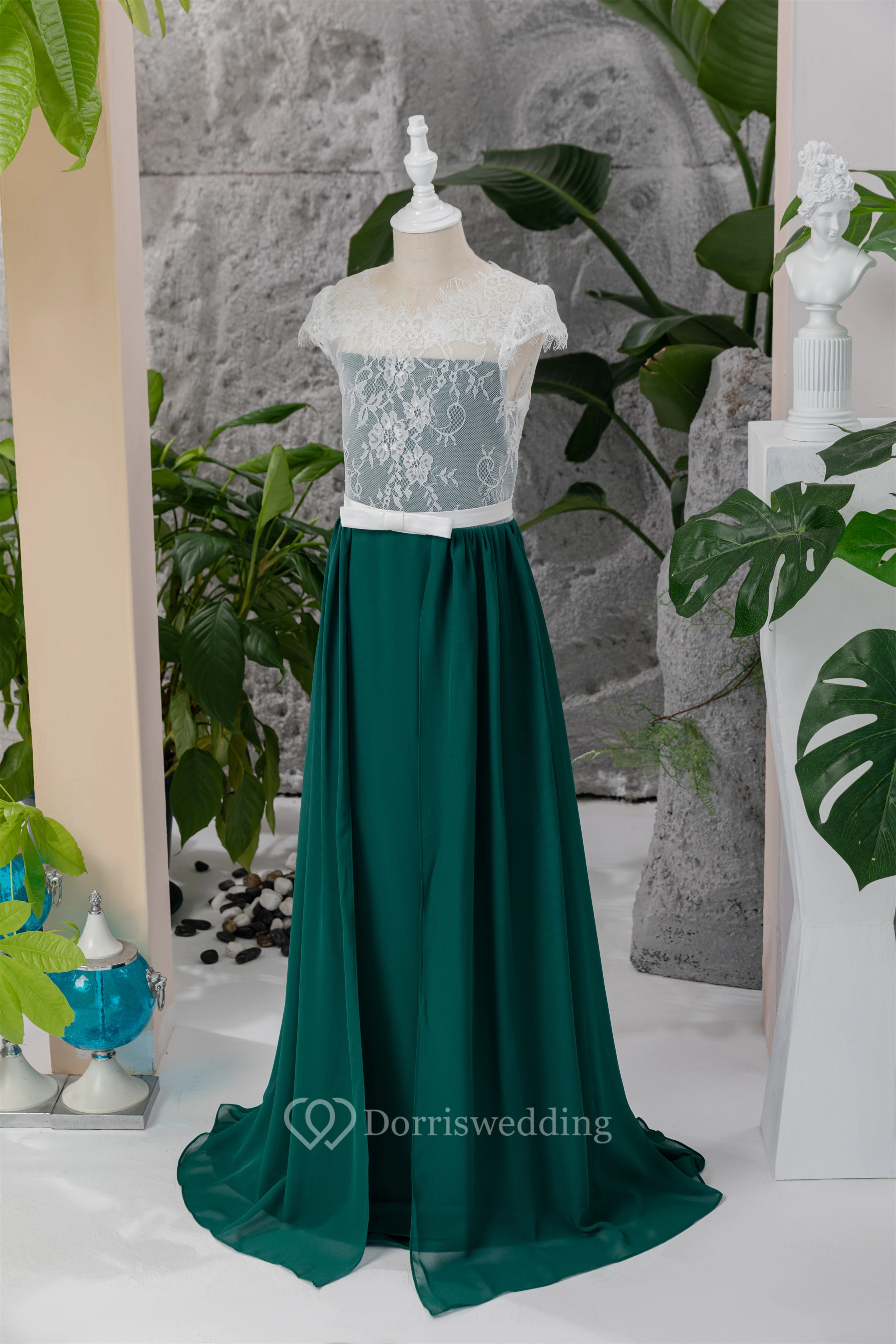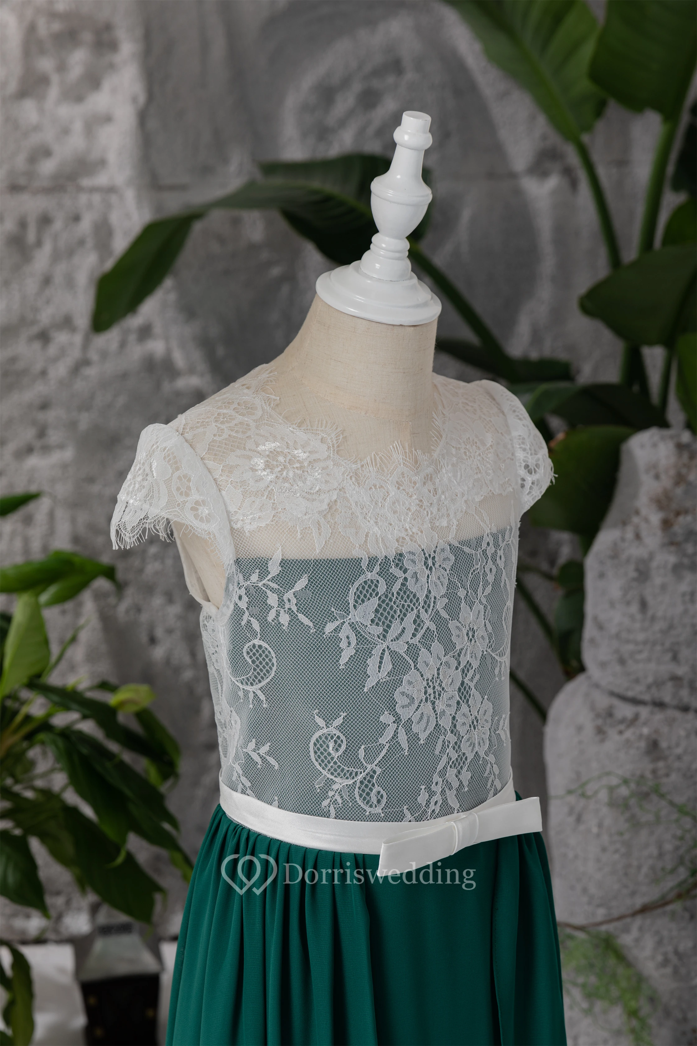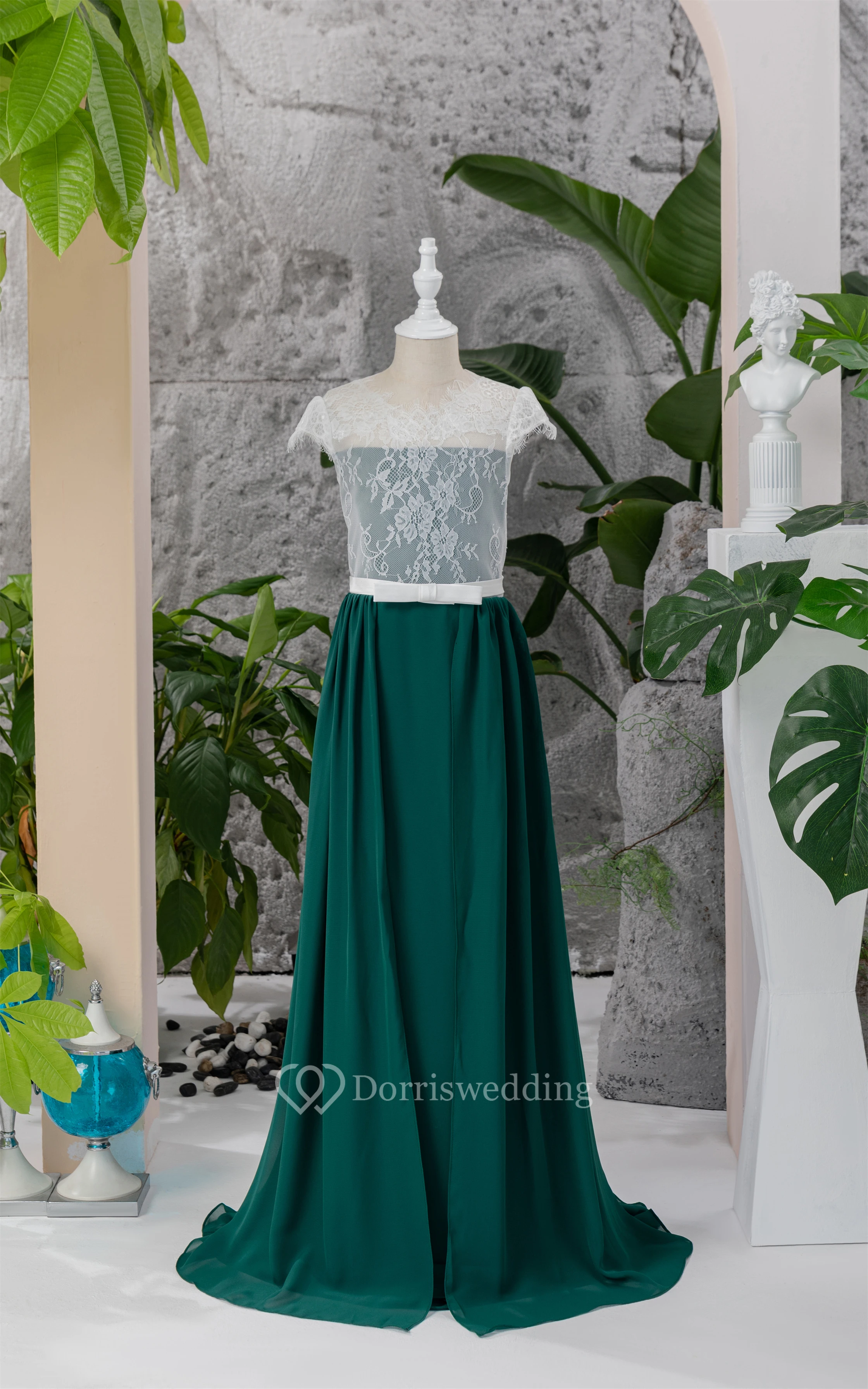 Chiffon White and Dark Green Lace Floor-length Flowergirl Dress