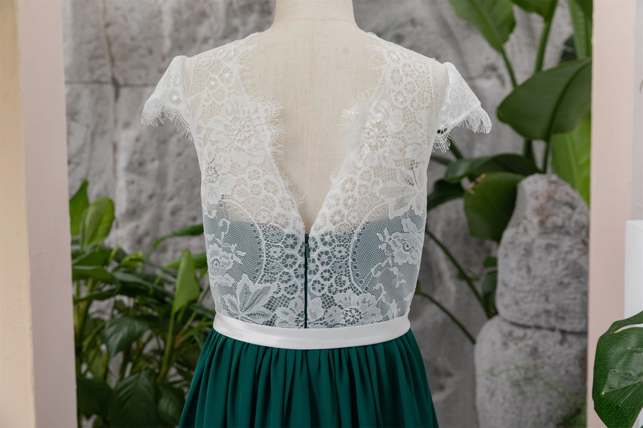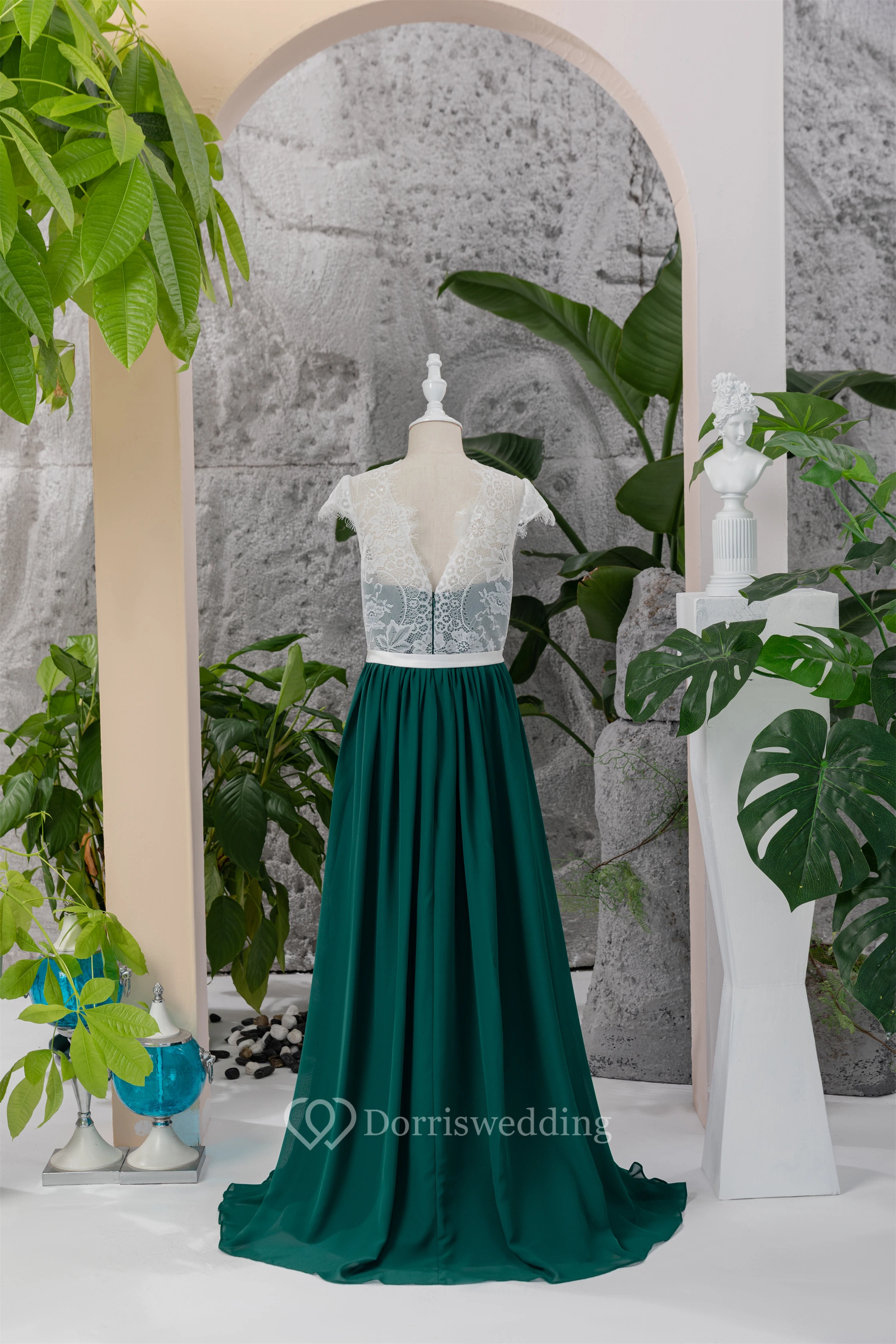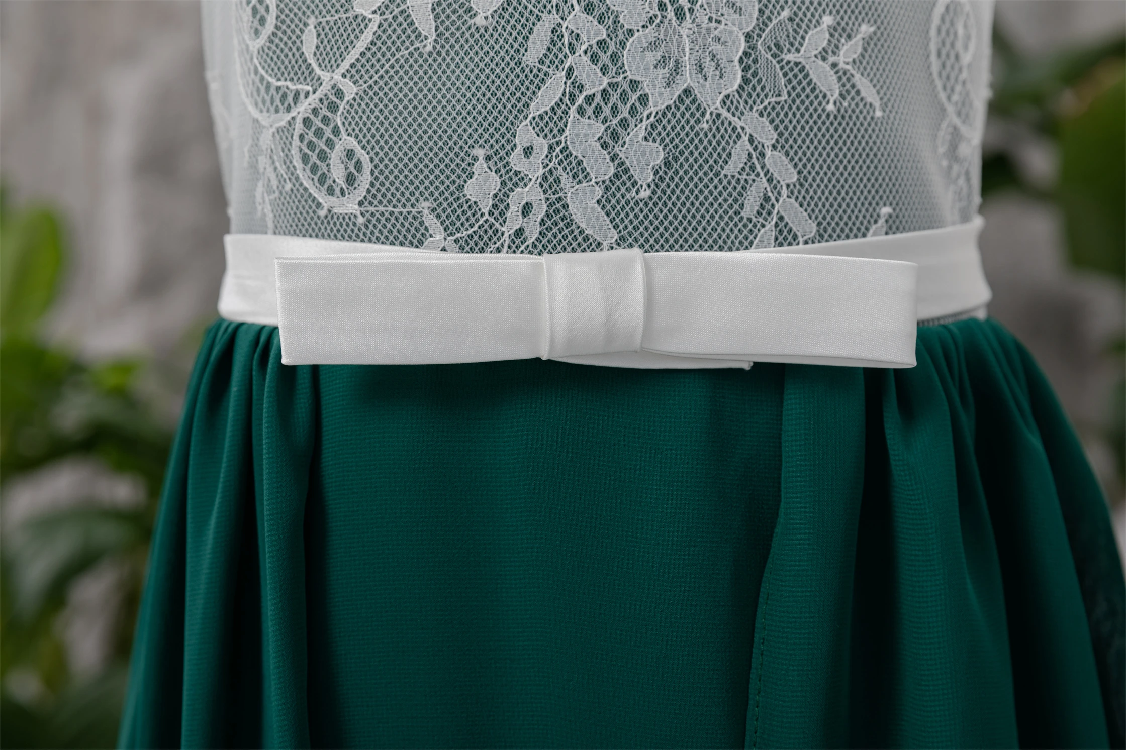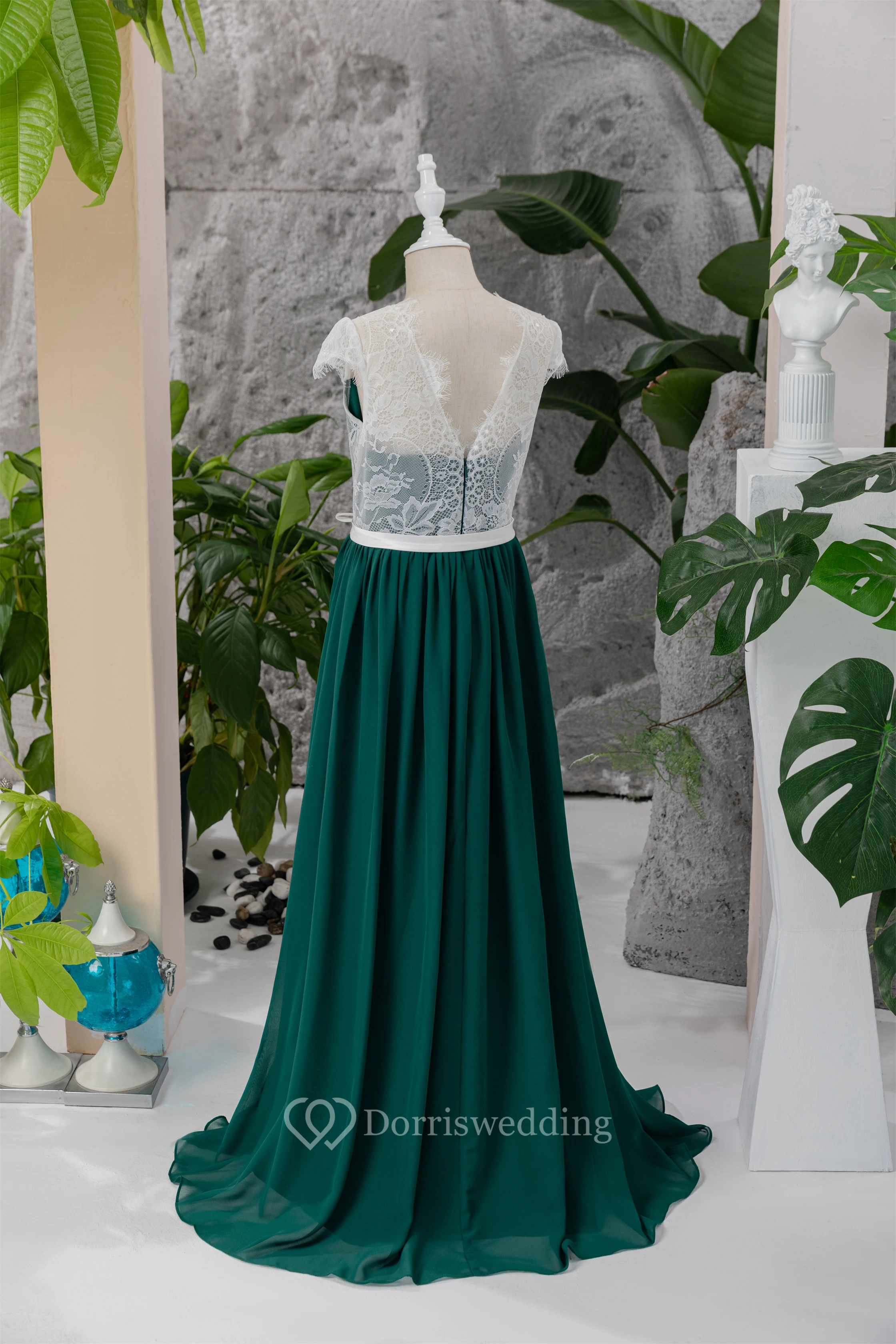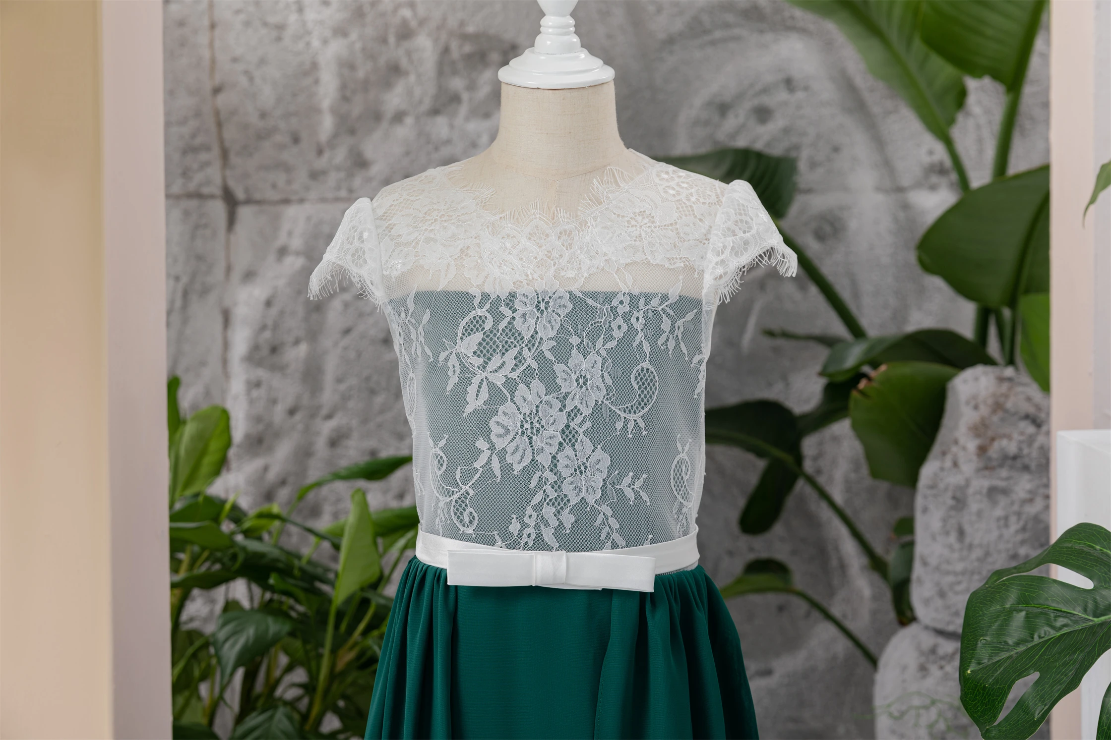 Chiffon White and Dark Green Lace Floor-length Flowergirl Dress