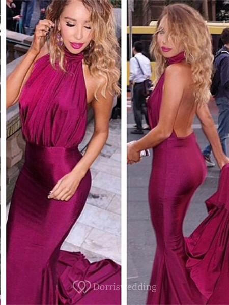 Classic Halter Mermaid Prom Dresses Mermaid Backless