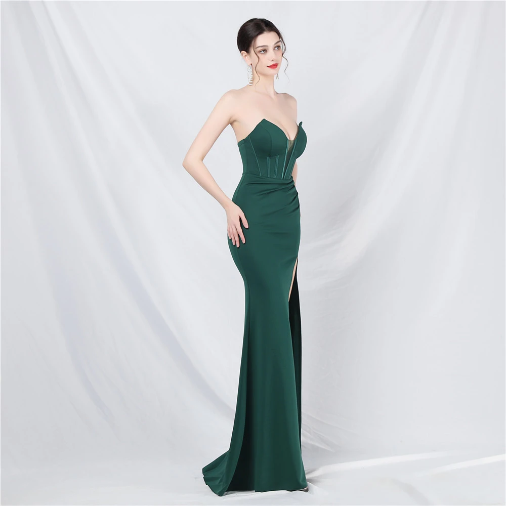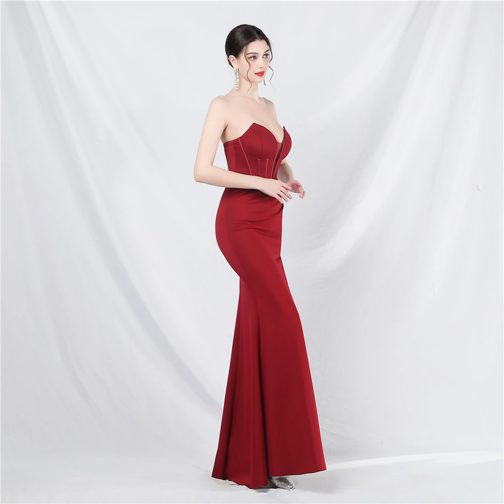 Classic Palace Herringbone Vest Waist Strapless Sling Evening Dress