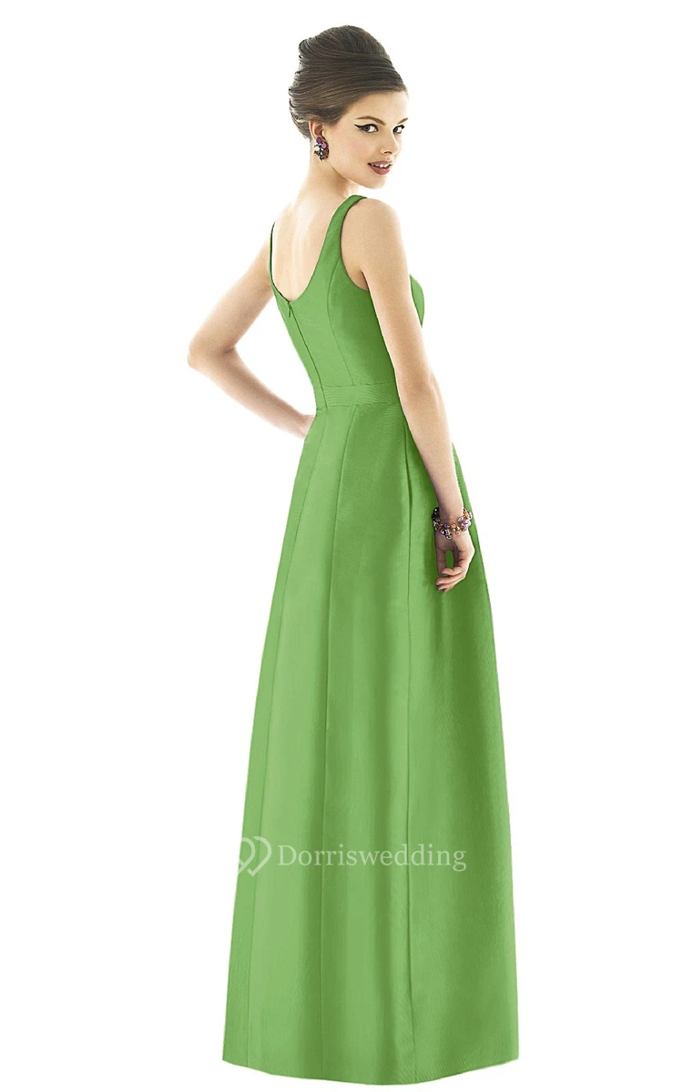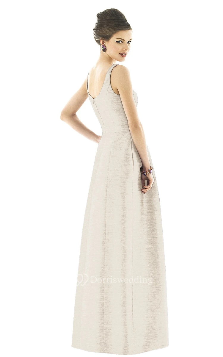 Classic Sleeveless Satin Gown With Zipper Back