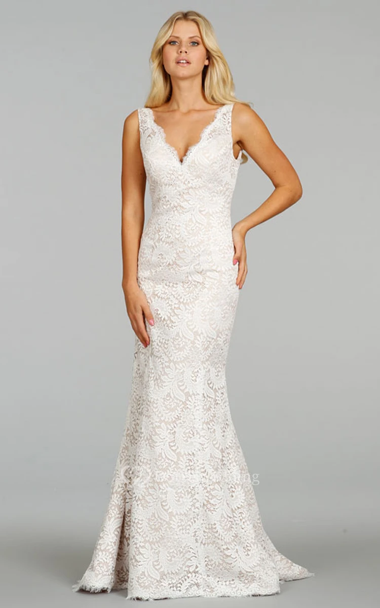 This dress features a beautiful satin liner and an elegant lace overlay that offers a tailored fit for a classic look. It has limited stretch, so please let us know if you have any concerns about sizing or if you'd prefer adjustments for optimal comfort.