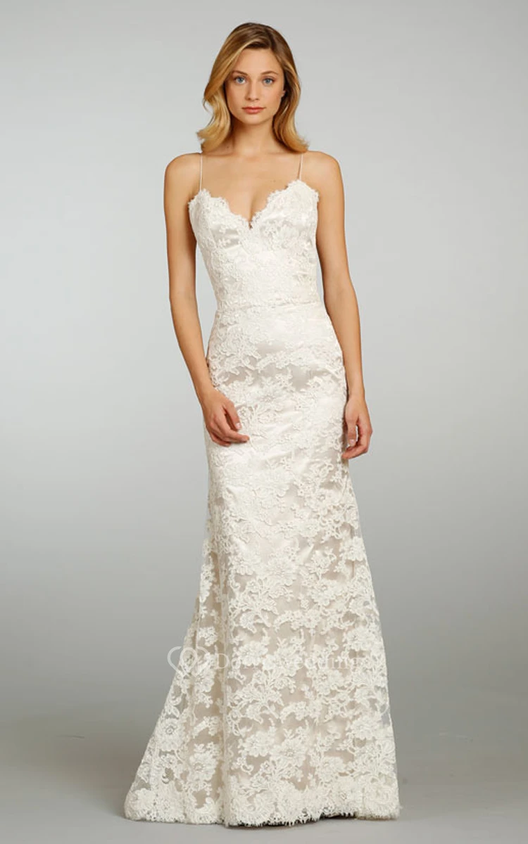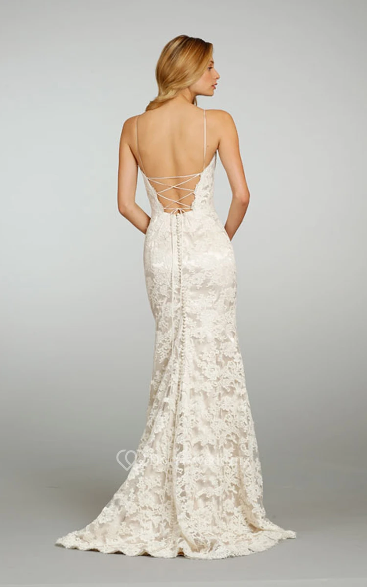 Classic Spaghetti Strap Lace Over Satin Gown With Lace Up Back