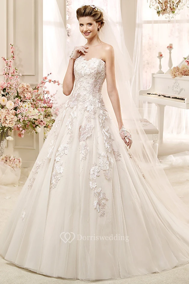 Classic Strapless A-Line Wedding Dress With Appliques And Lace-Up Back