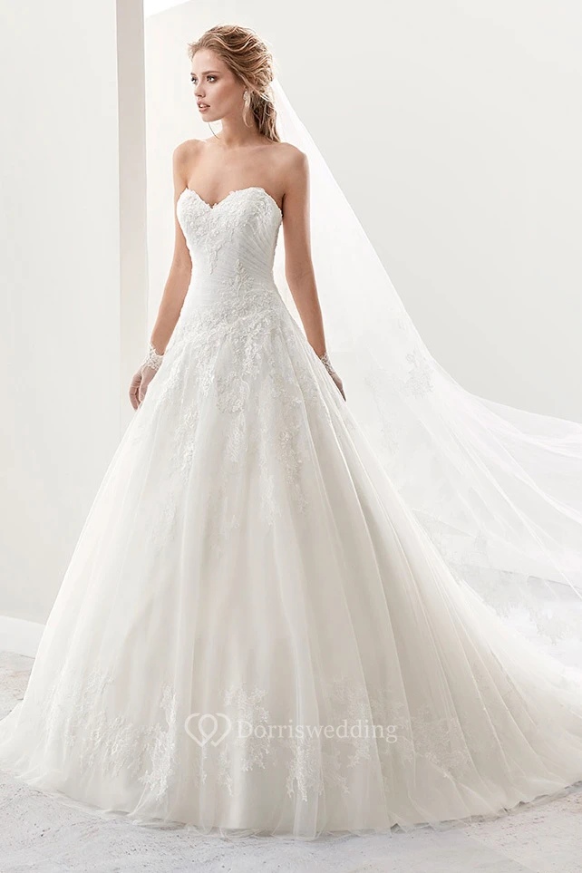 Classic Sweetheart A-Line Lace Gown With Brush Train