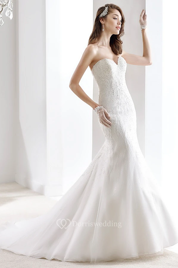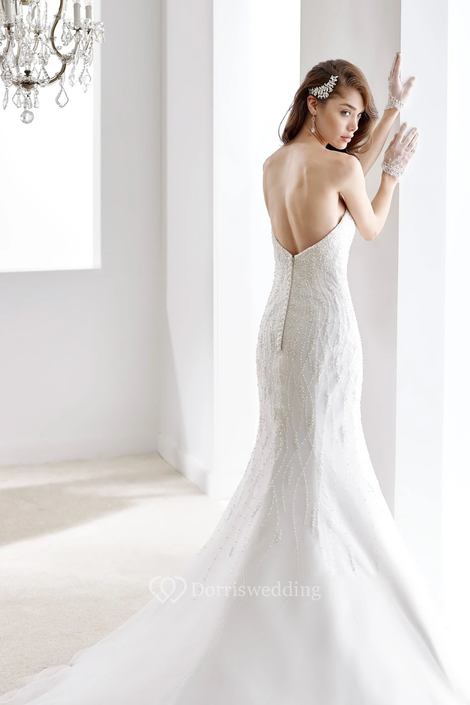 Classic Sweetheart Sheath Gown With Beaded Details And Open Back
