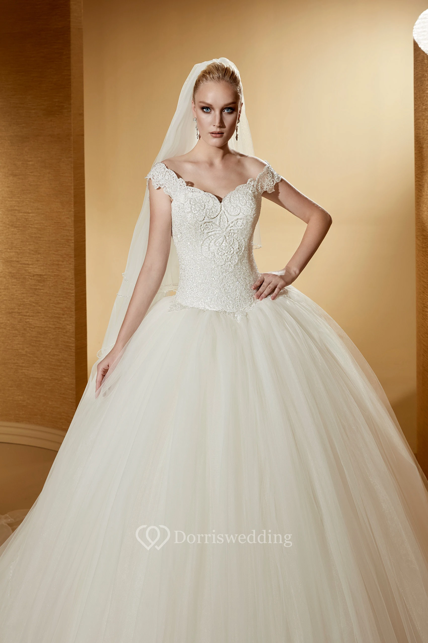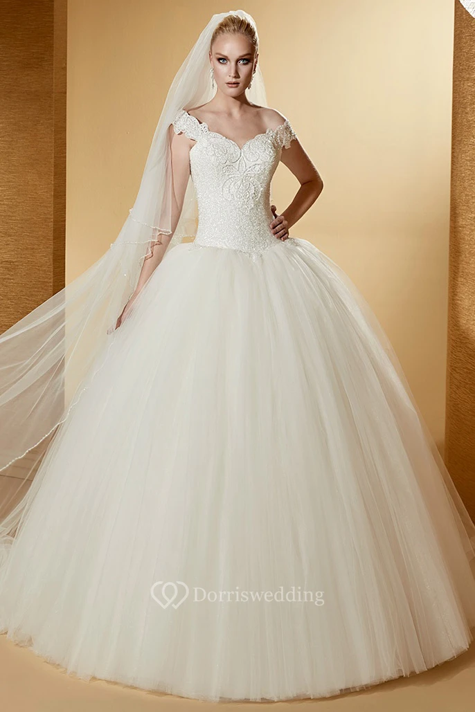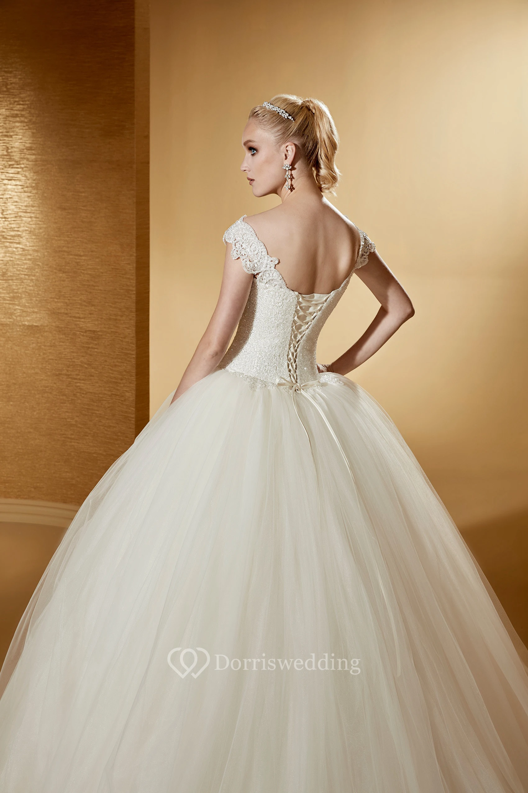Classic V-Neck Ball Gown With Cap Sleeves And Lace-Up Back