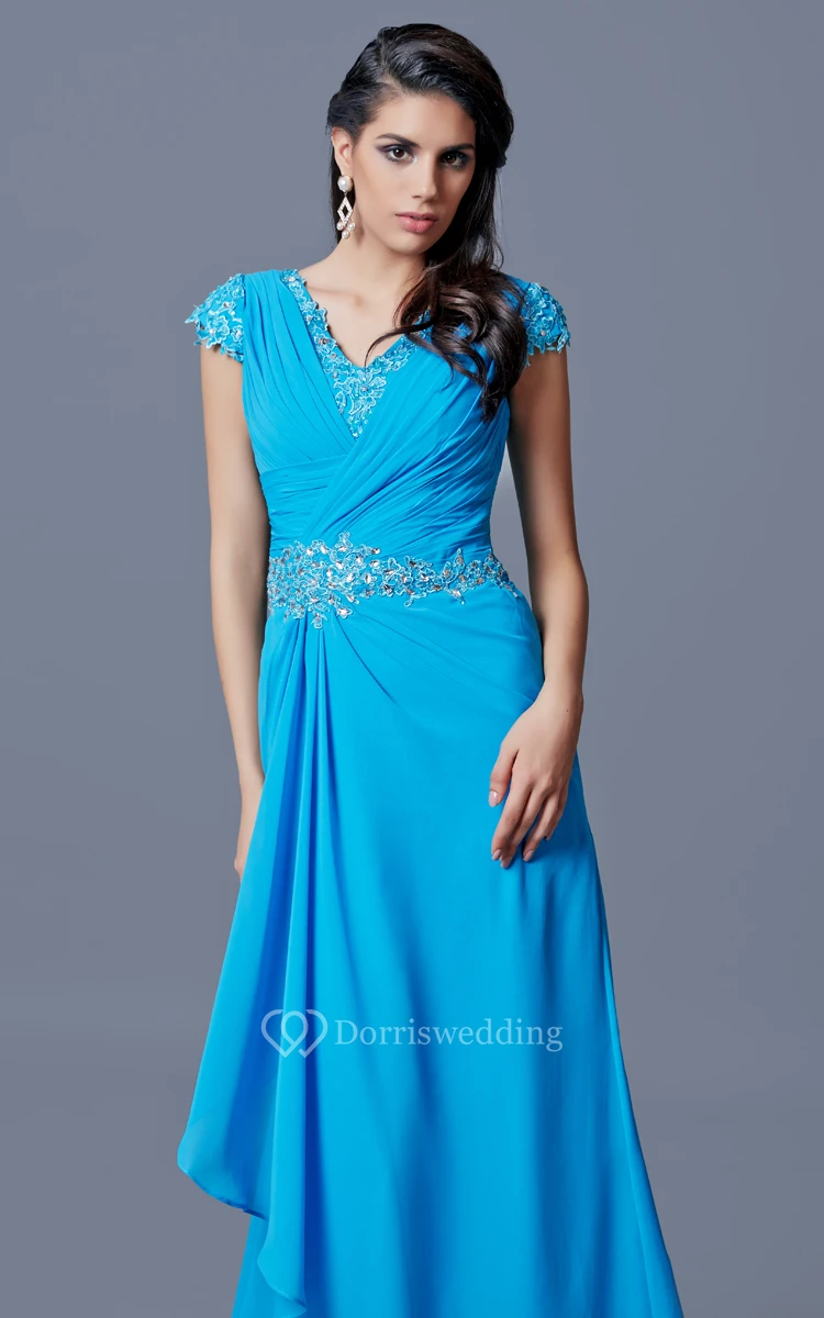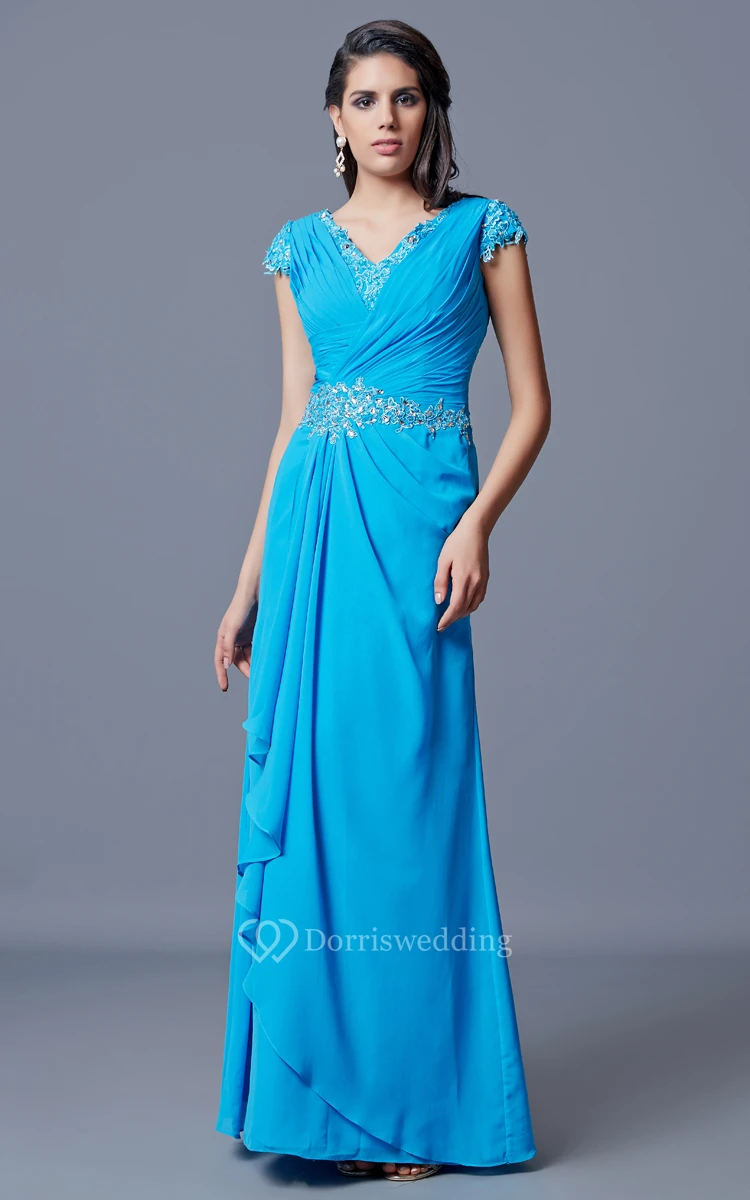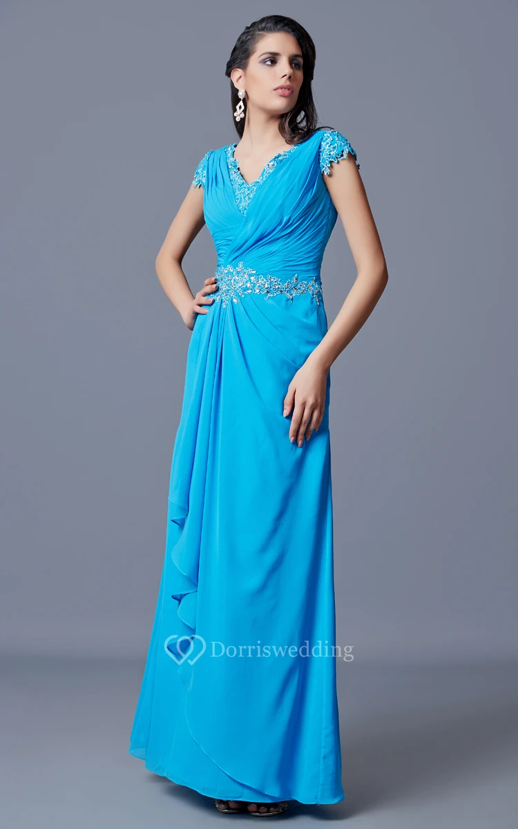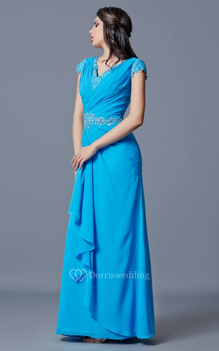 Classic V-neck Long Chiffon Dress With Low V-back