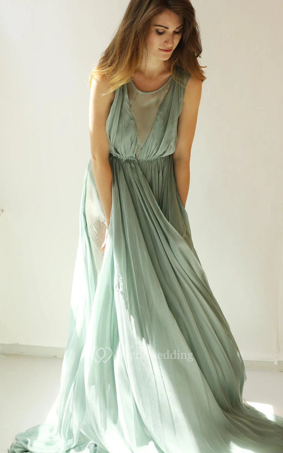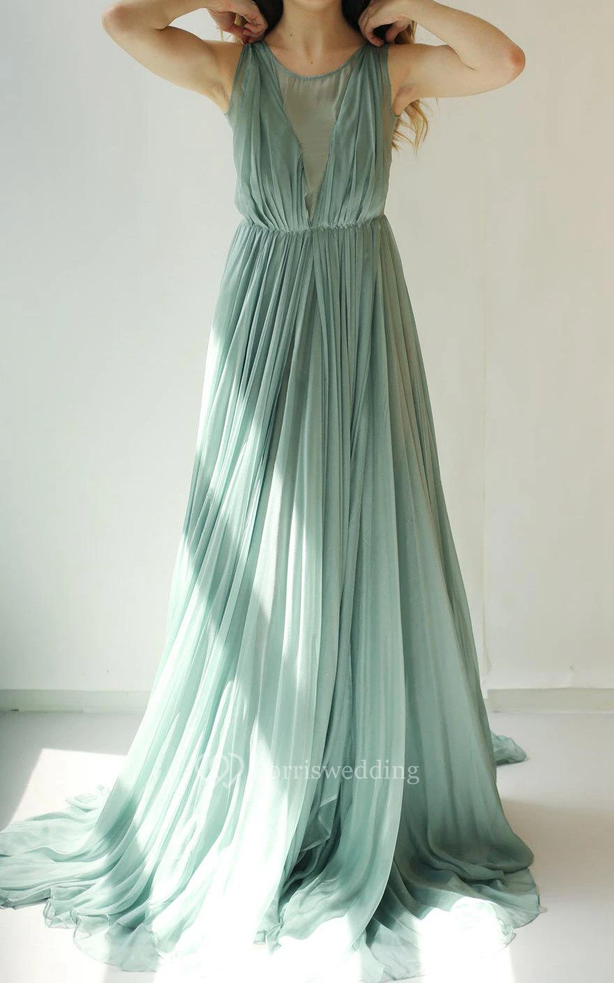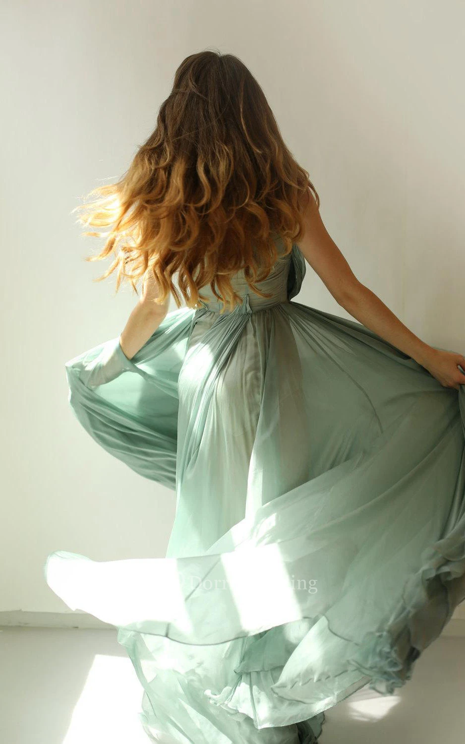 Colleen Long Muted Turquoise Green Chiffon Dress