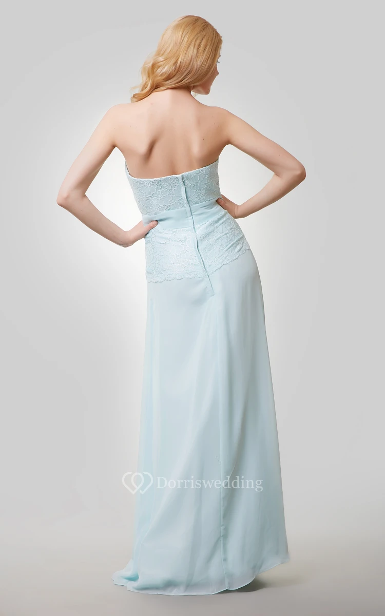 Column Chiffon Floor Length Sweetheart Dress With Lace Bodice