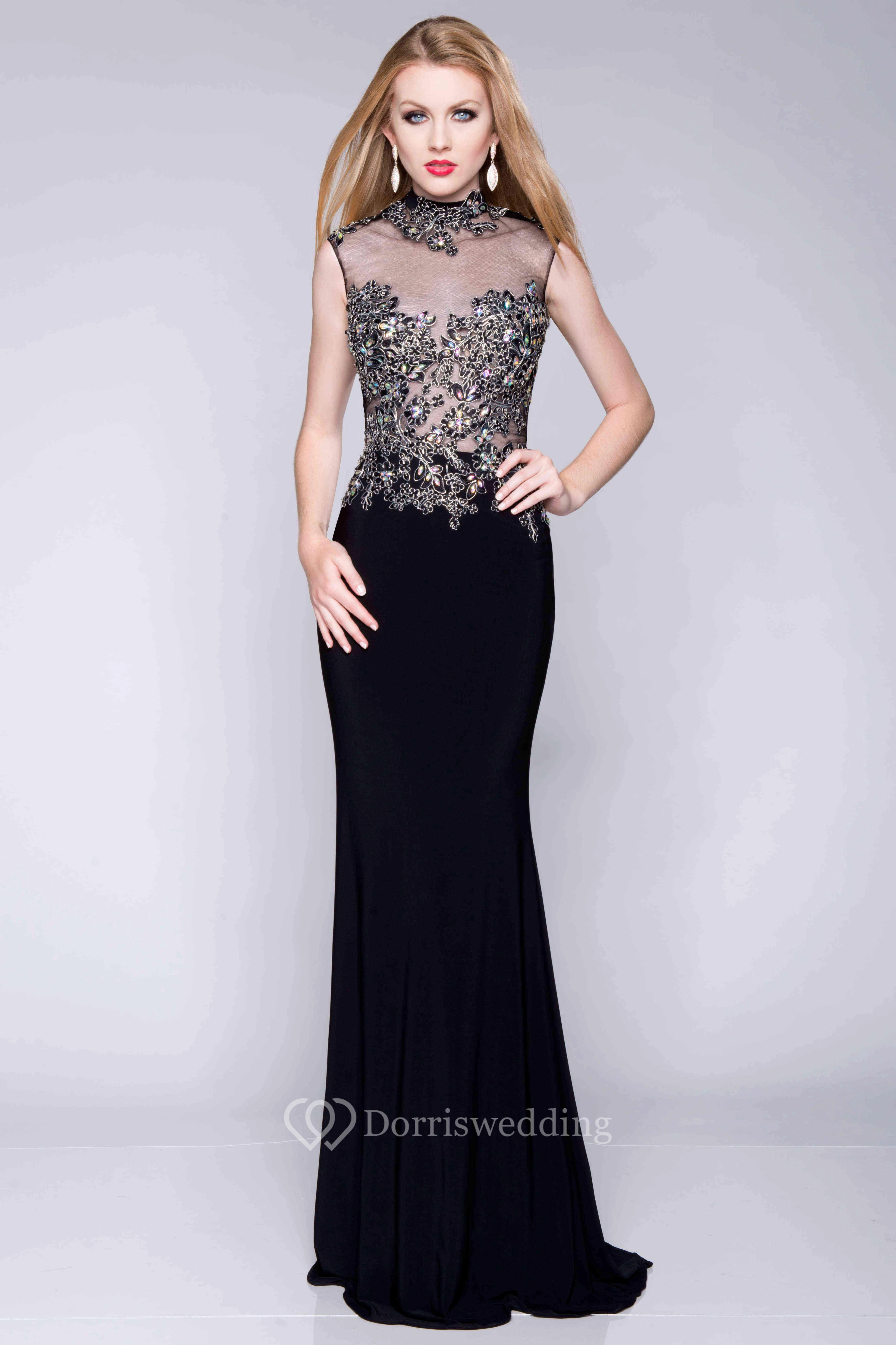 Column High Neck Sleeveless Jersey Prom Dress With Metallic Bodice