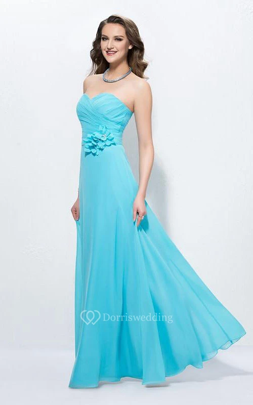 Comfortable Sweetheart Flowers Floor Length Zipper-up A-Line Prom Dress
