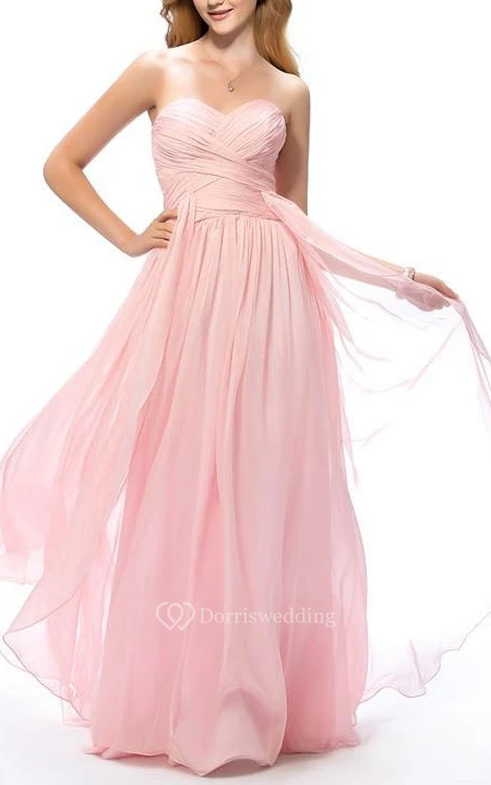 Concise A-Line Sweetheart Full Length Ruched Prom Dress