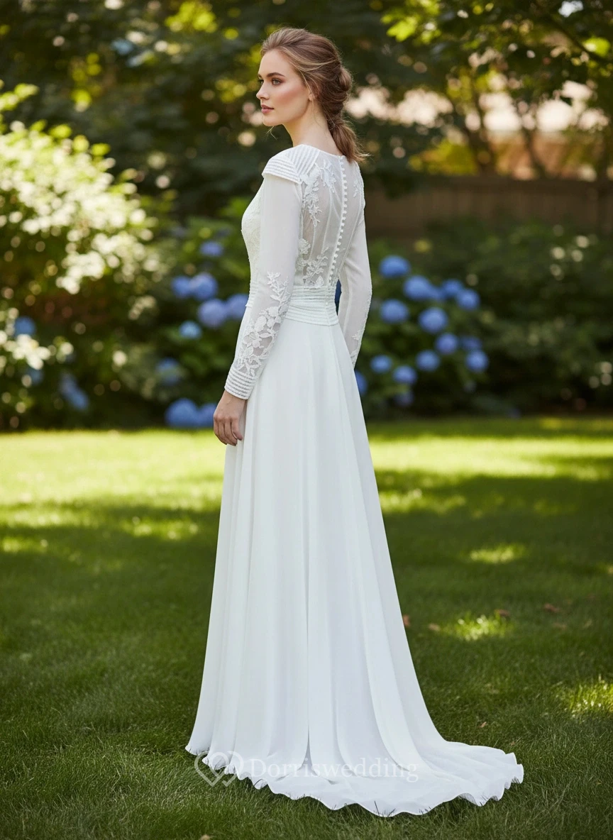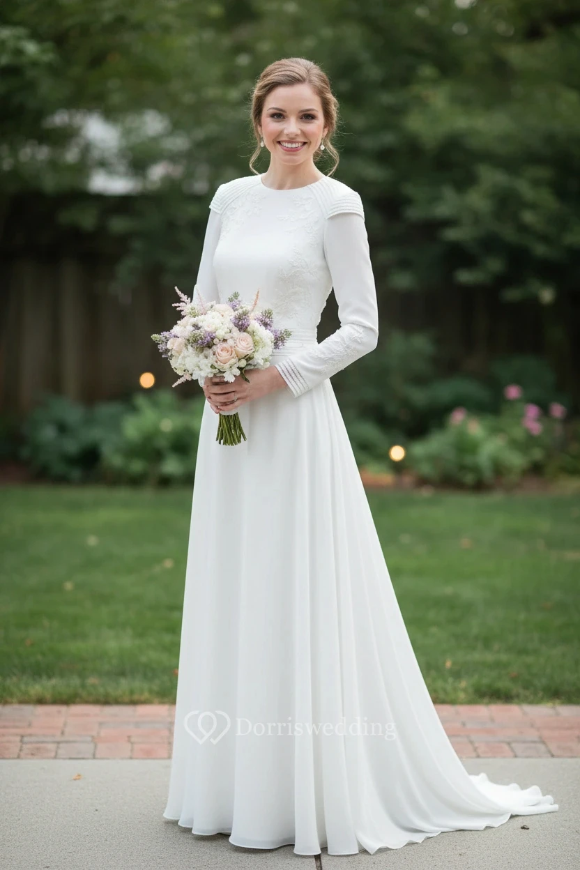 Conservative Chiffon Pleated Bridal Dress