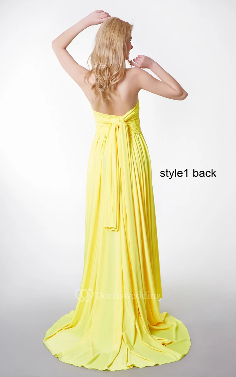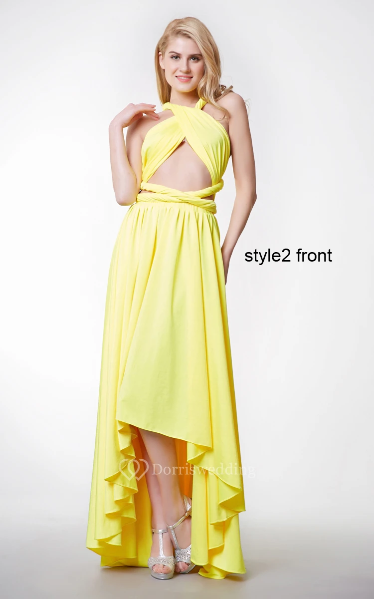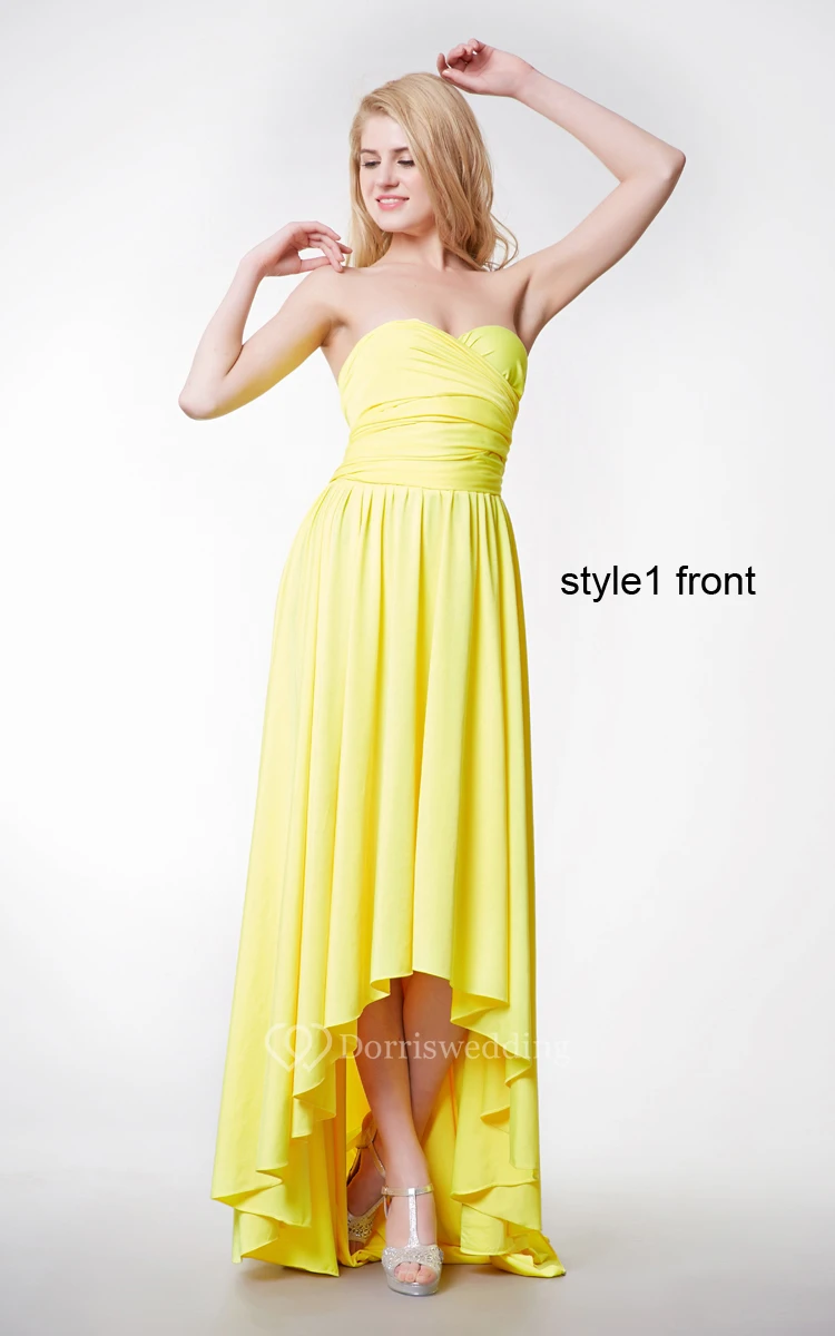 Convertible Sweetheart Neck Ruched High Low Jersey Dress With Ruffles