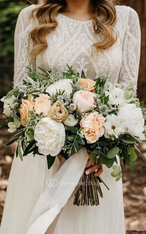 Le corsage est doté d'une délicate doublure en tulle pour un look léger et aérien. Pour une couverture plus complète, sélectionnez simplement l'option « Look Modeste » lors du paiement et mentionnez « Doublure en satin pour le corsage » dans vos commentaires de commande. Nous veillerons à ce qu'il soit parfaitement adapté à vos préférences!