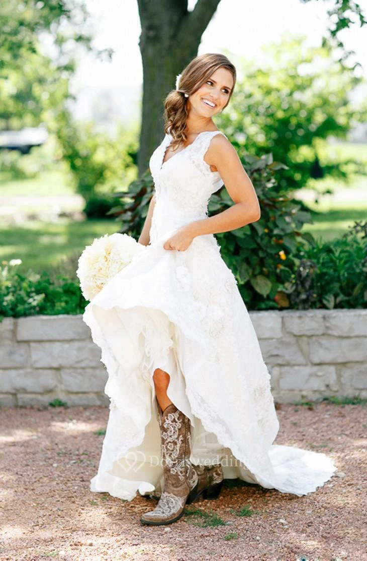 Arrived very quickly. It is beautifully made and perfect for my country wedding. I am so lucky to find this dress here. Thank you very much!