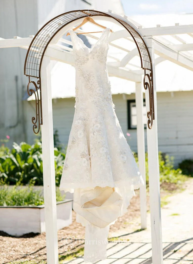 Lovely white lace and appliques. It will be definitely perfect for my wedding! It fits me nicely while it will probably have to alter a little to make it perfect for me!