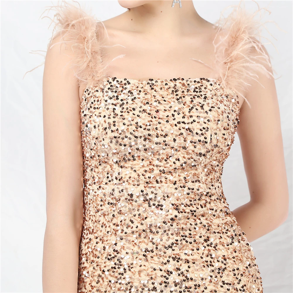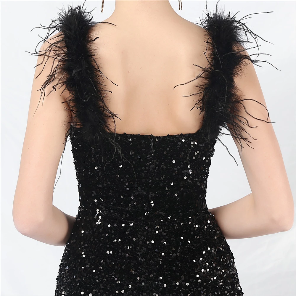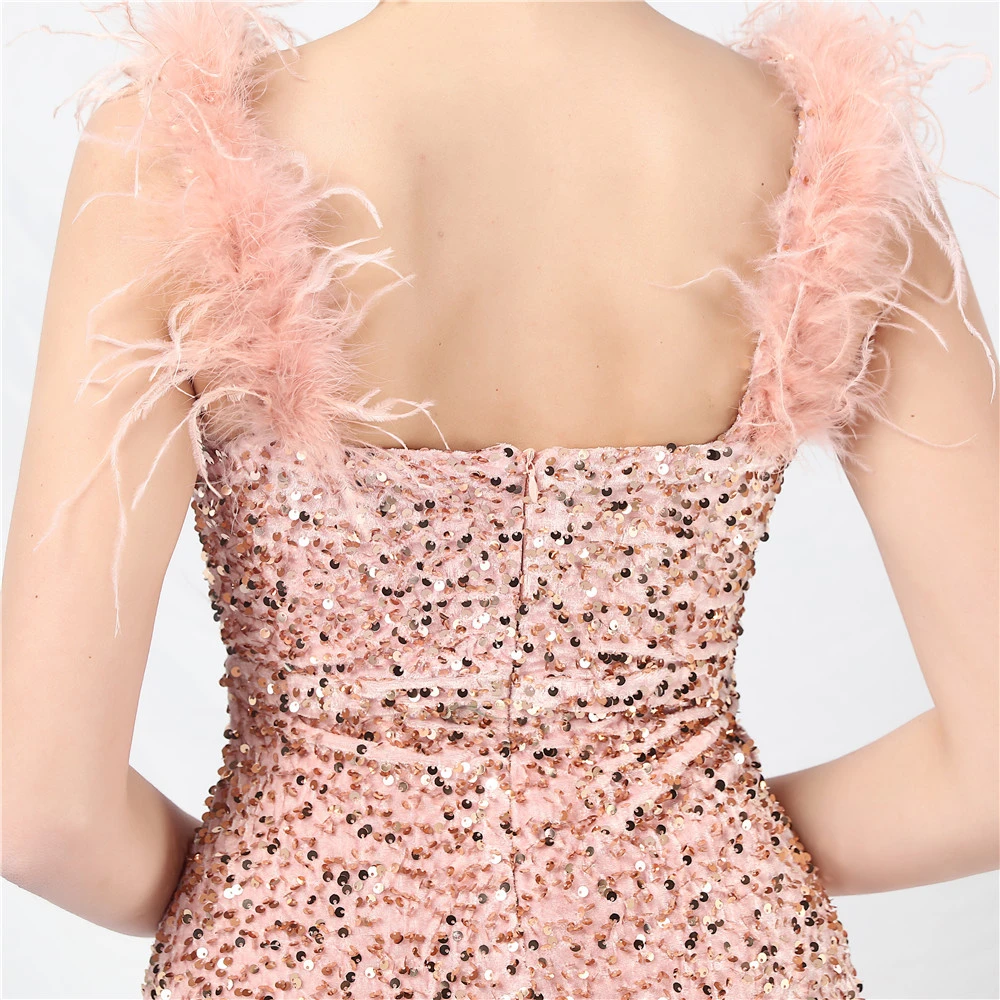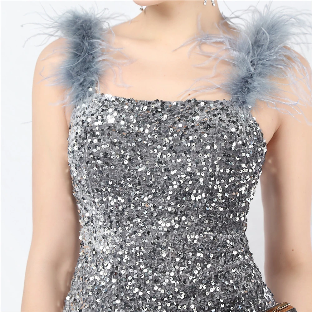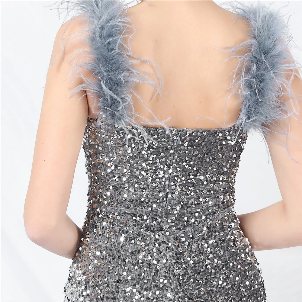 Craft Beaded Ostrich Feather Sequined Evening Dress