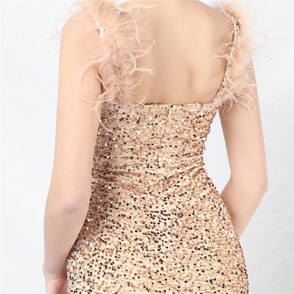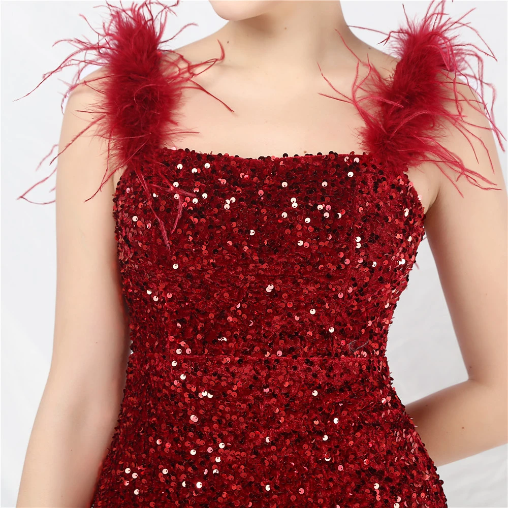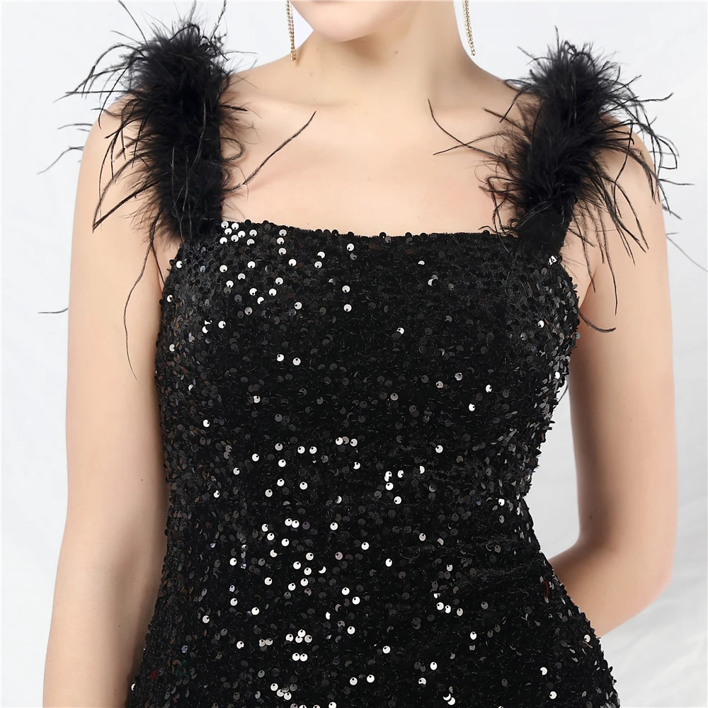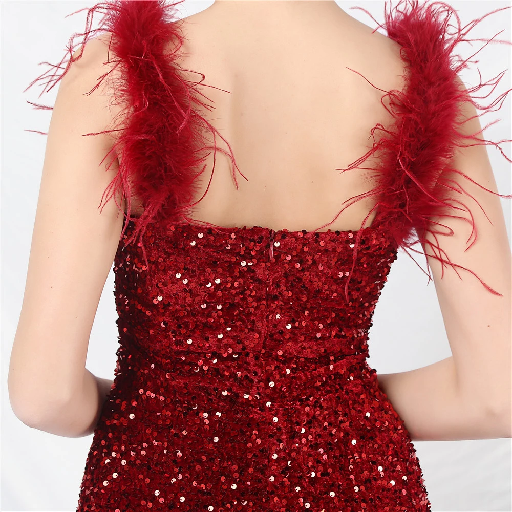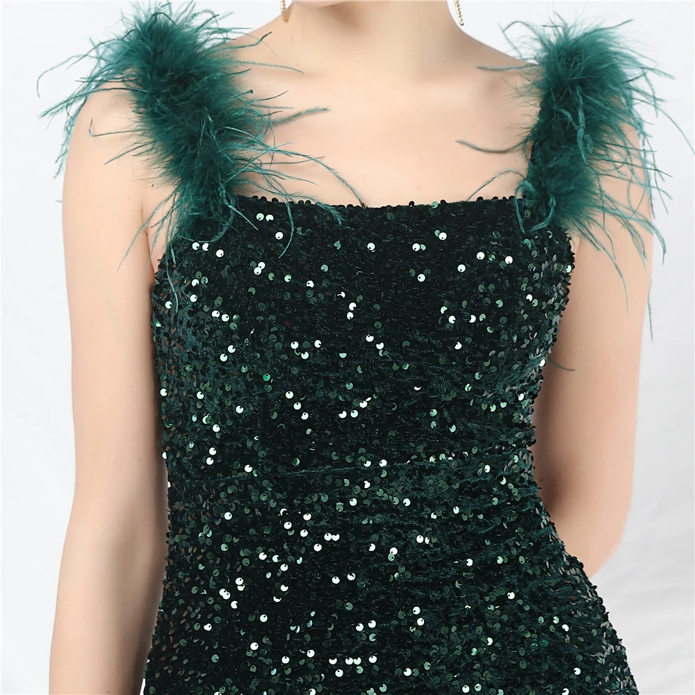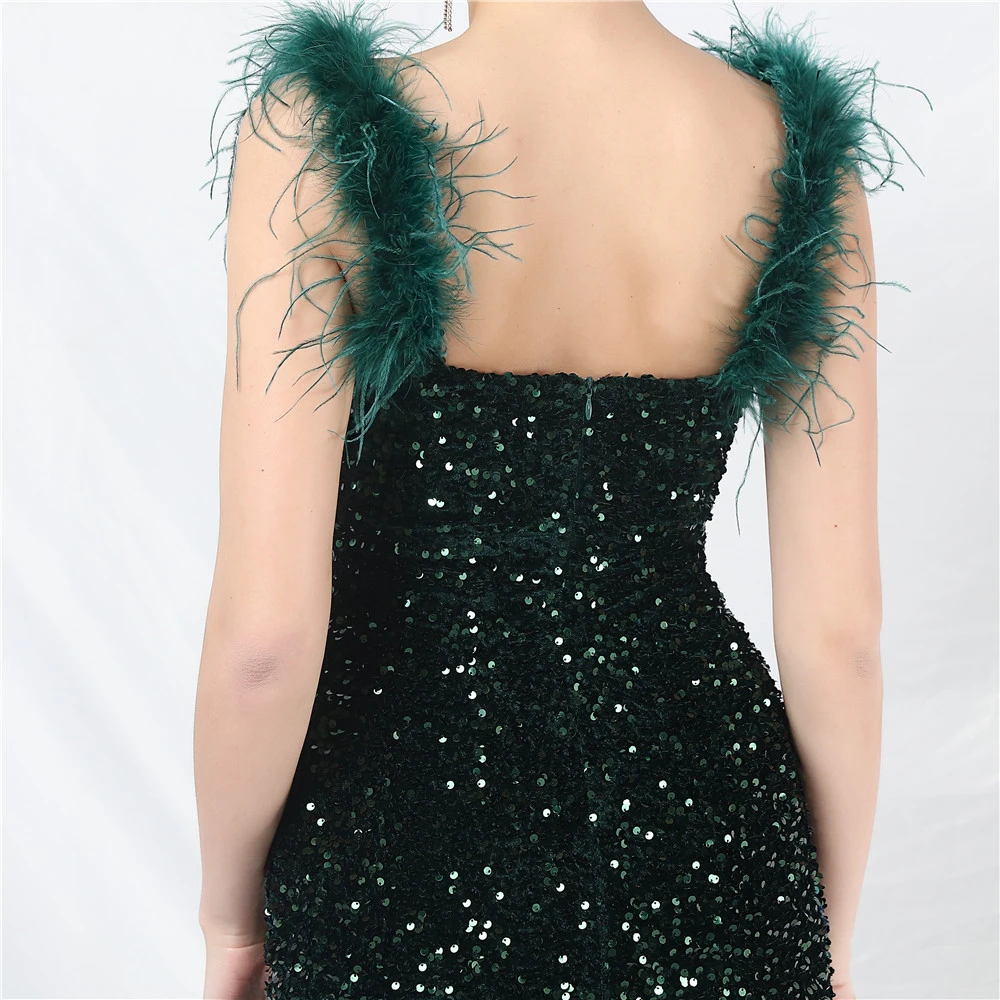 Craft Beaded Ostrich Feather Sequined Evening Dress