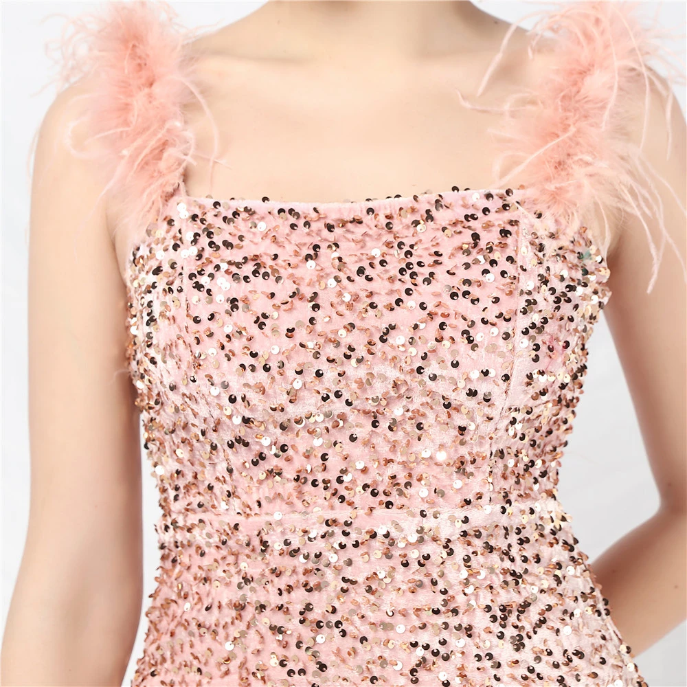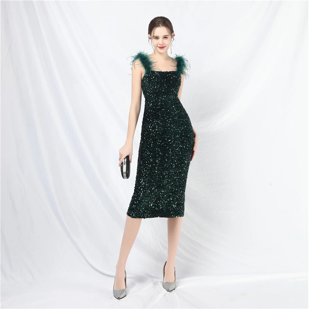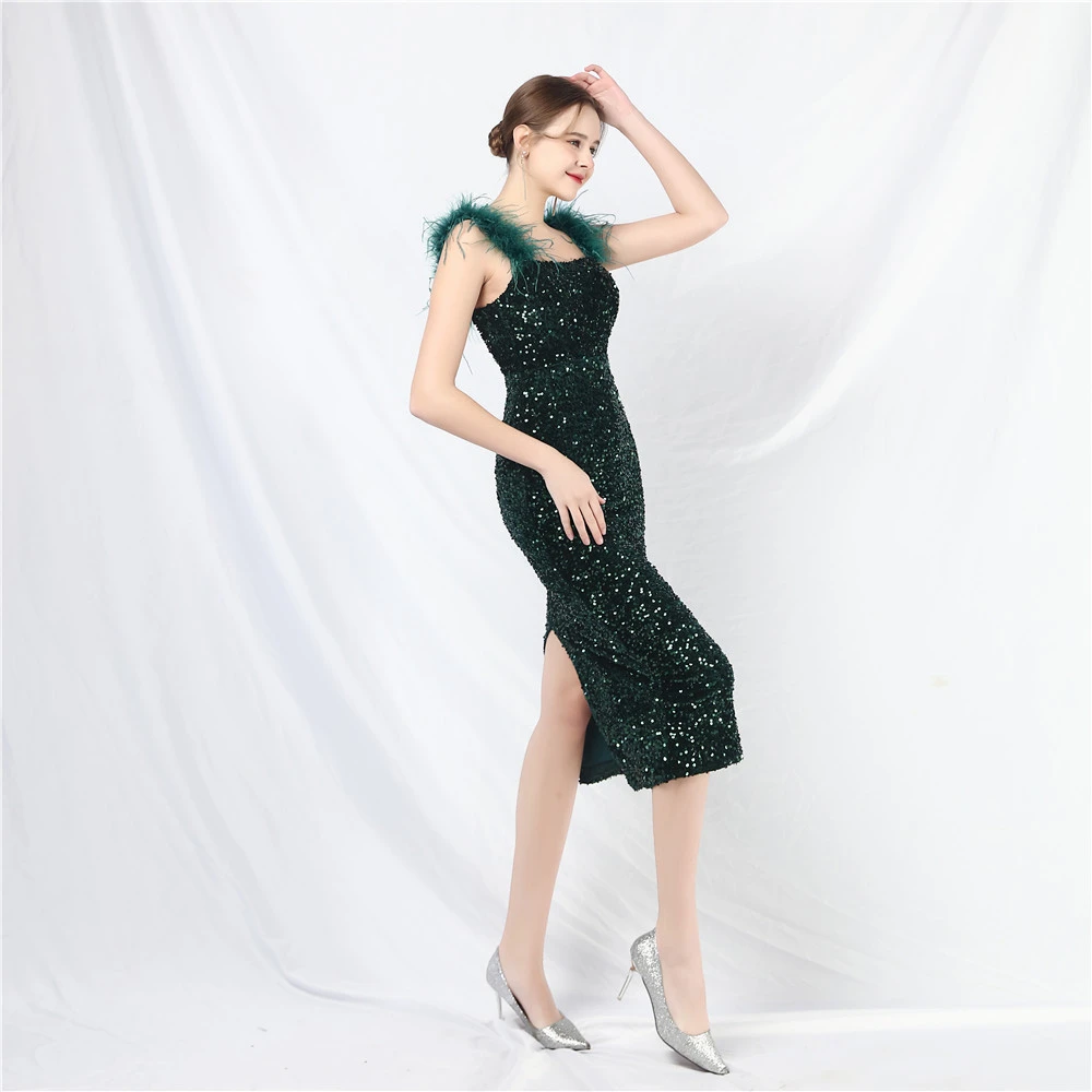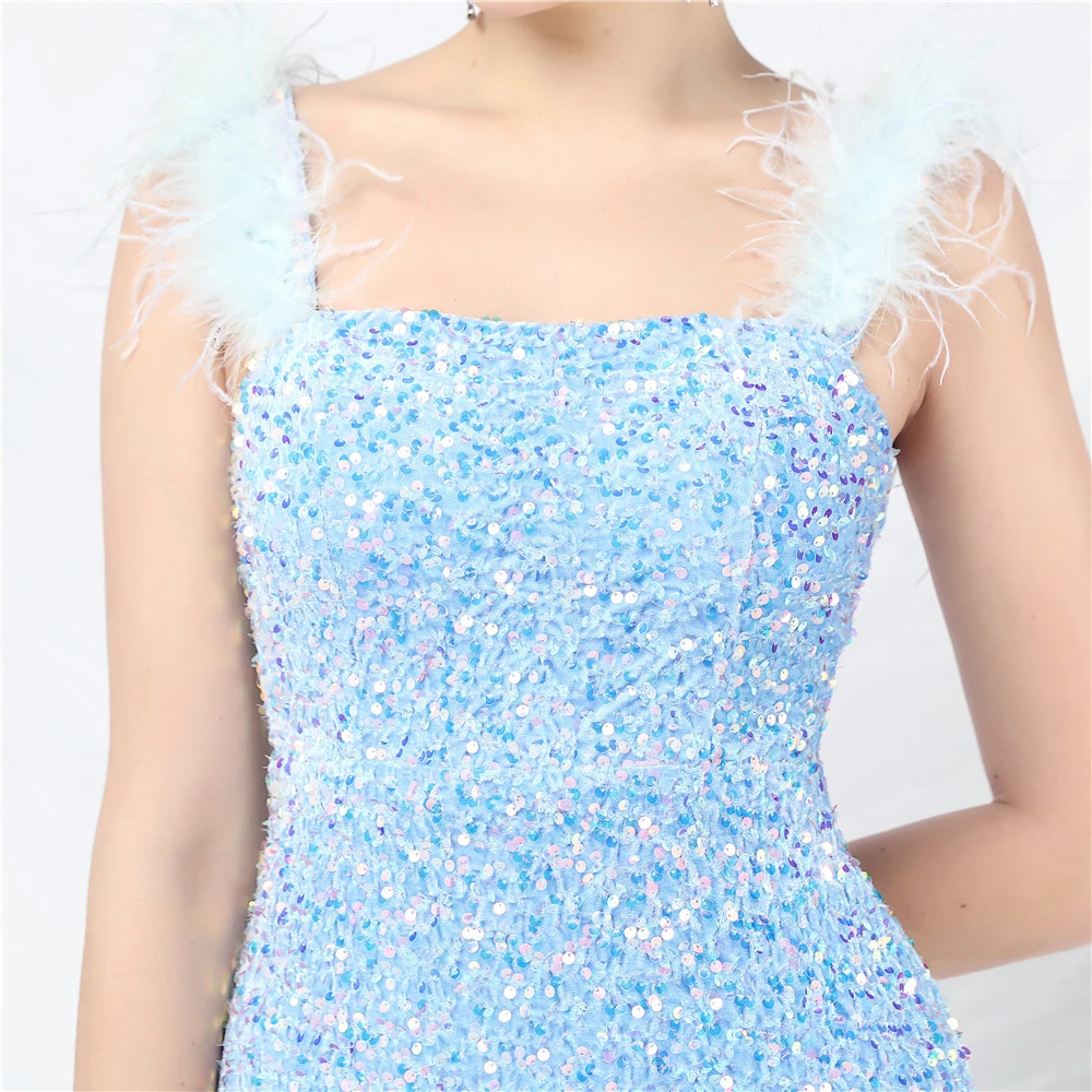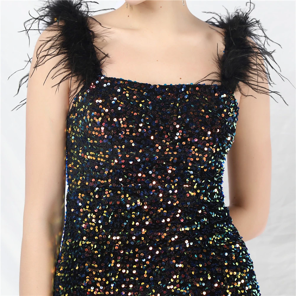 Craft Beaded Ostrich Feather Sequined Evening Dress
