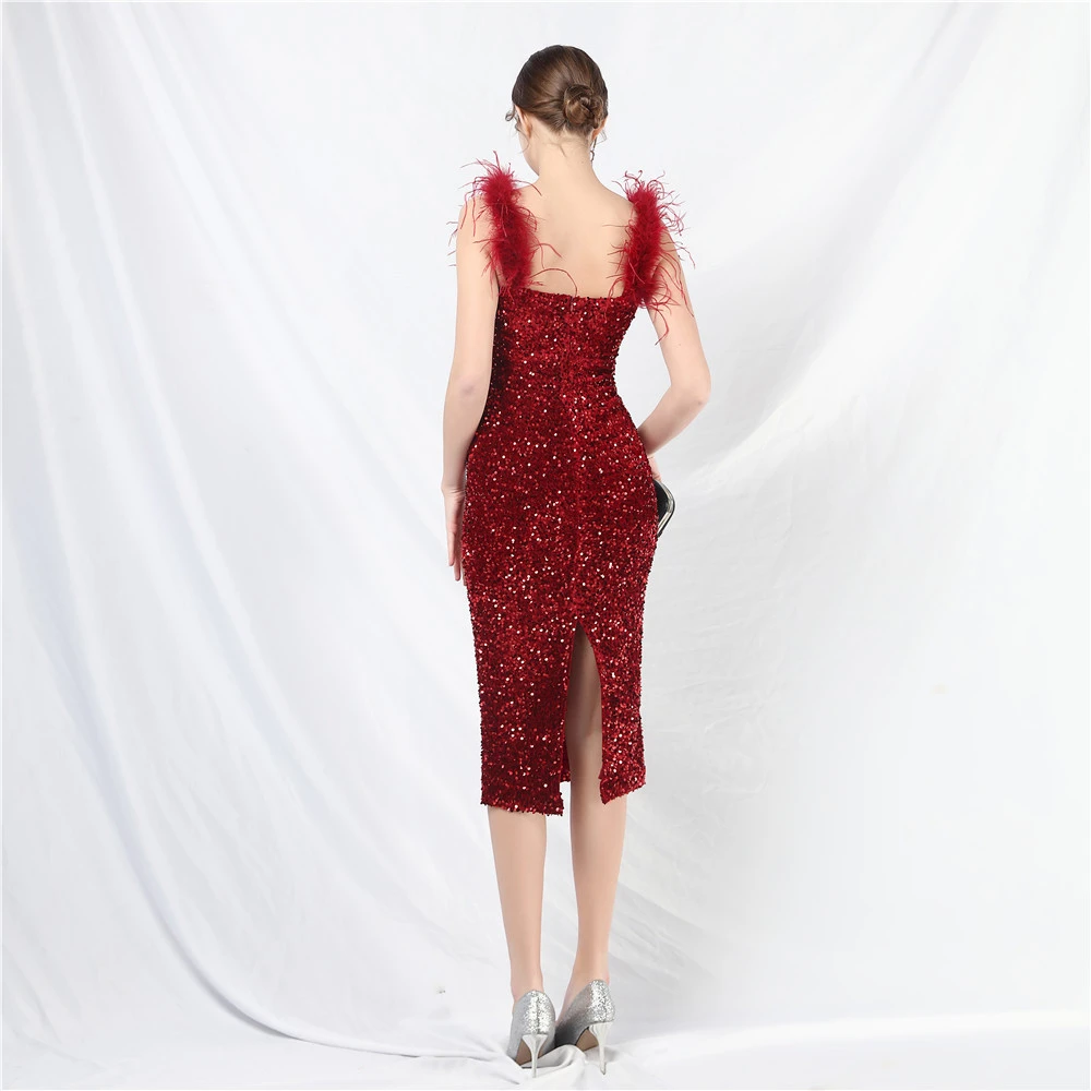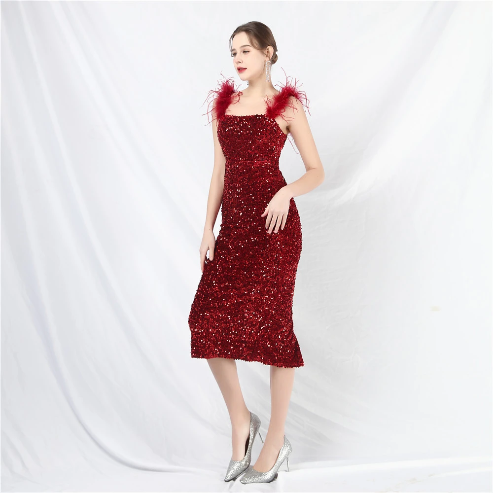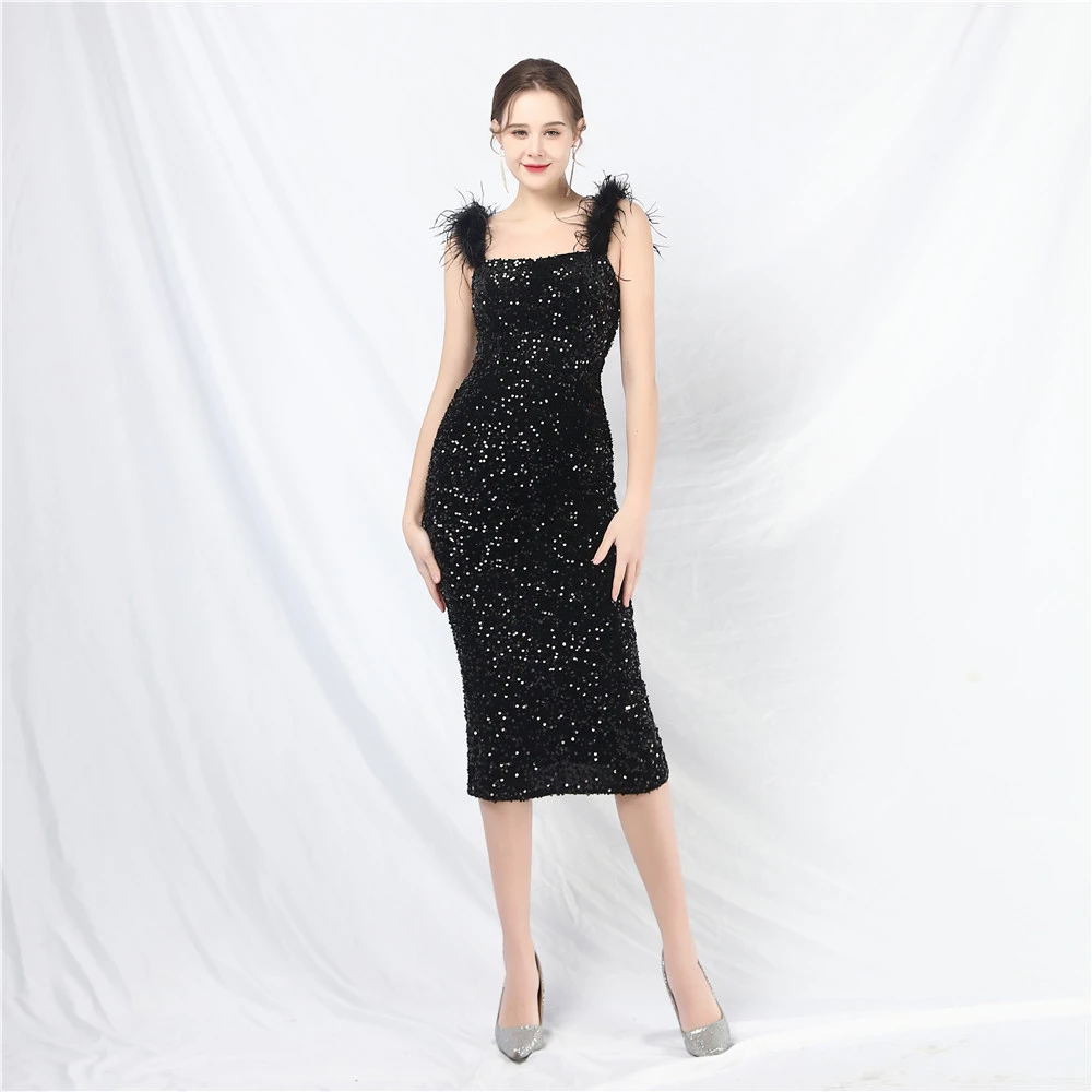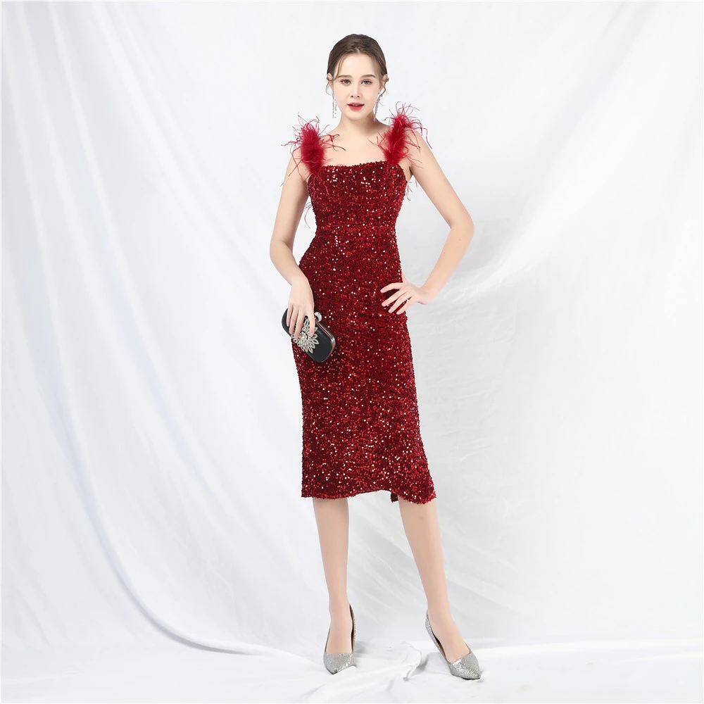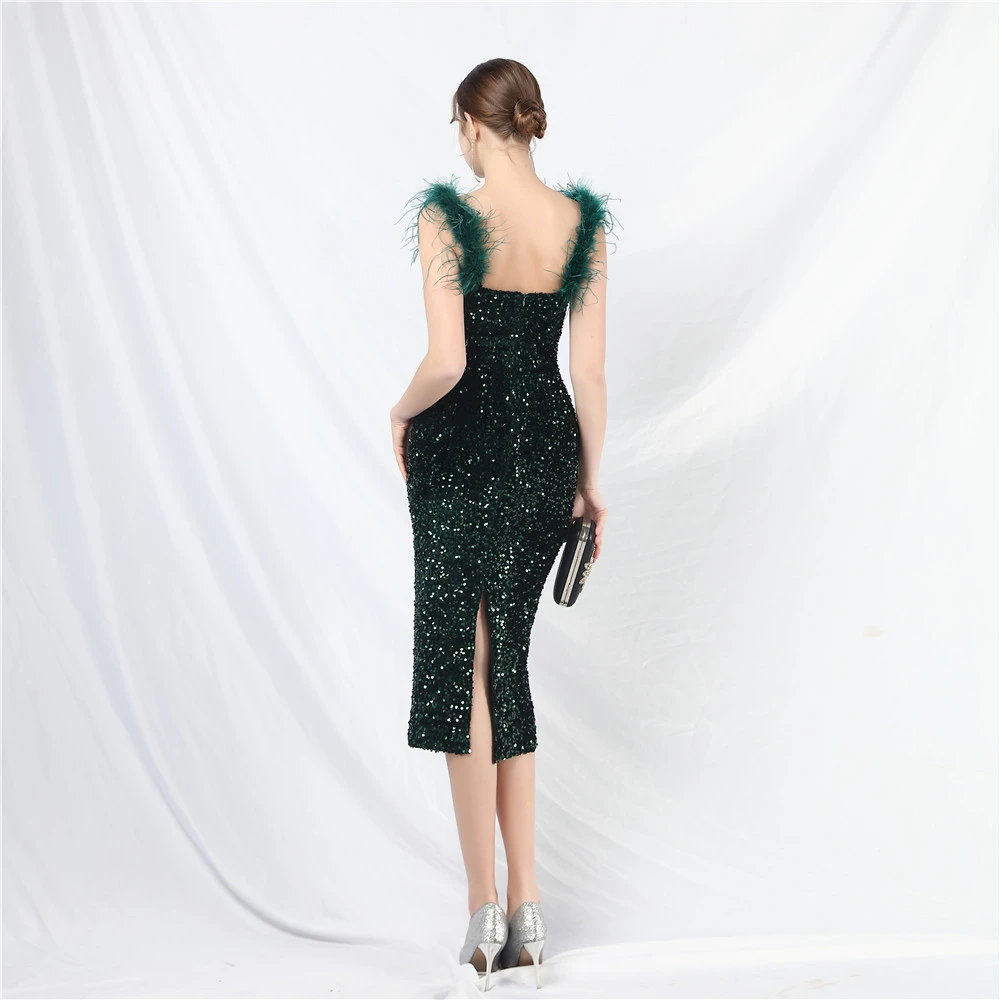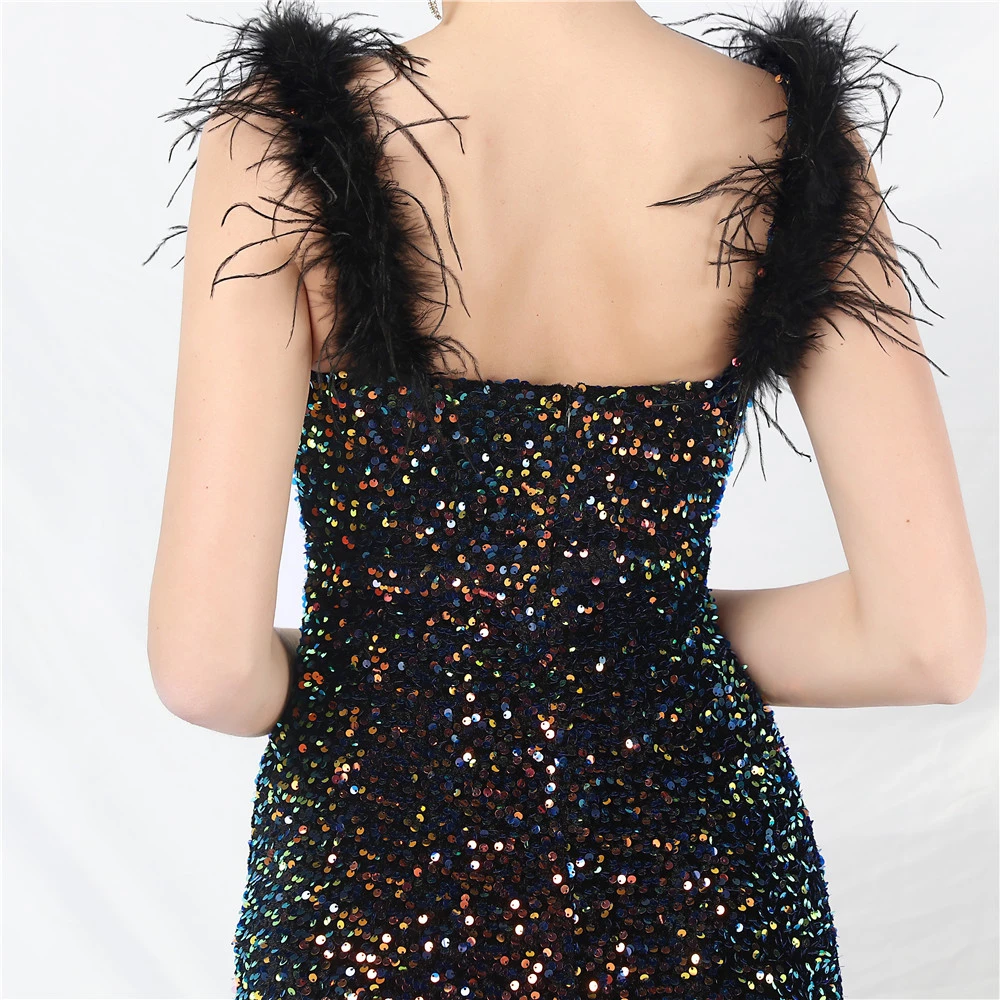 Craft Beaded Ostrich Feather Sequined Evening Dress