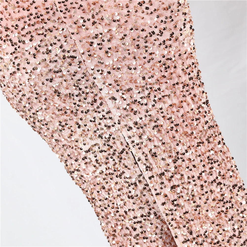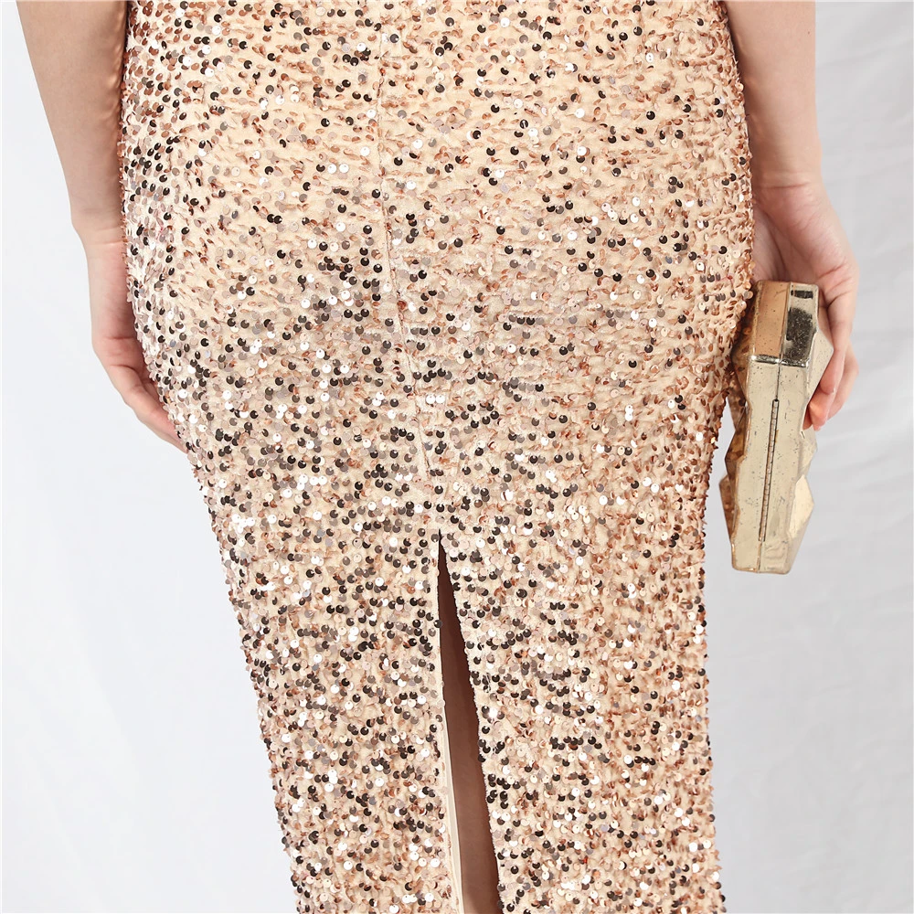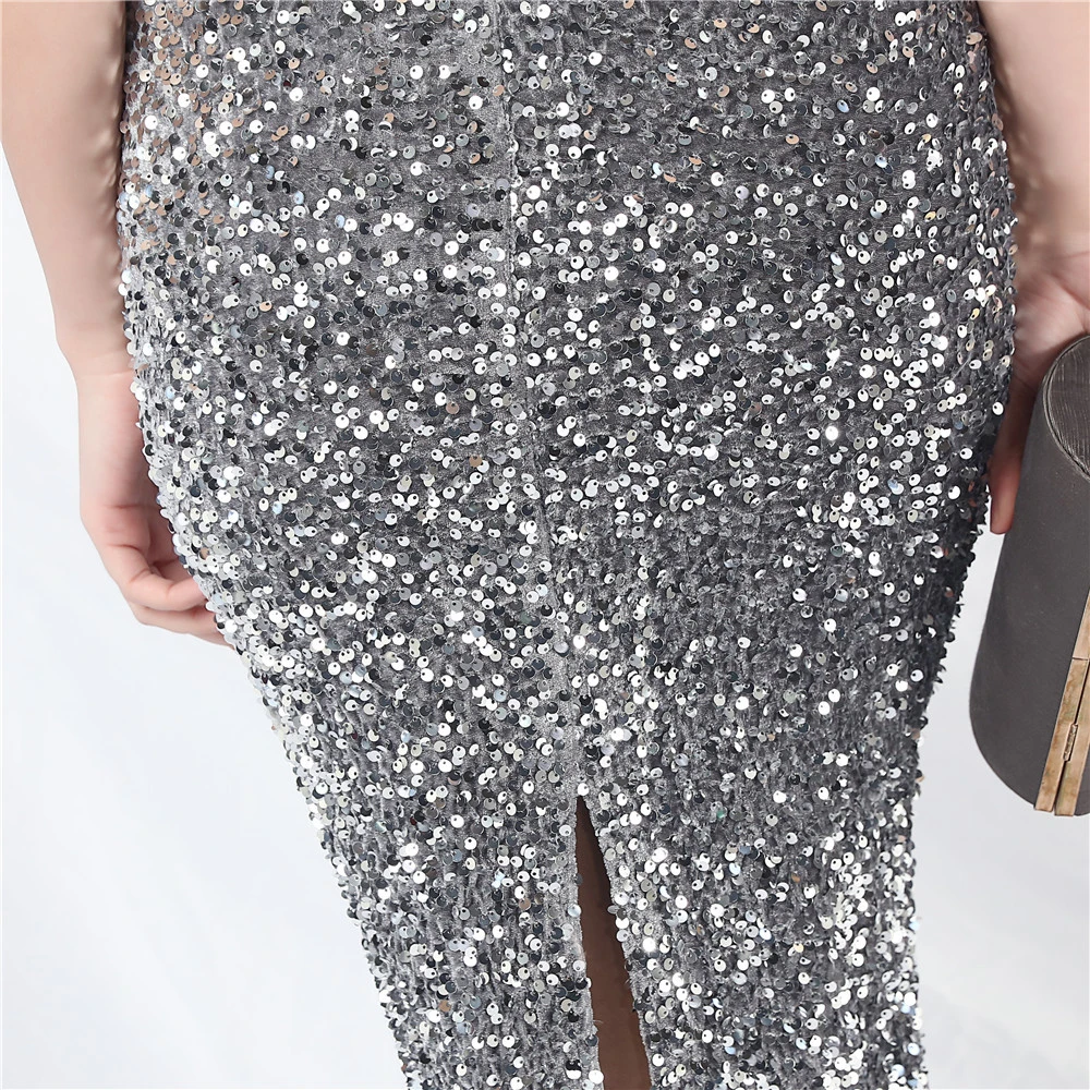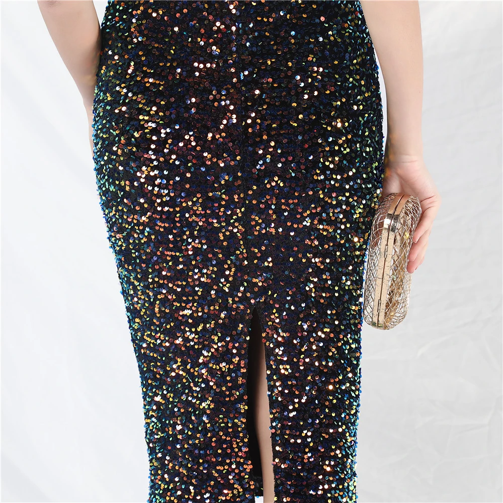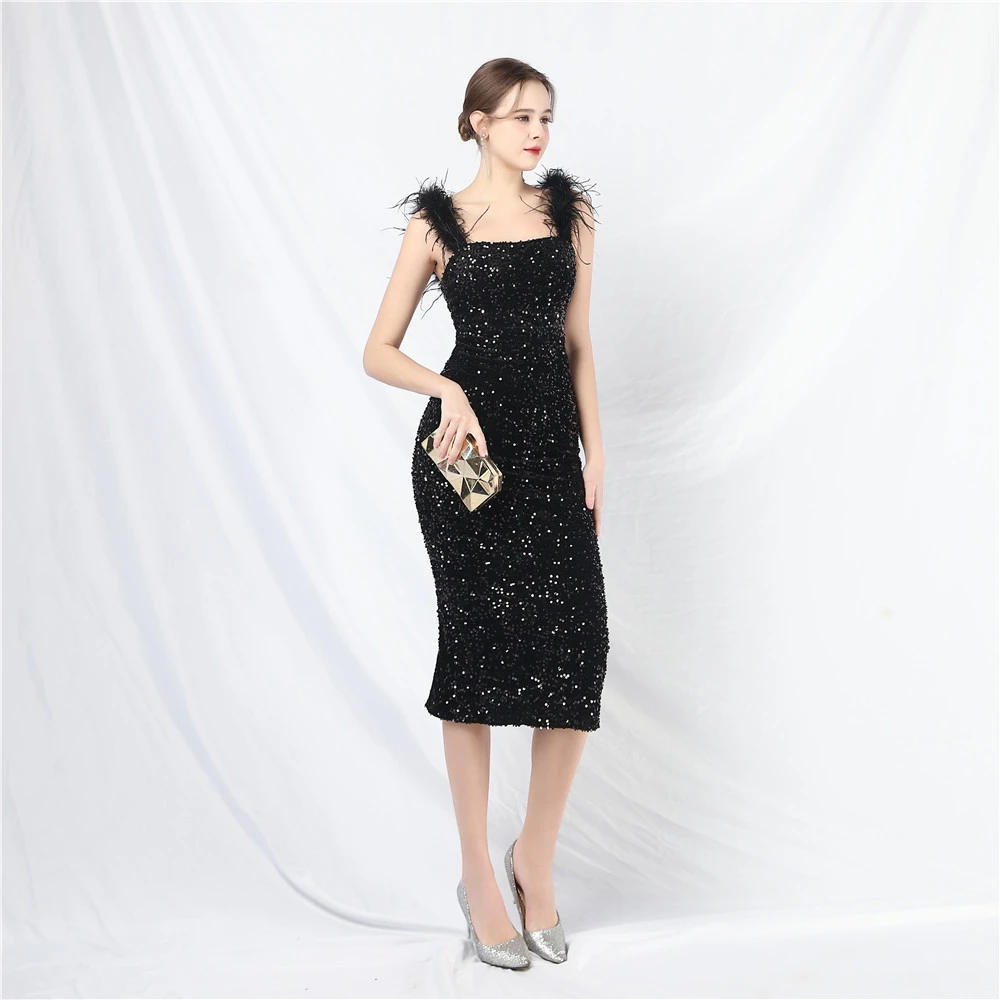 Craft Beaded Ostrich Feather Sequined Evening Dress