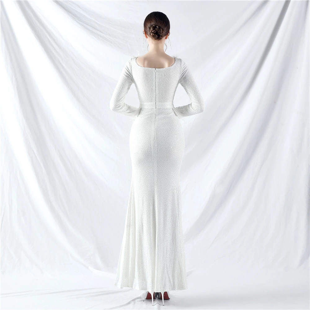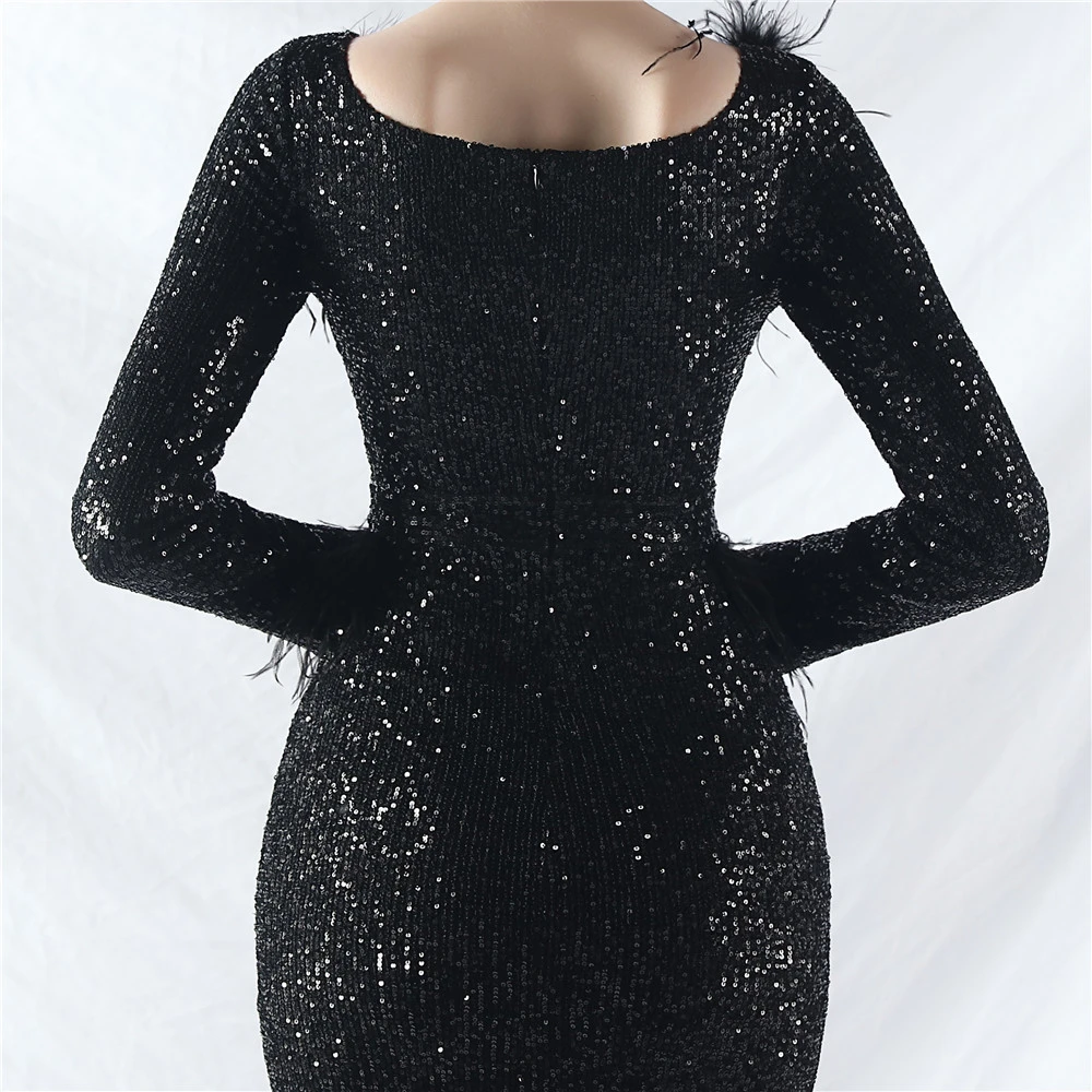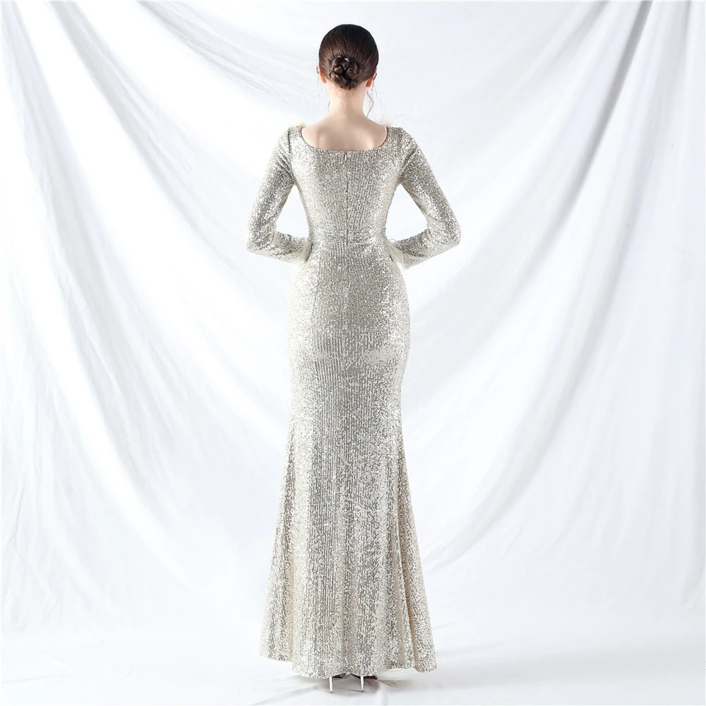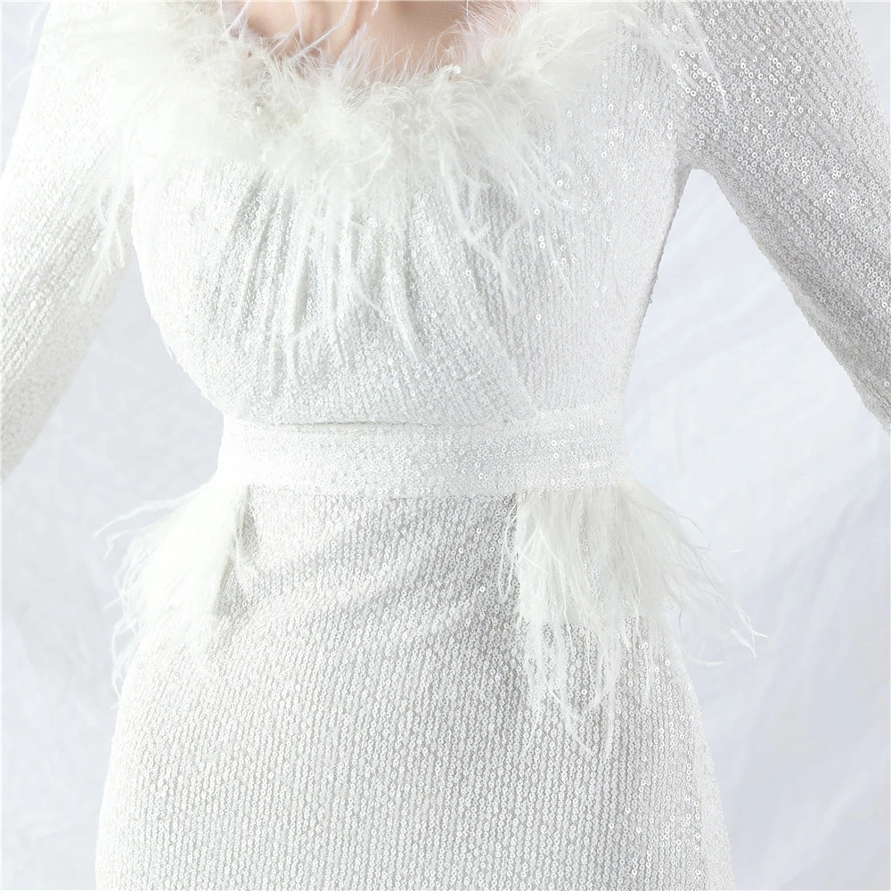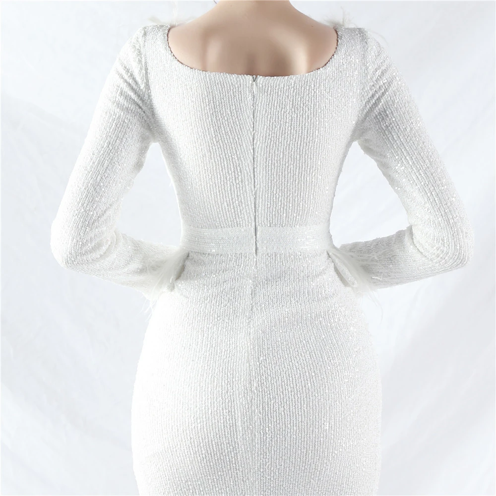 Craft-Made Ostrich Feather Long-Sleeved Beads Evening Dress