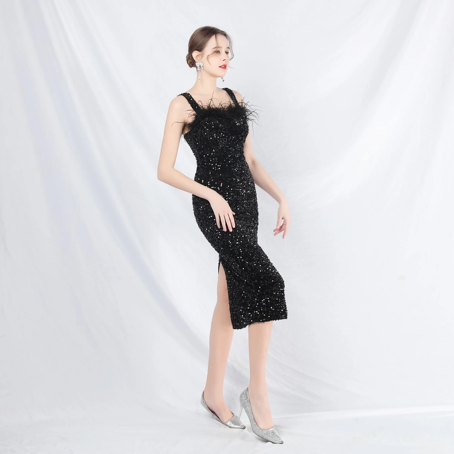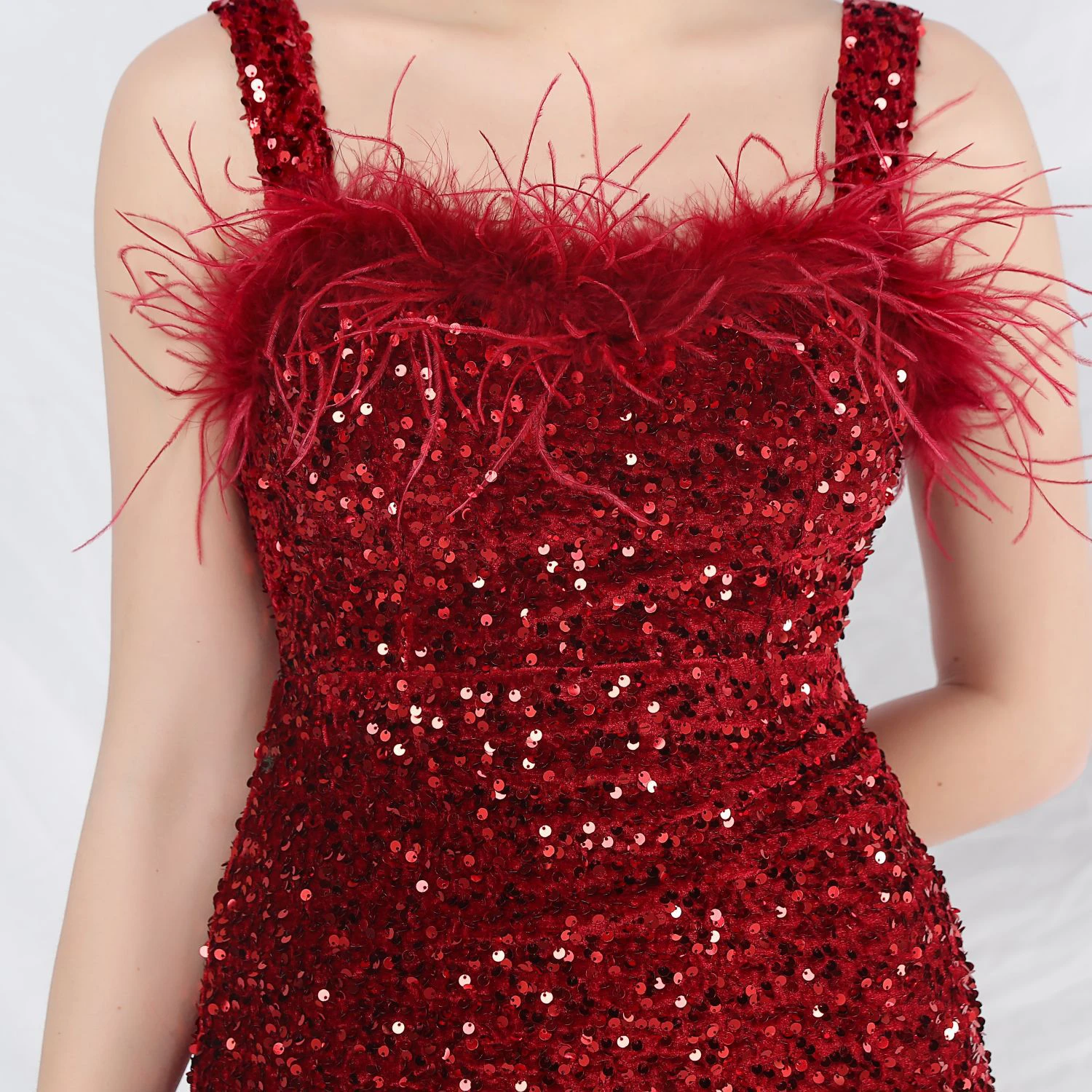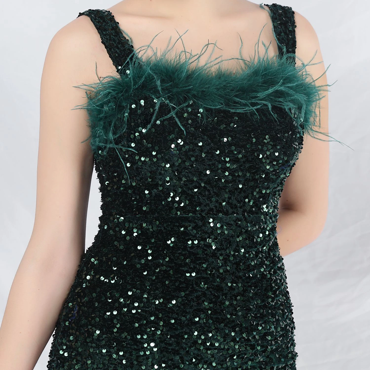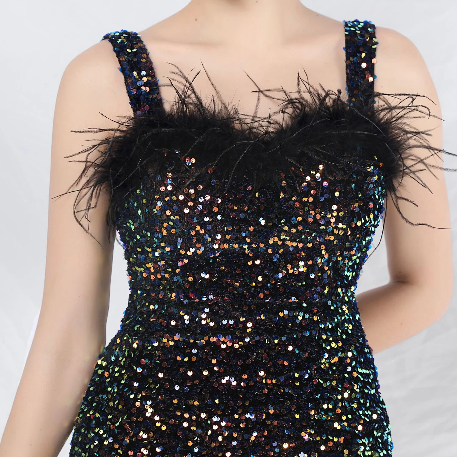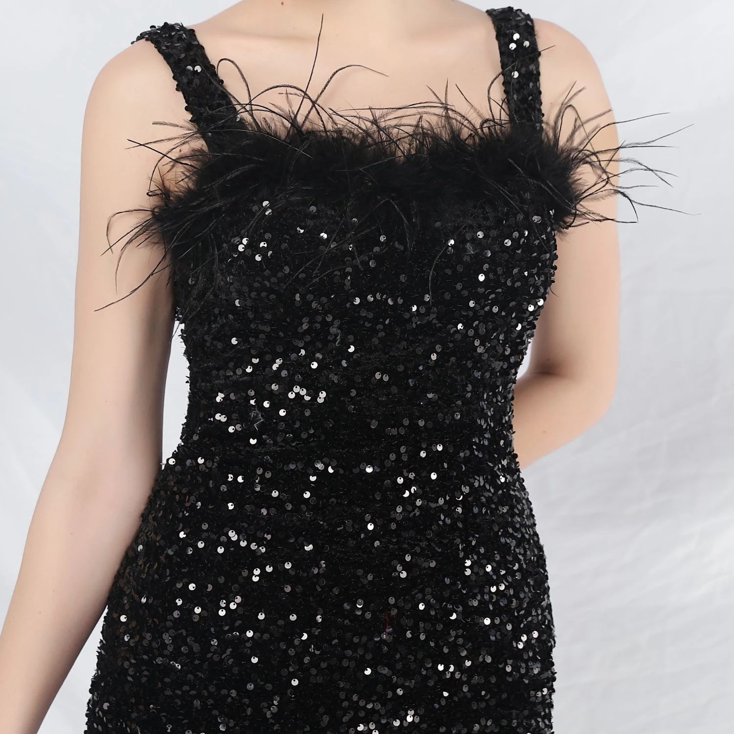 Craft Ostrich Feather Velvet Sequined Evening Dress