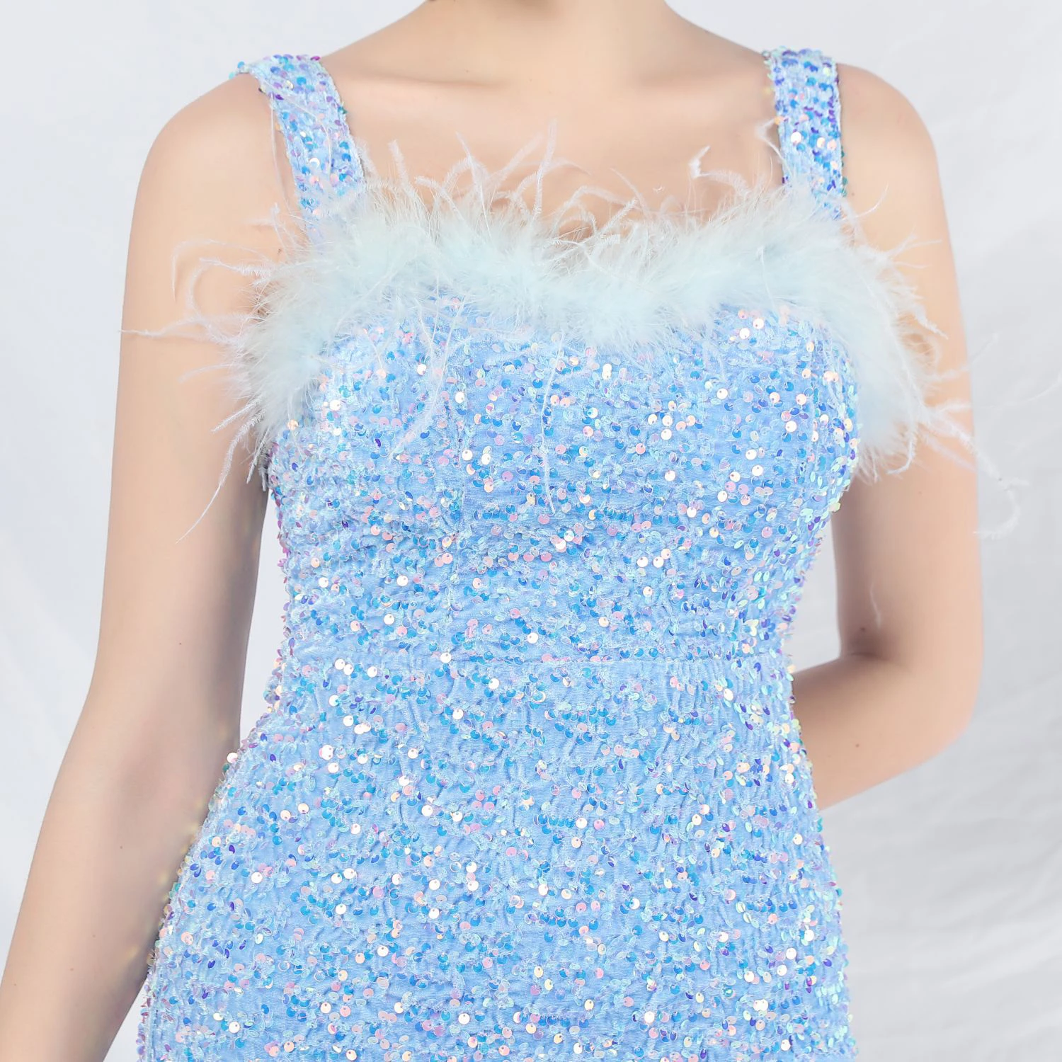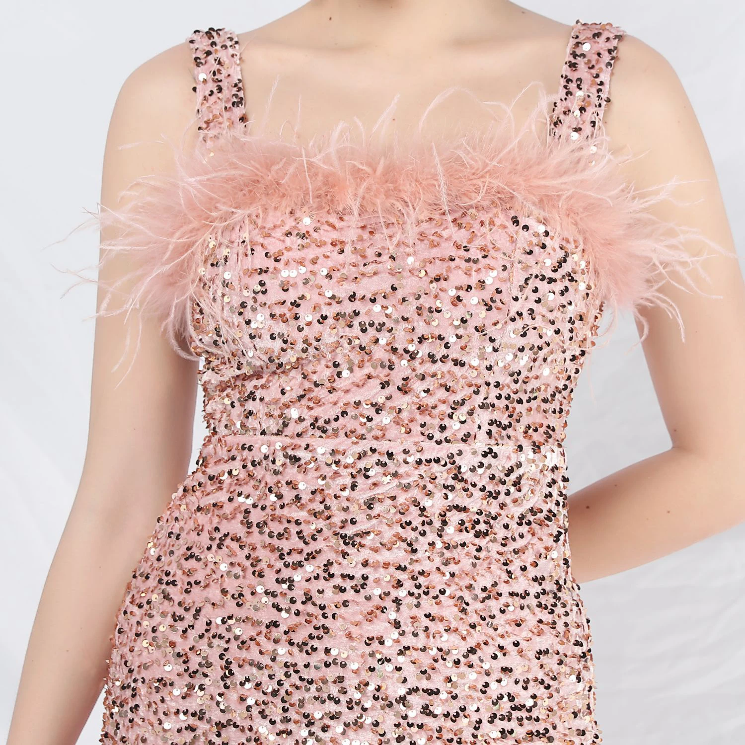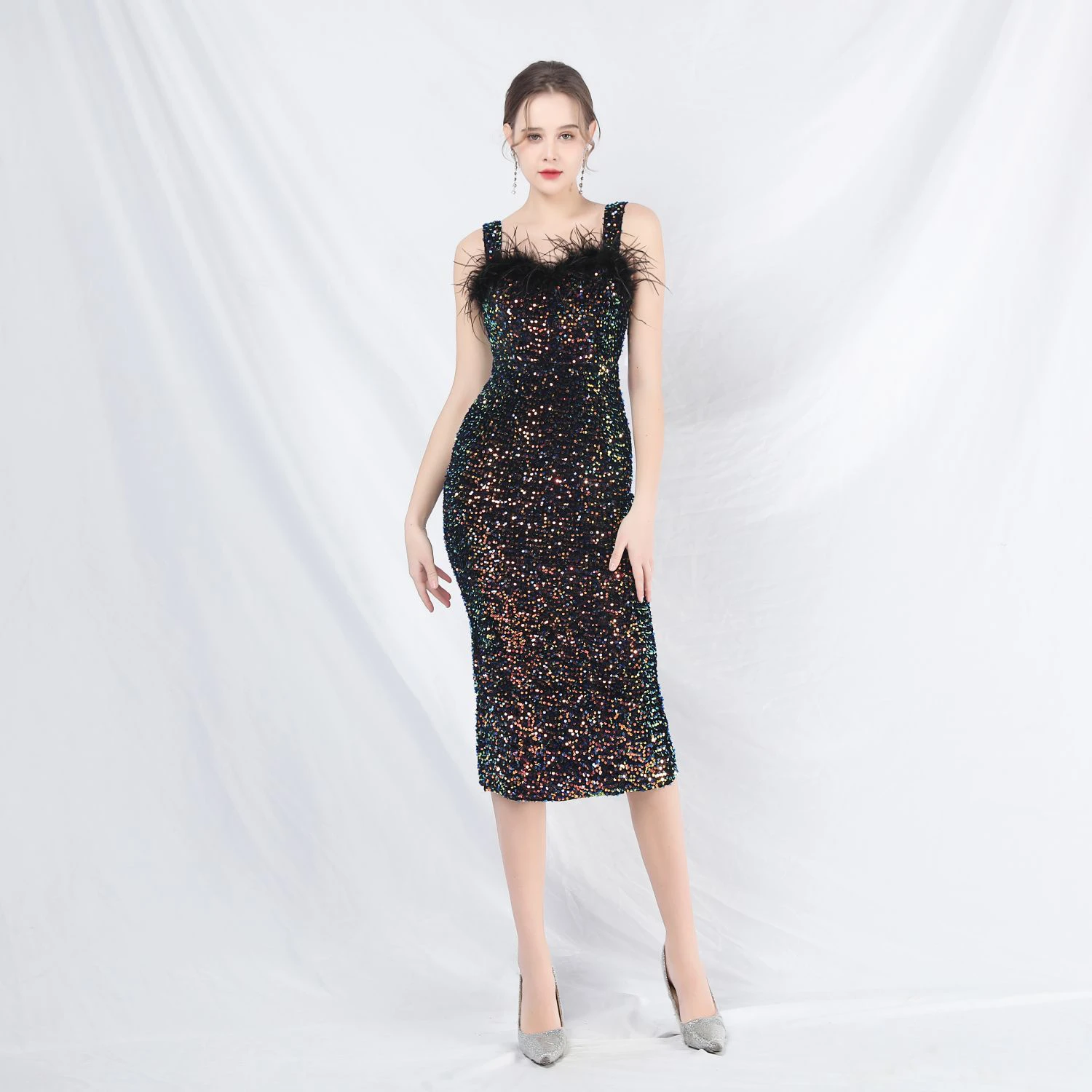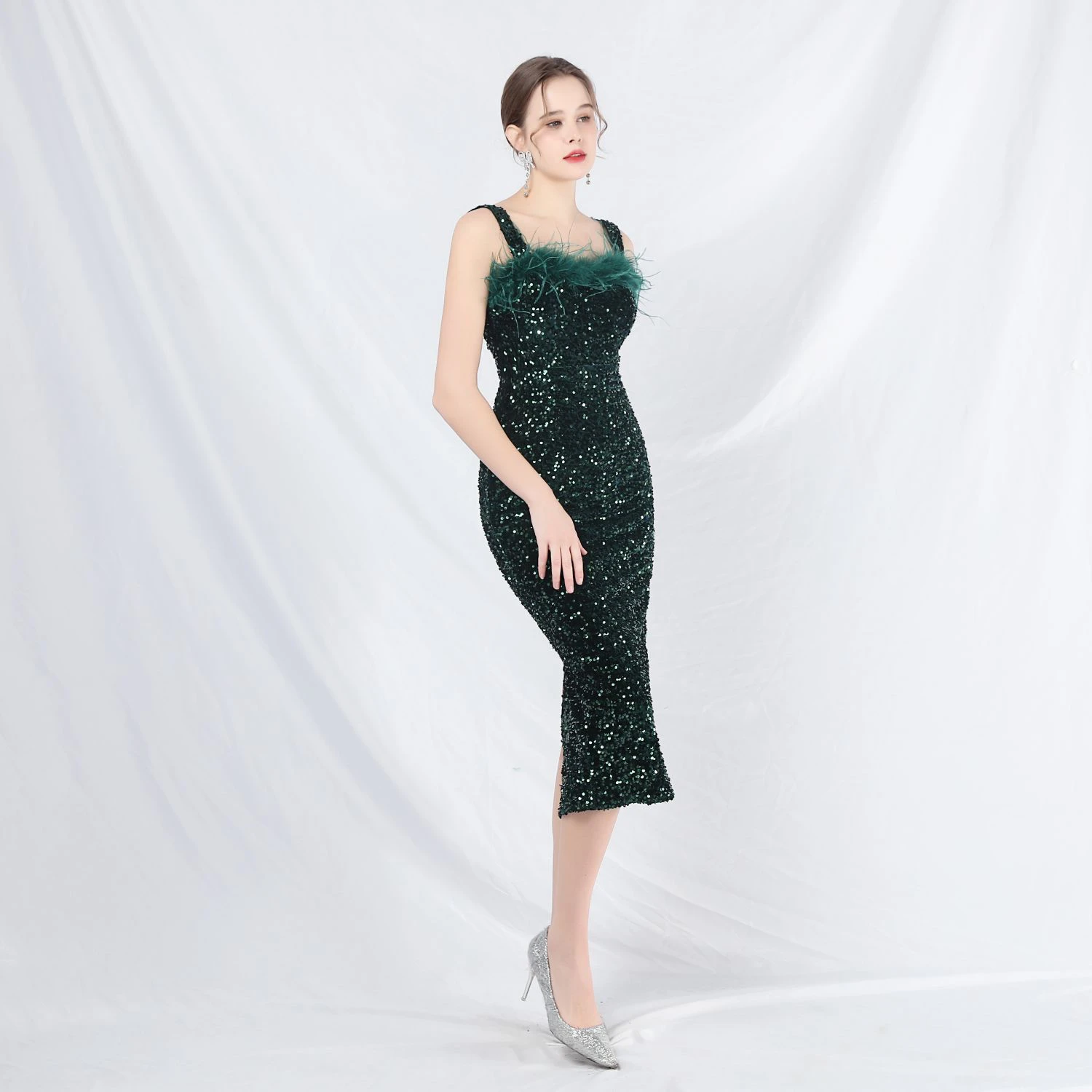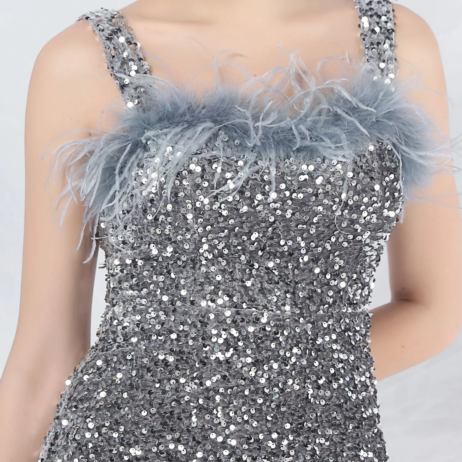 Craft Ostrich Feather Velvet Sequined Evening Dress