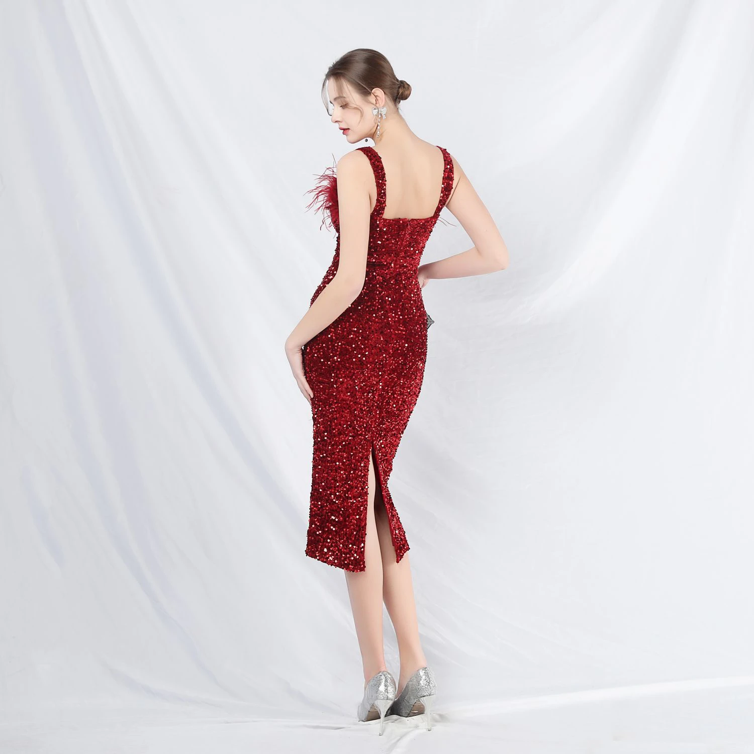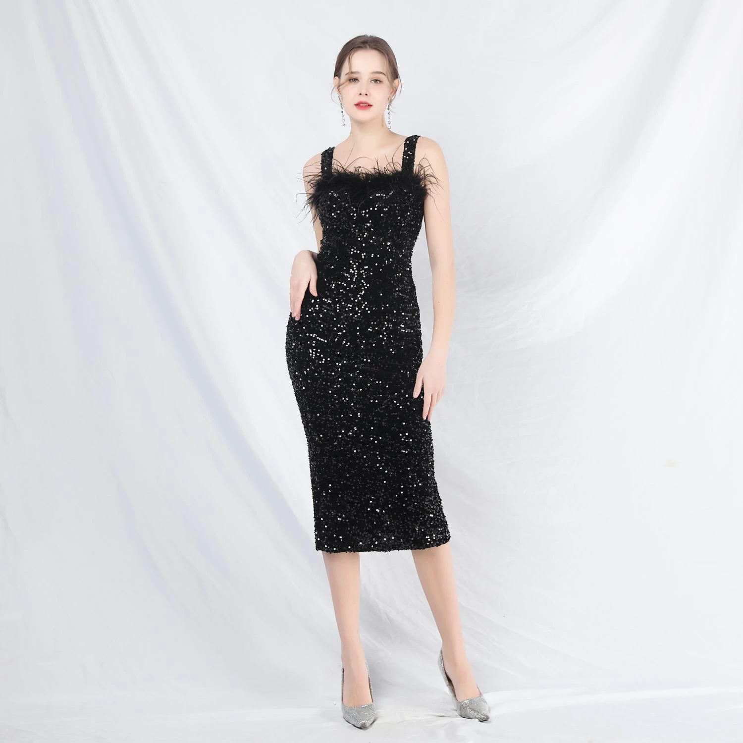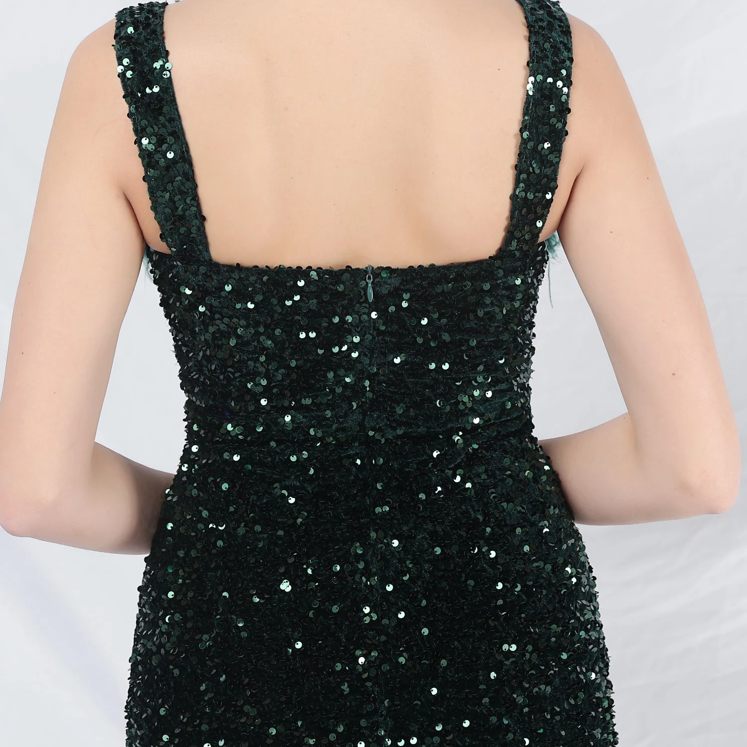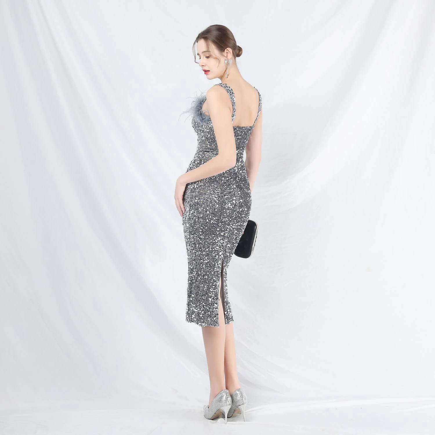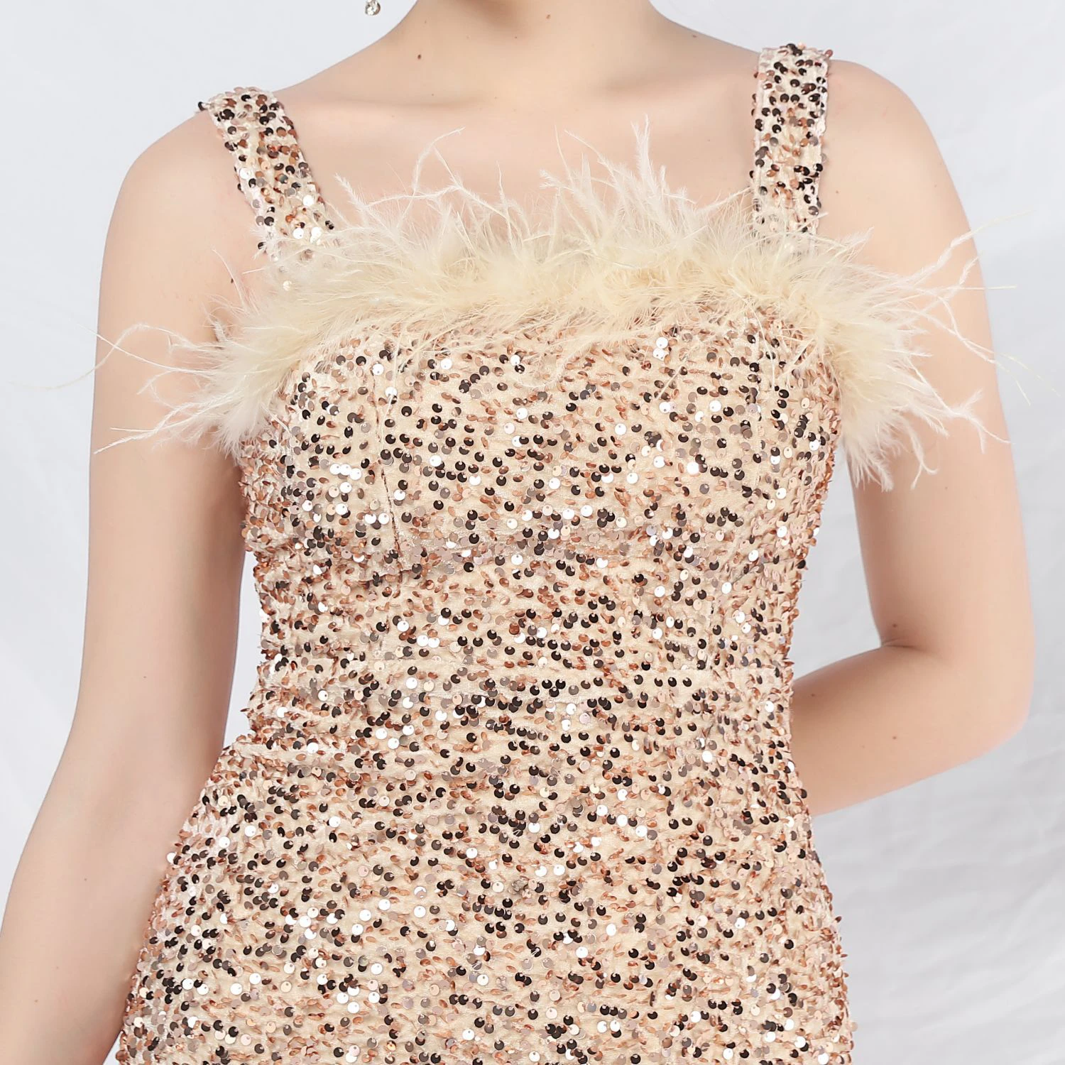 Craft Ostrich Feather Velvet Sequined Evening Dress