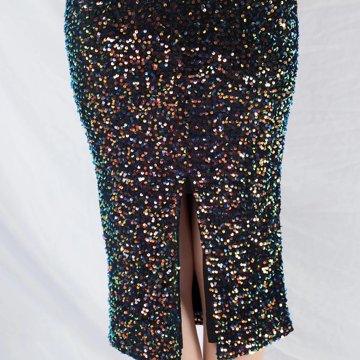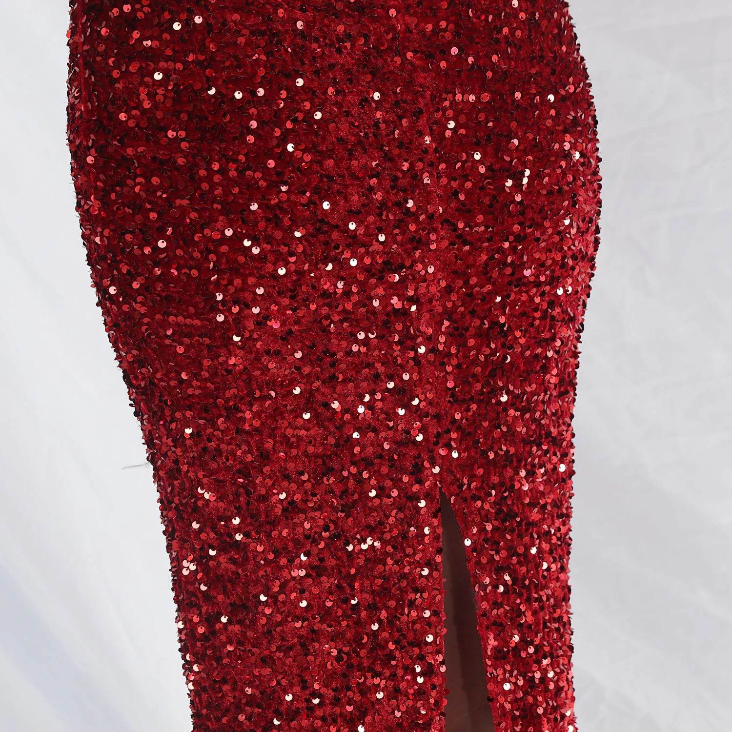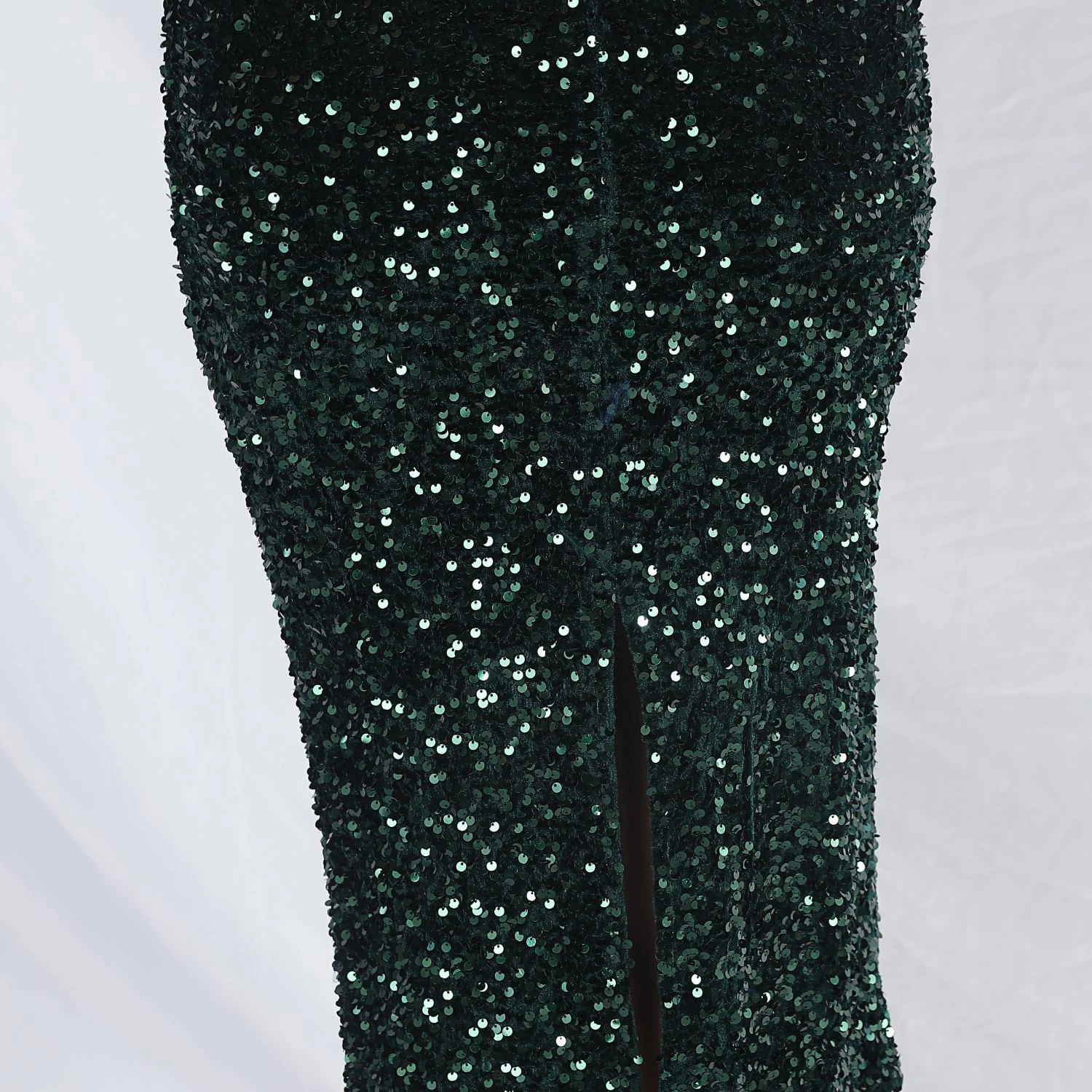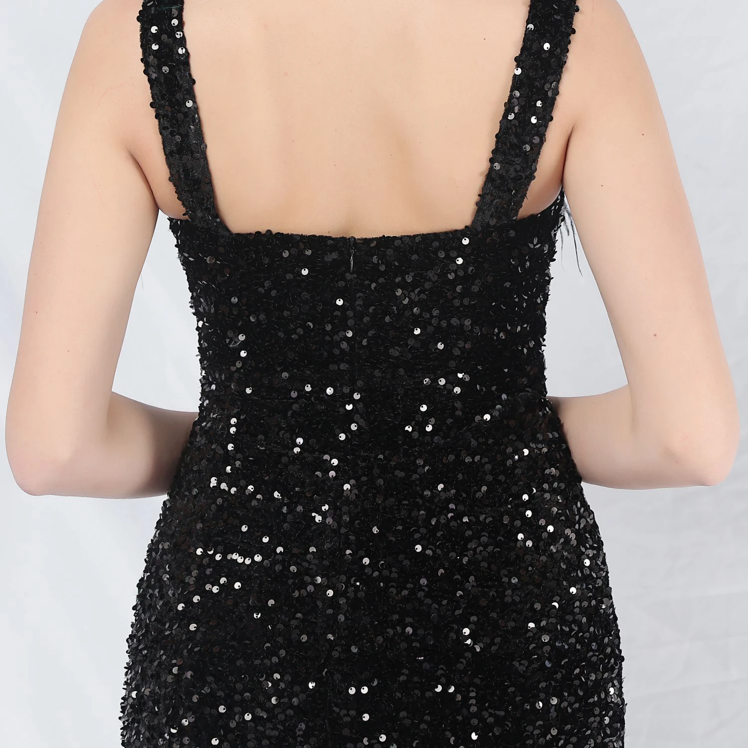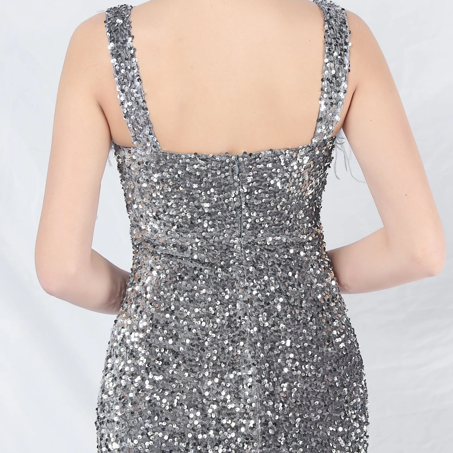 Craft Ostrich Feather Velvet Sequined Evening Dress