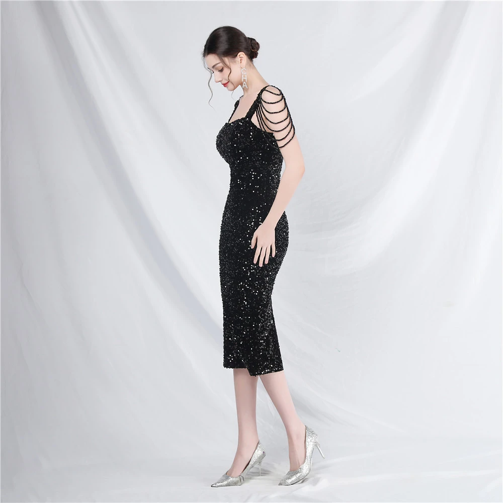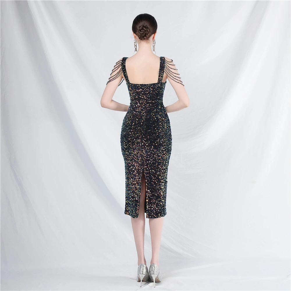 Craft Sequined Velvet Bottom Imitation Handmade Fantasy Sequin Evening Dress Daily Mini Dress