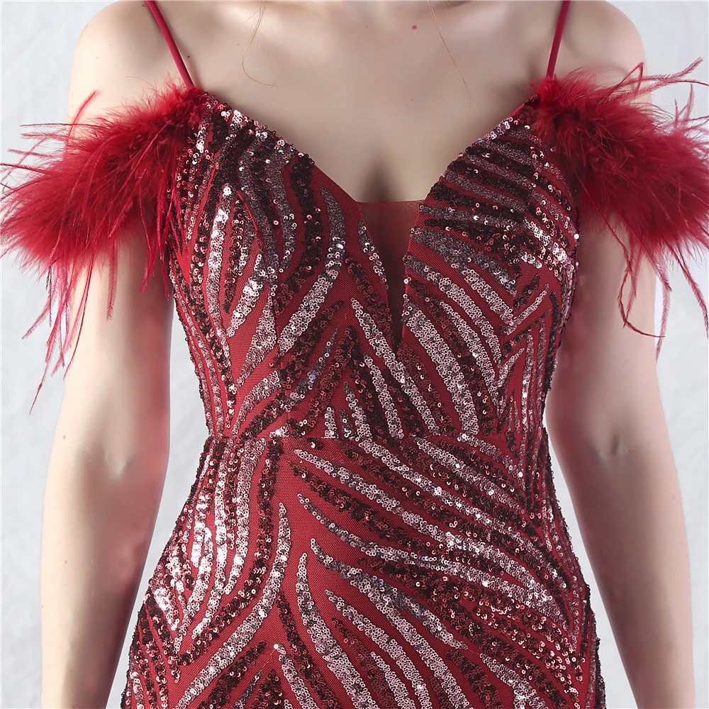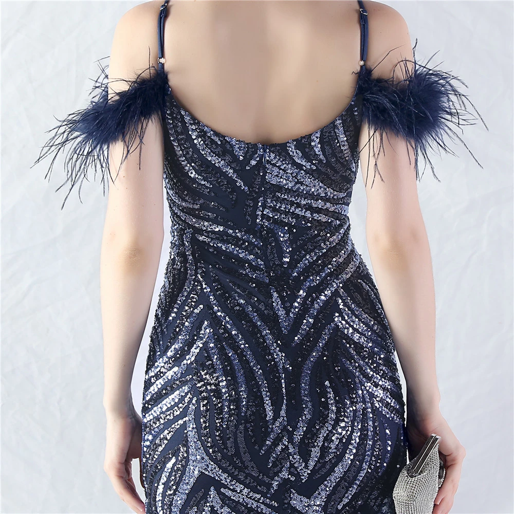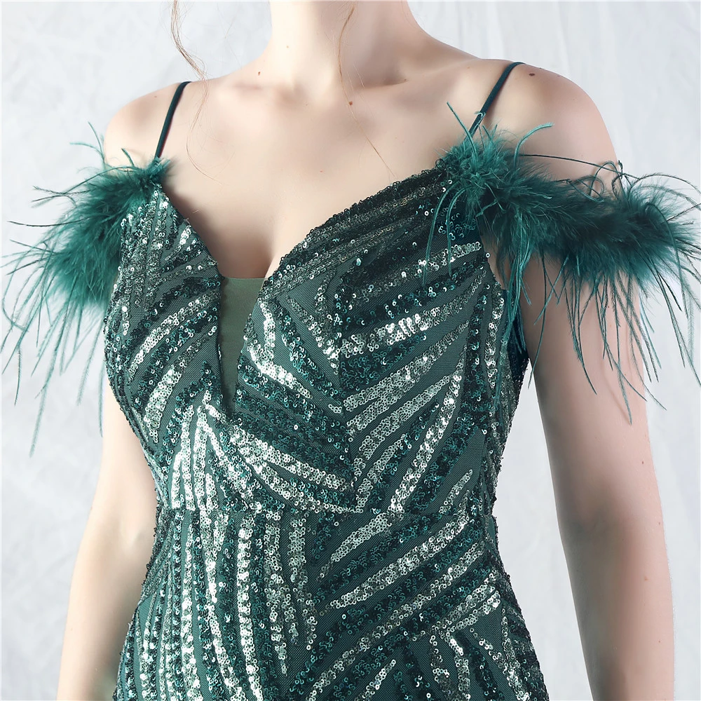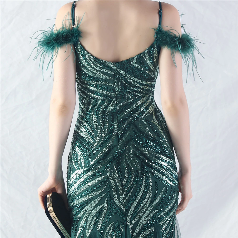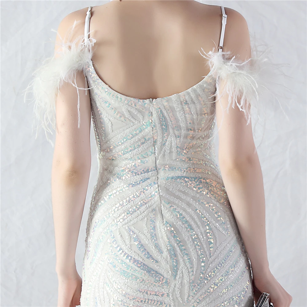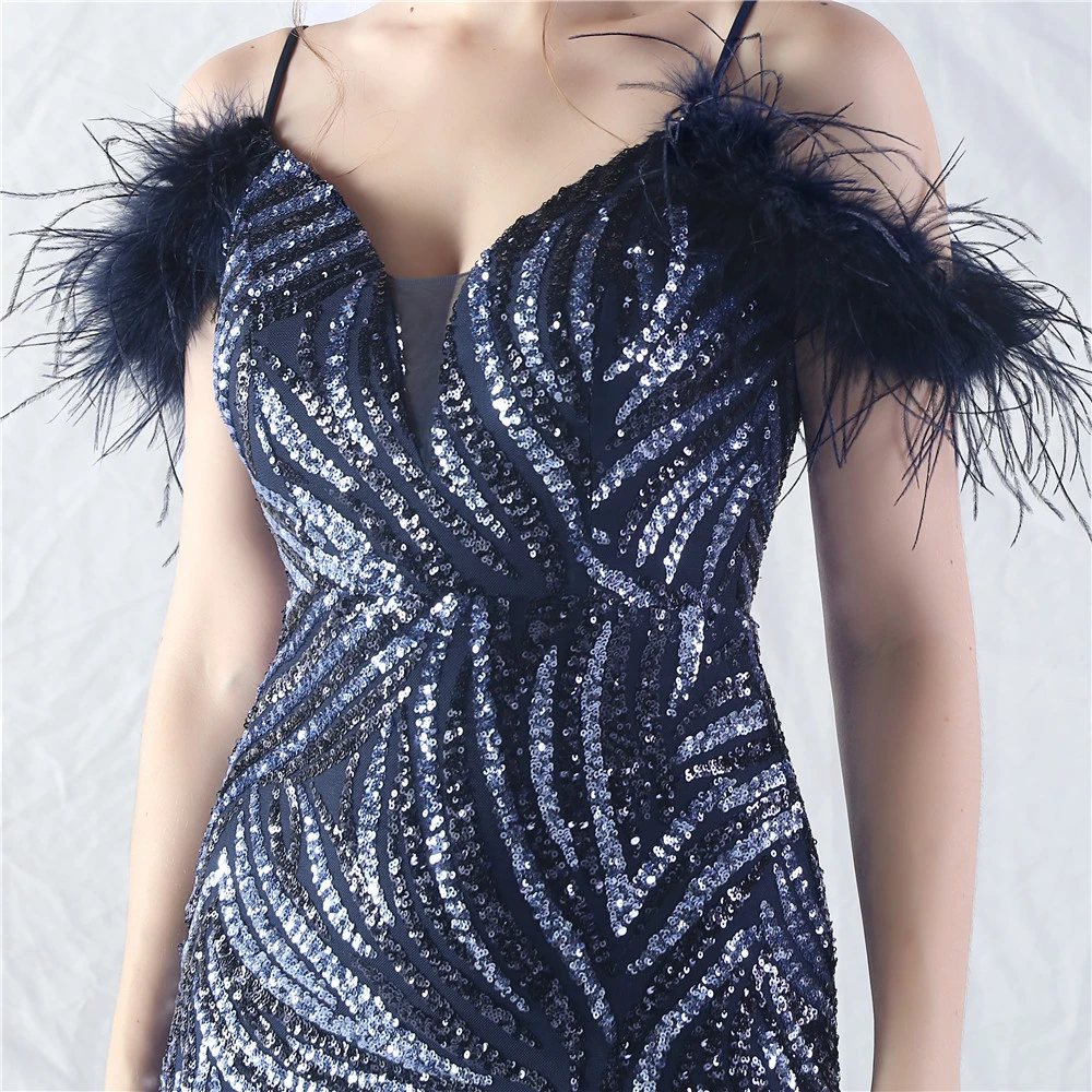Crafted Ostrich Feather Stacked Sequins Splicing Mesh Gauze High-End Evening Dress Clothes